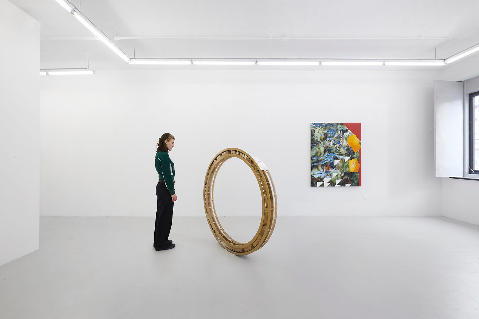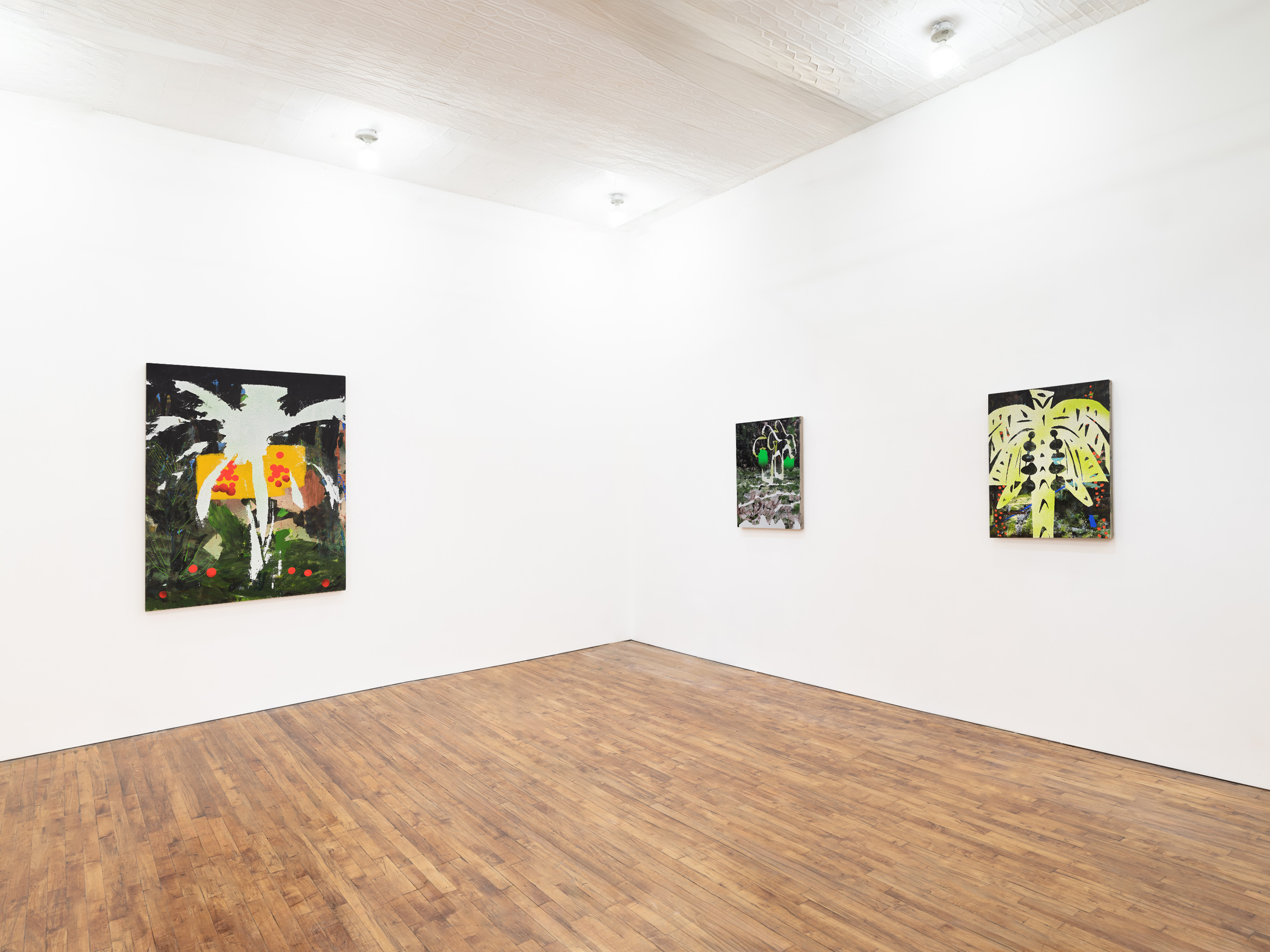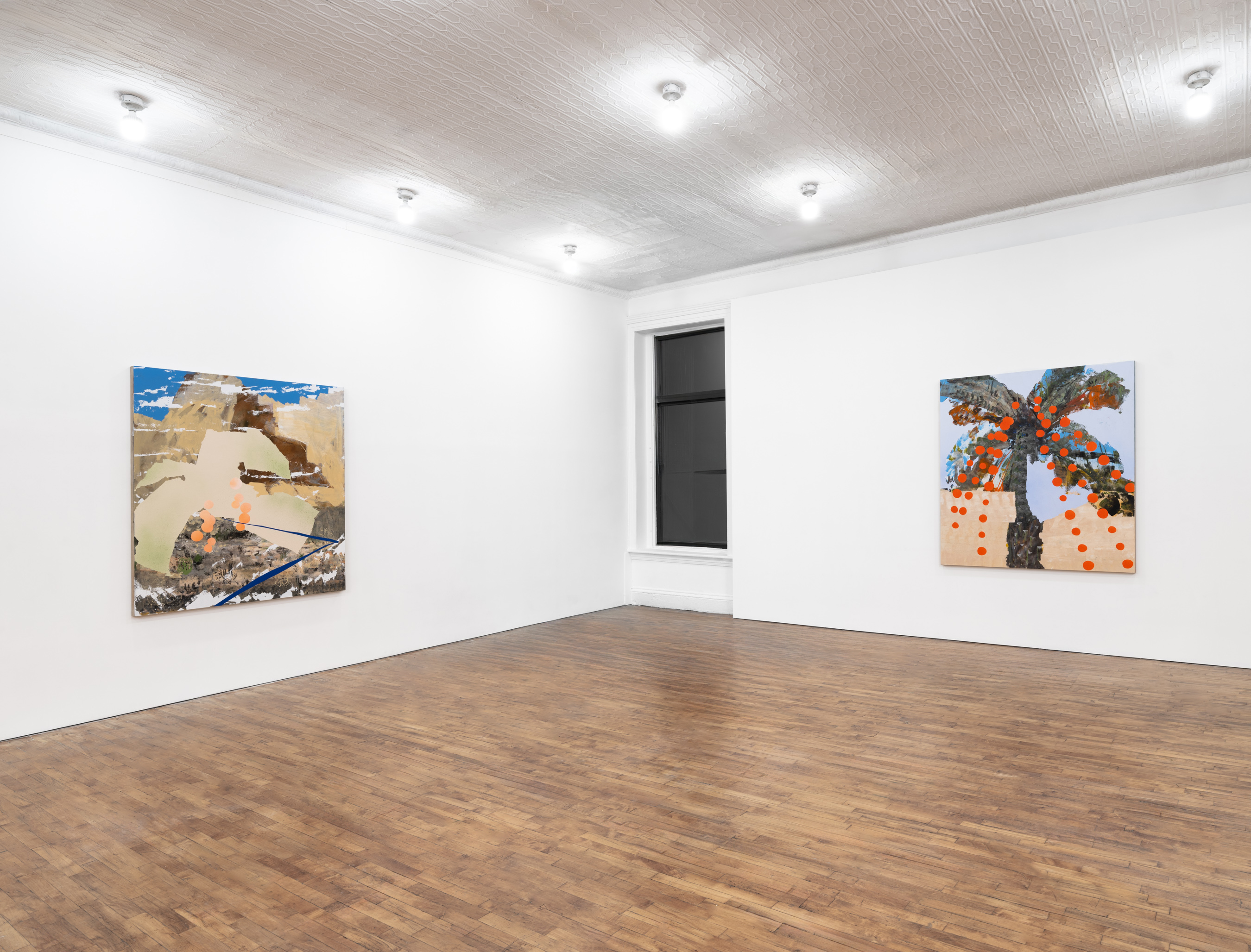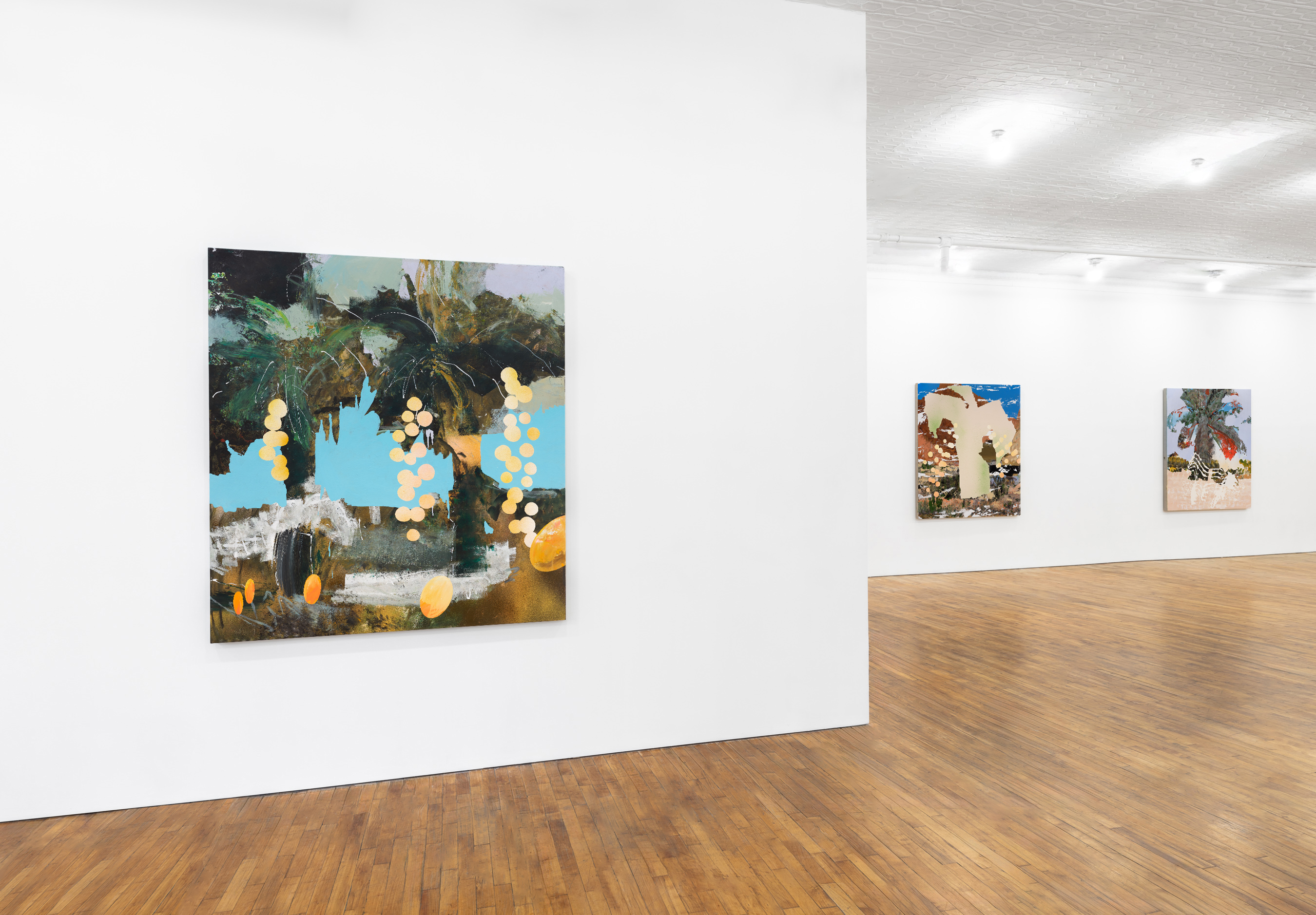 Exhibition view of Fallen lush racing share, Tara Downs, New York, 2023.