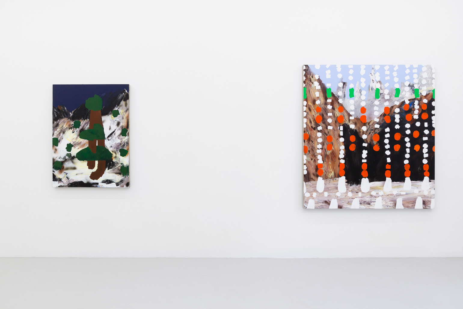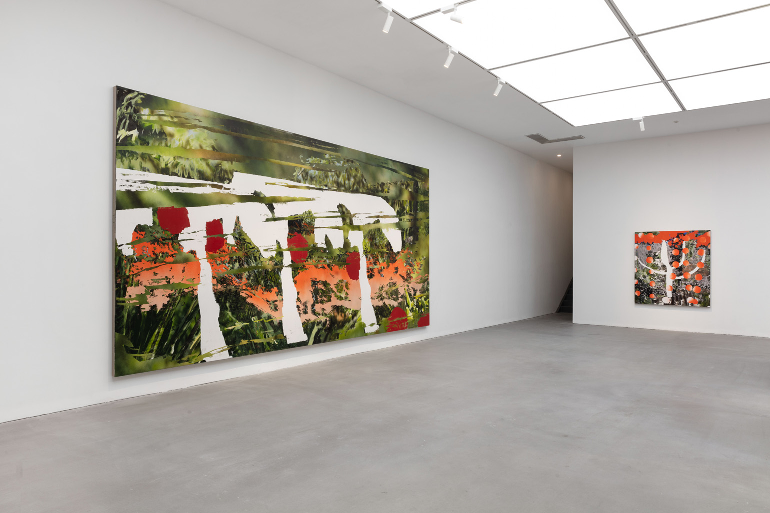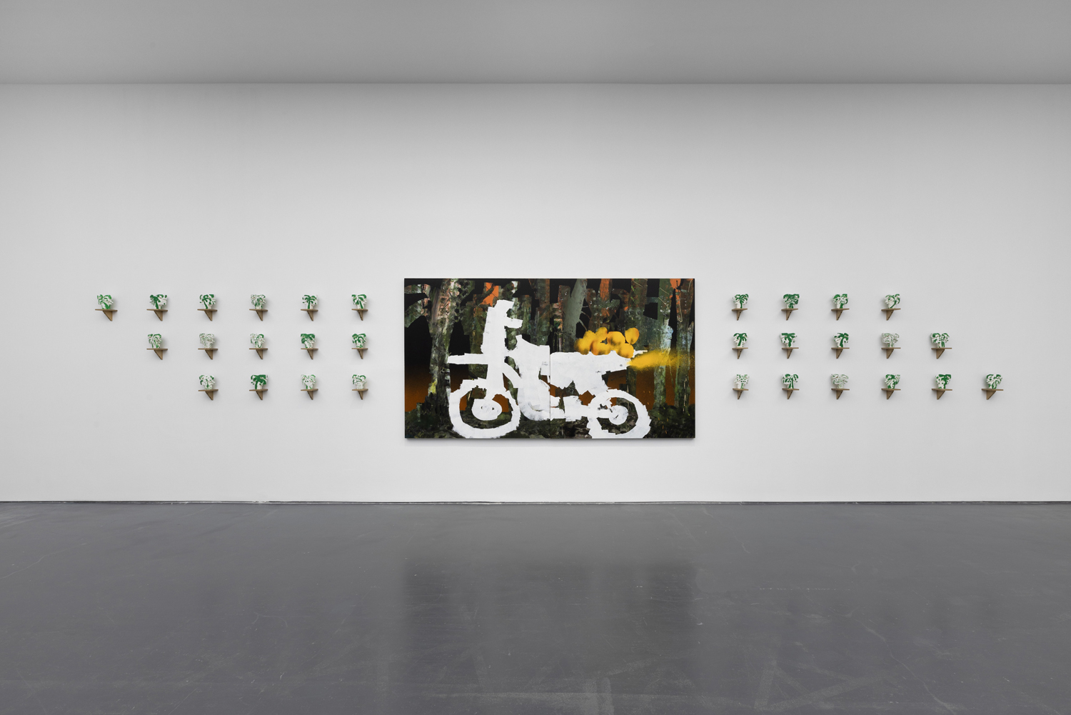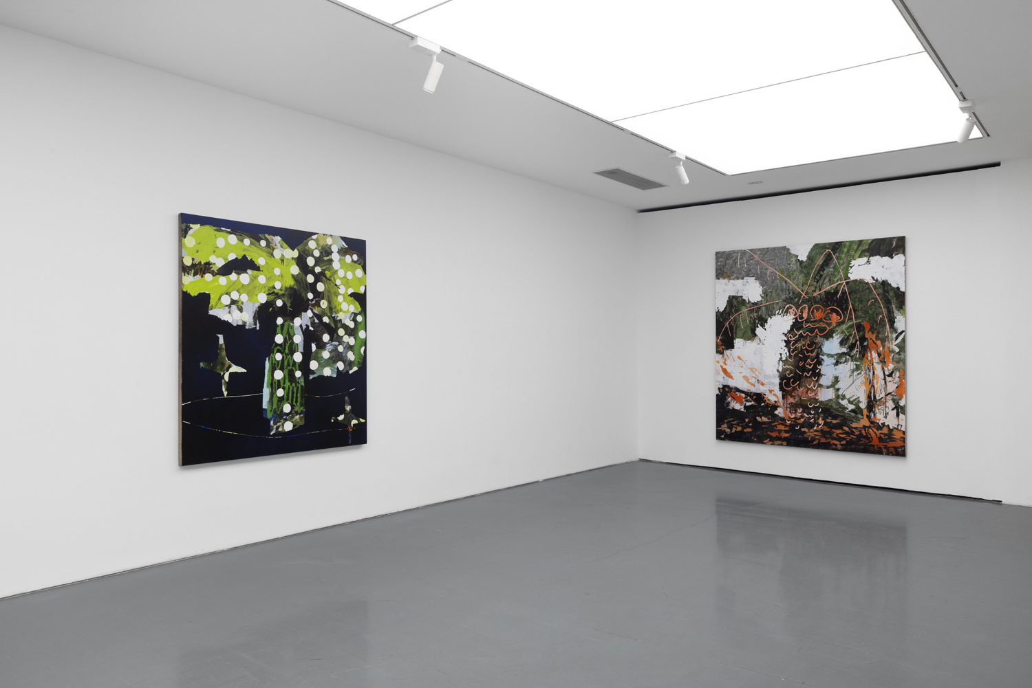 Exhibition view of Fallen lush racing share, Tara Downs, New York, 2023.