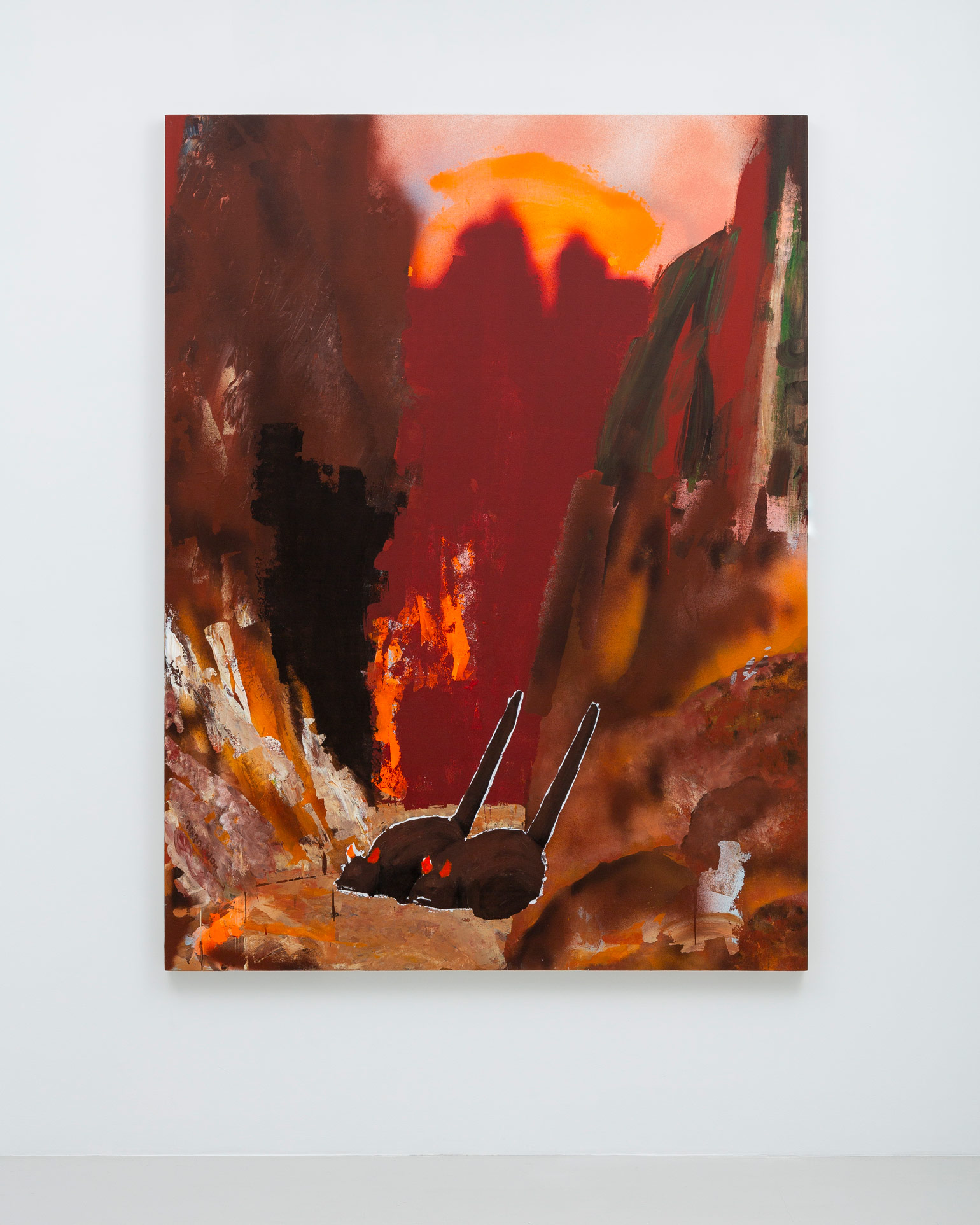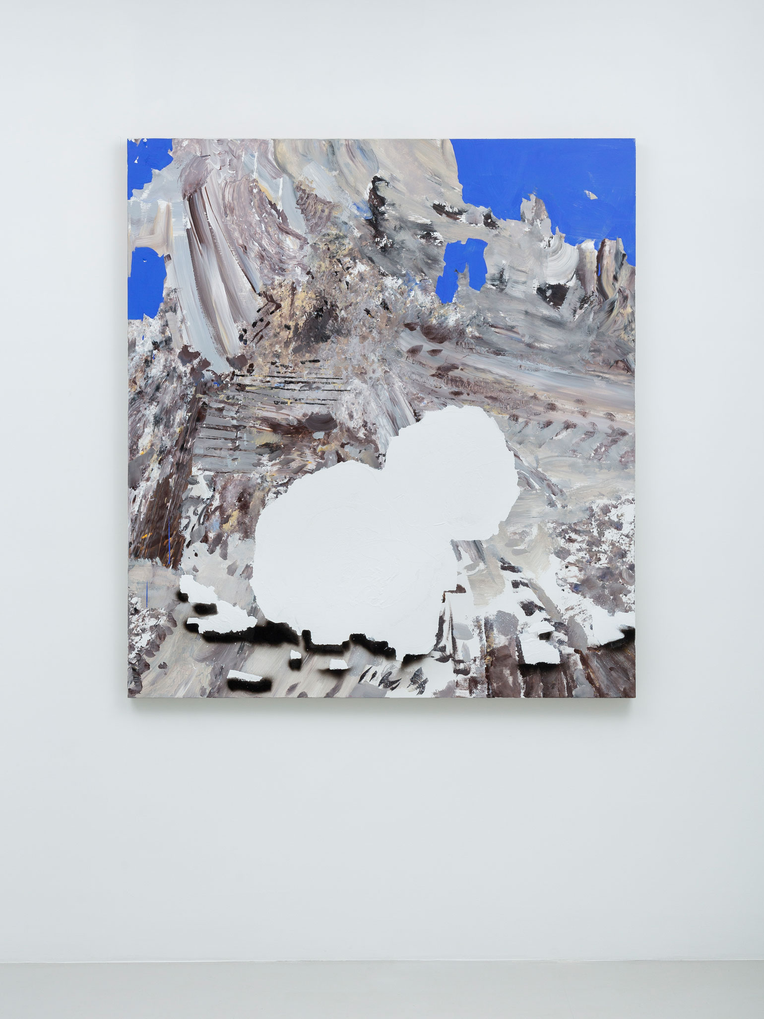 Hou Zichao, Hero runs, falling stone, sttutering occurs, 2021. Acrylic on linen, 78 3/4 × 59 in / 200 × 150 cm