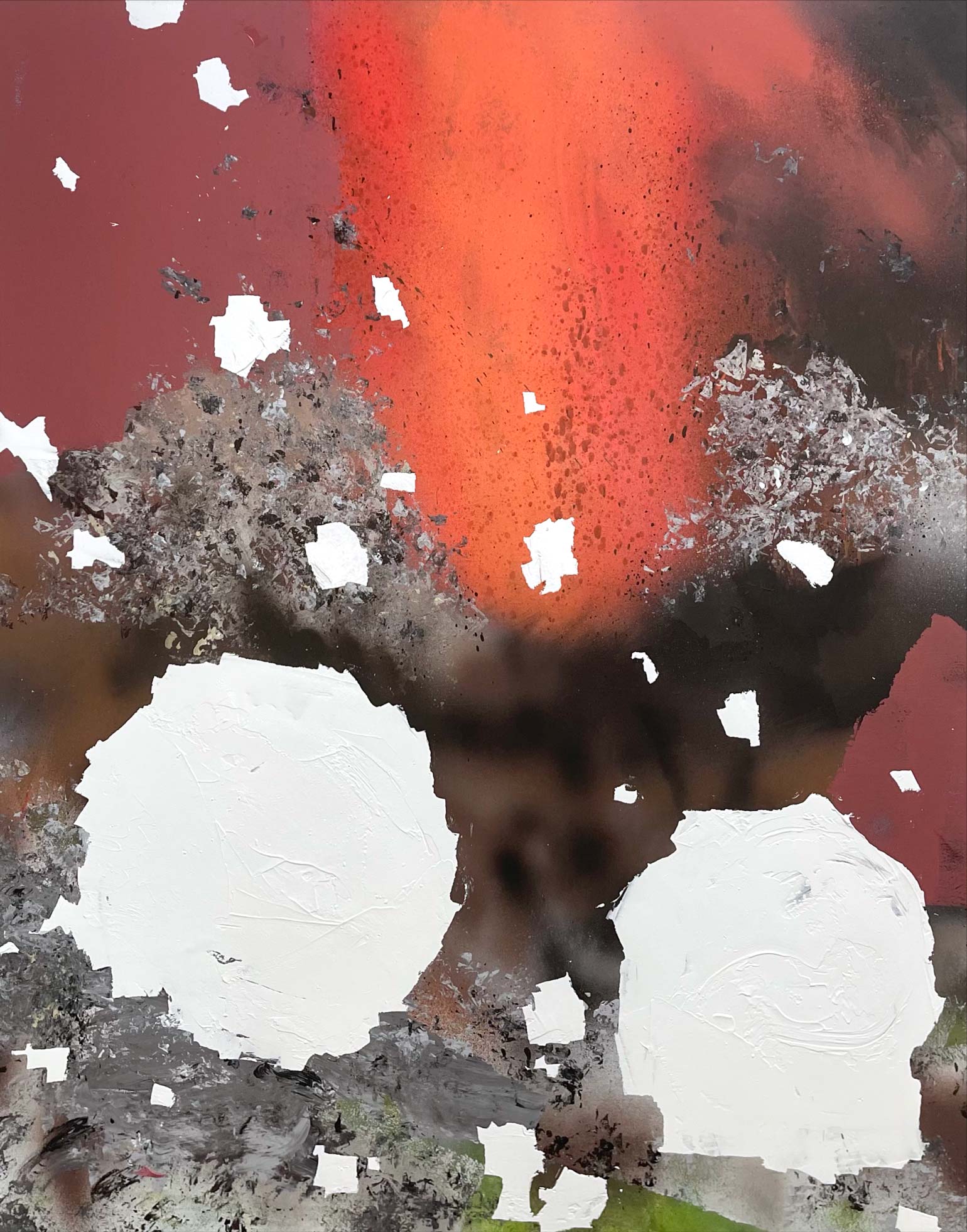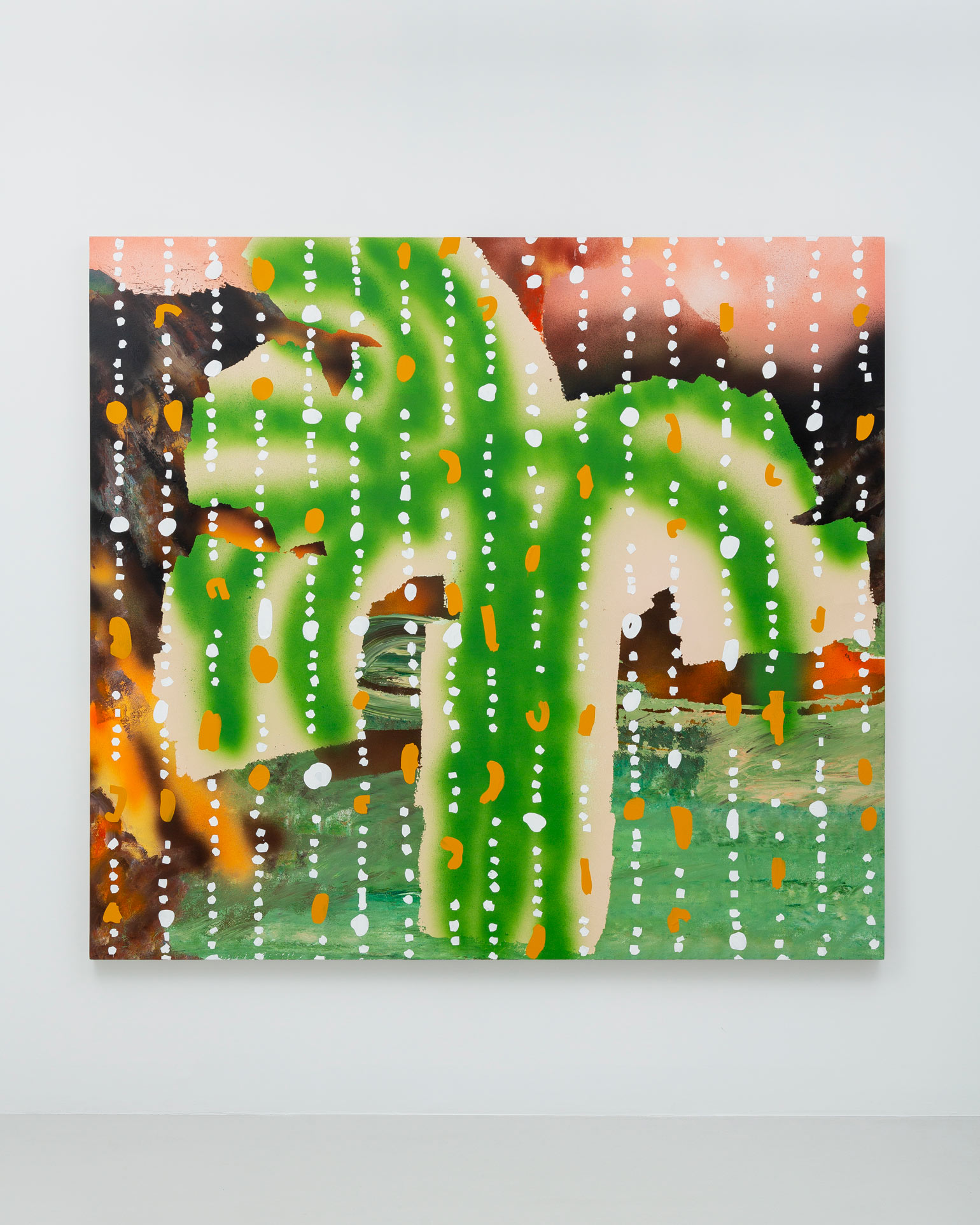 Hou Zichao, 顶冒触物燥 Top flow fire touching made, 2022. Acrylic on linen, 65 × 59 in / 165 × 150 cm