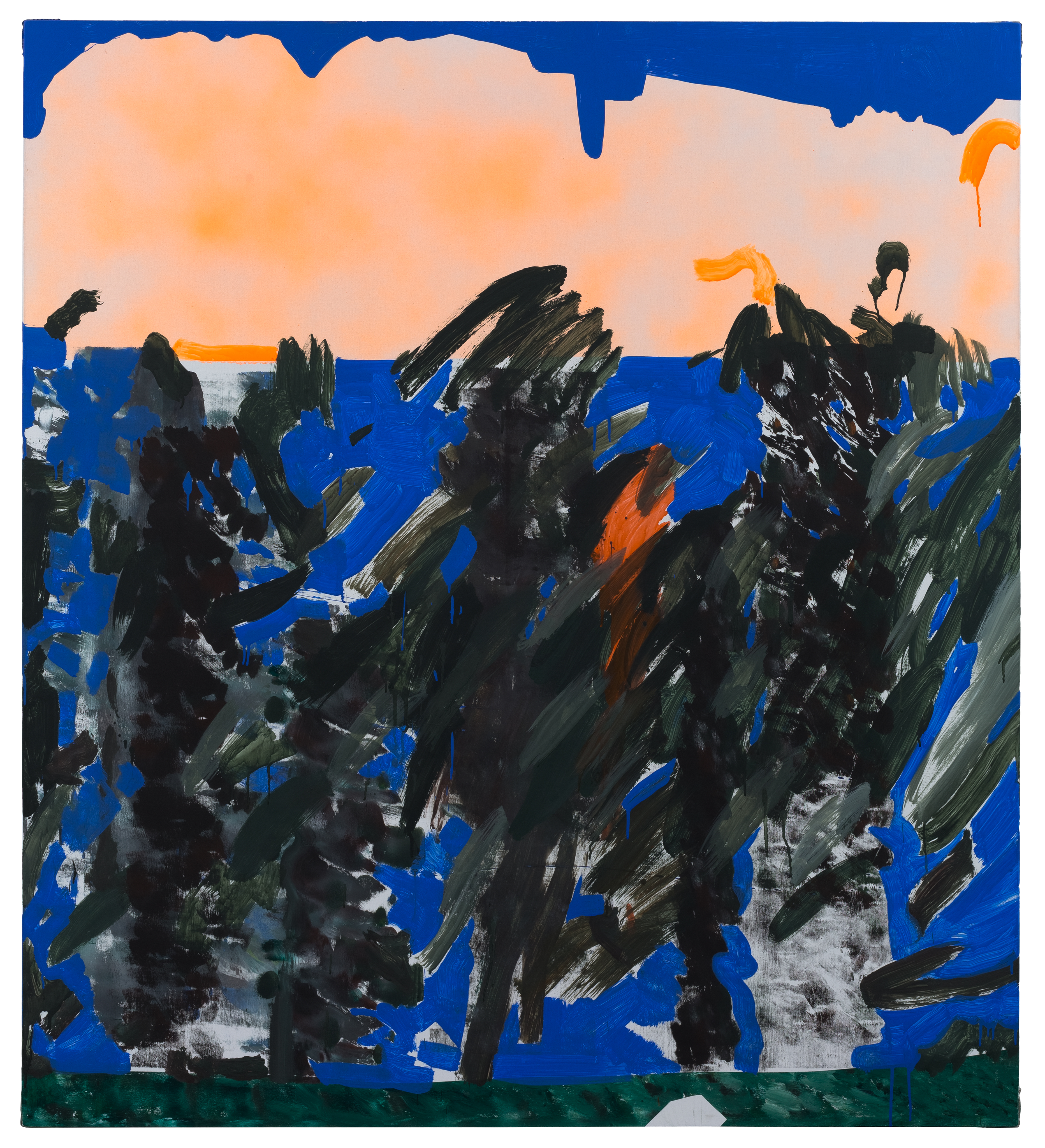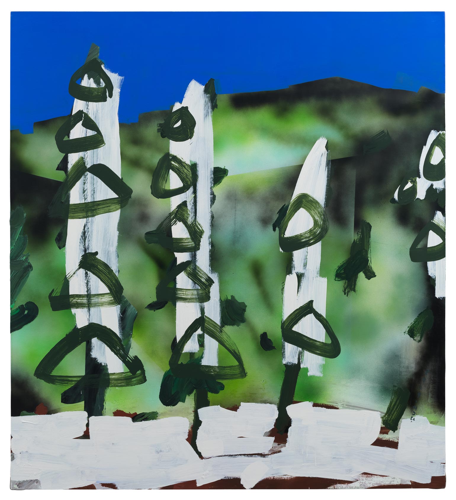 Hou Zichao, 被盗的水果 (弯倒的树)The Stolen Fruits (falling tree), 2021 (detail). Acrylic on linen, 64 × 59 in / 150 × 165 cm