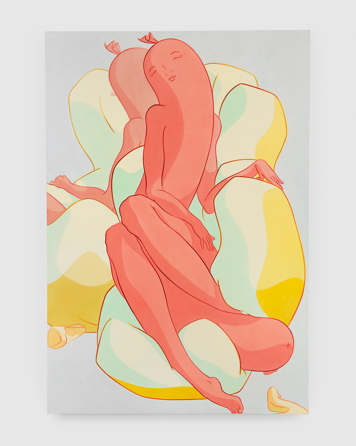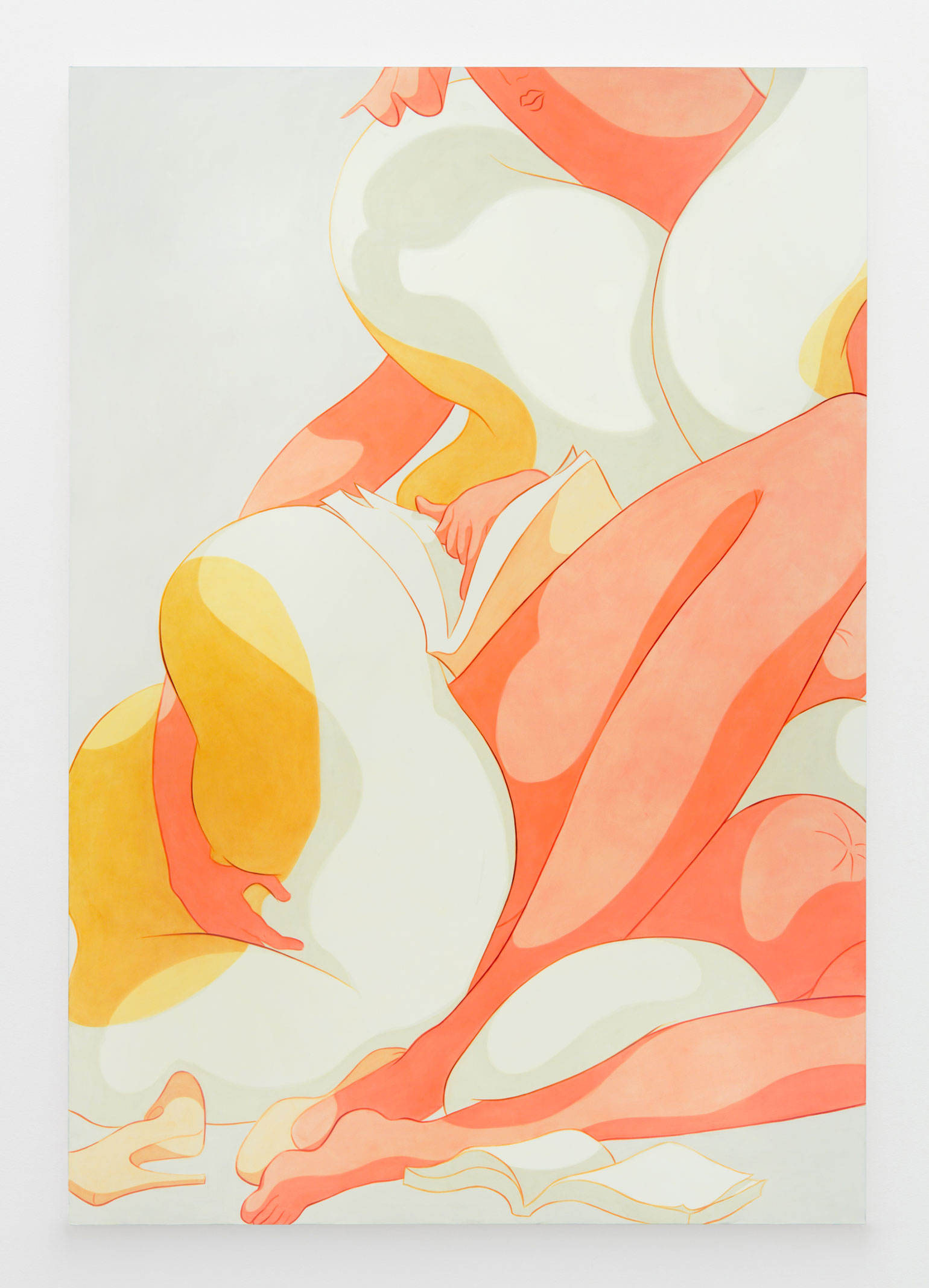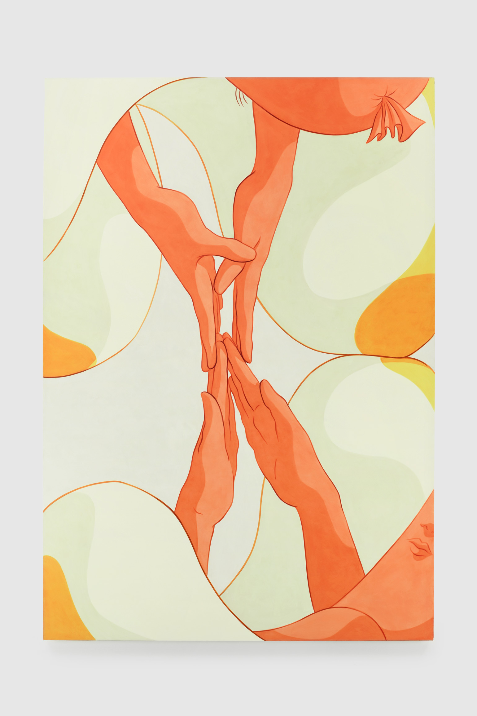 Ivy Haldeman, Twice Colossus, Four Hands Touch, Palms Apart, Buns Press Slightly, 2021. Acrylic on canvas, 83 1/2 × 57 1/2 in / 212 × 146 cm