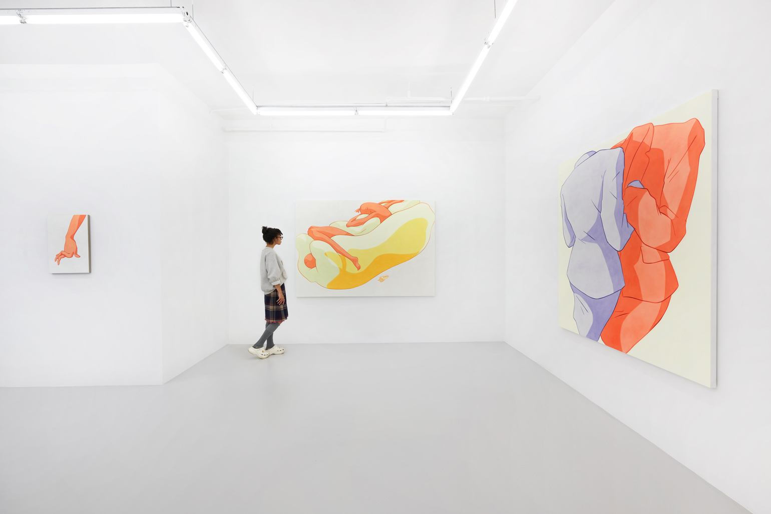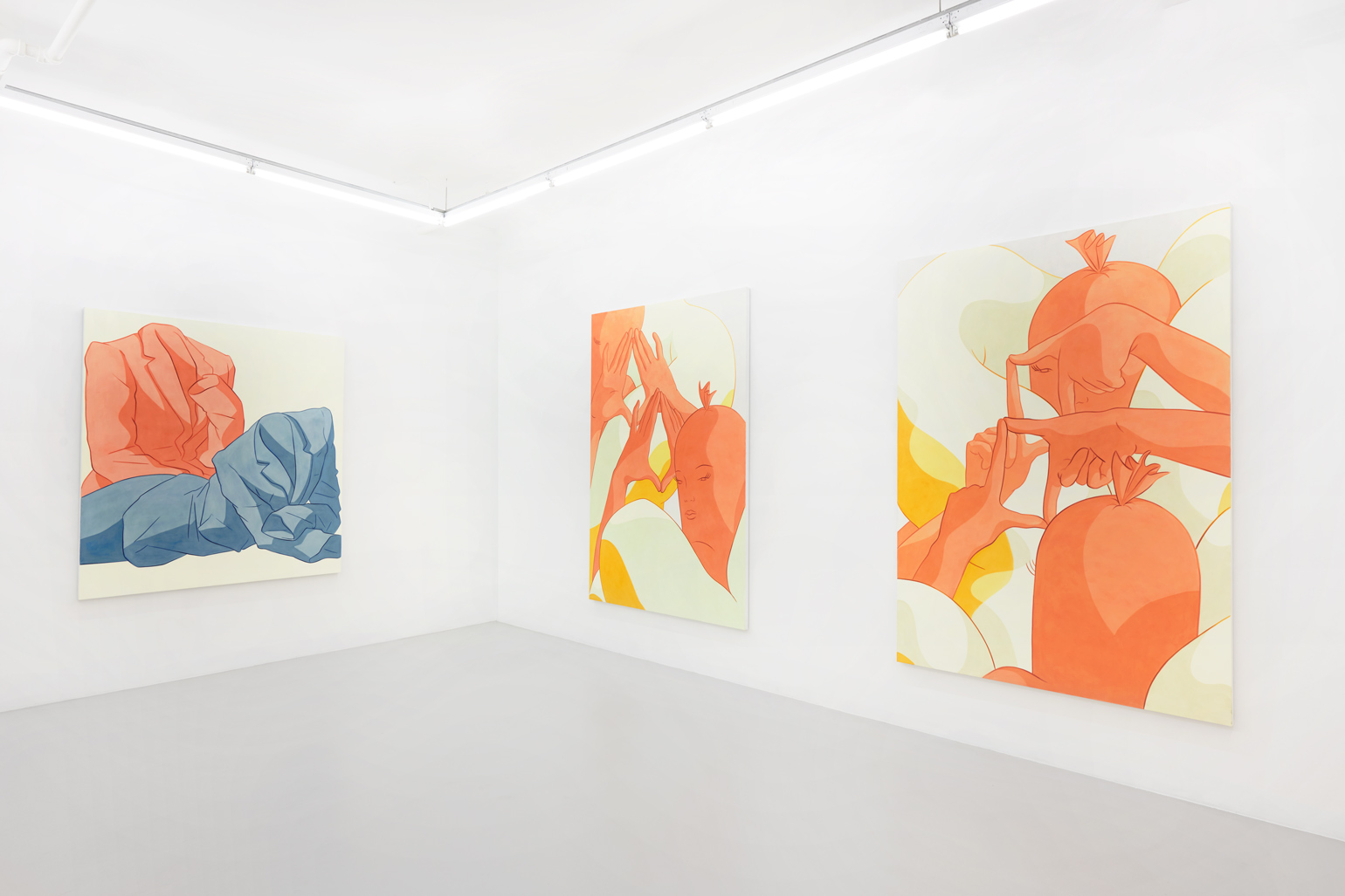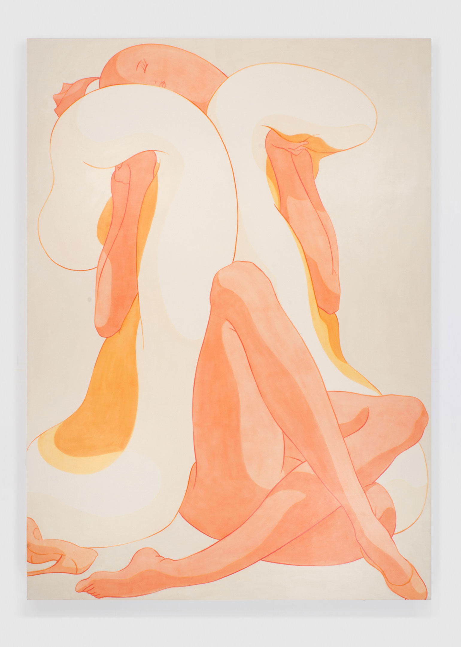 Ivy Haldeman, Twice Colossus, Four Hands Touch, Palms Apart, Buns Press Slightly, 2021. Acrylic on canvas, 83 1/2 × 57 1/2 in / 212 × 146 cm