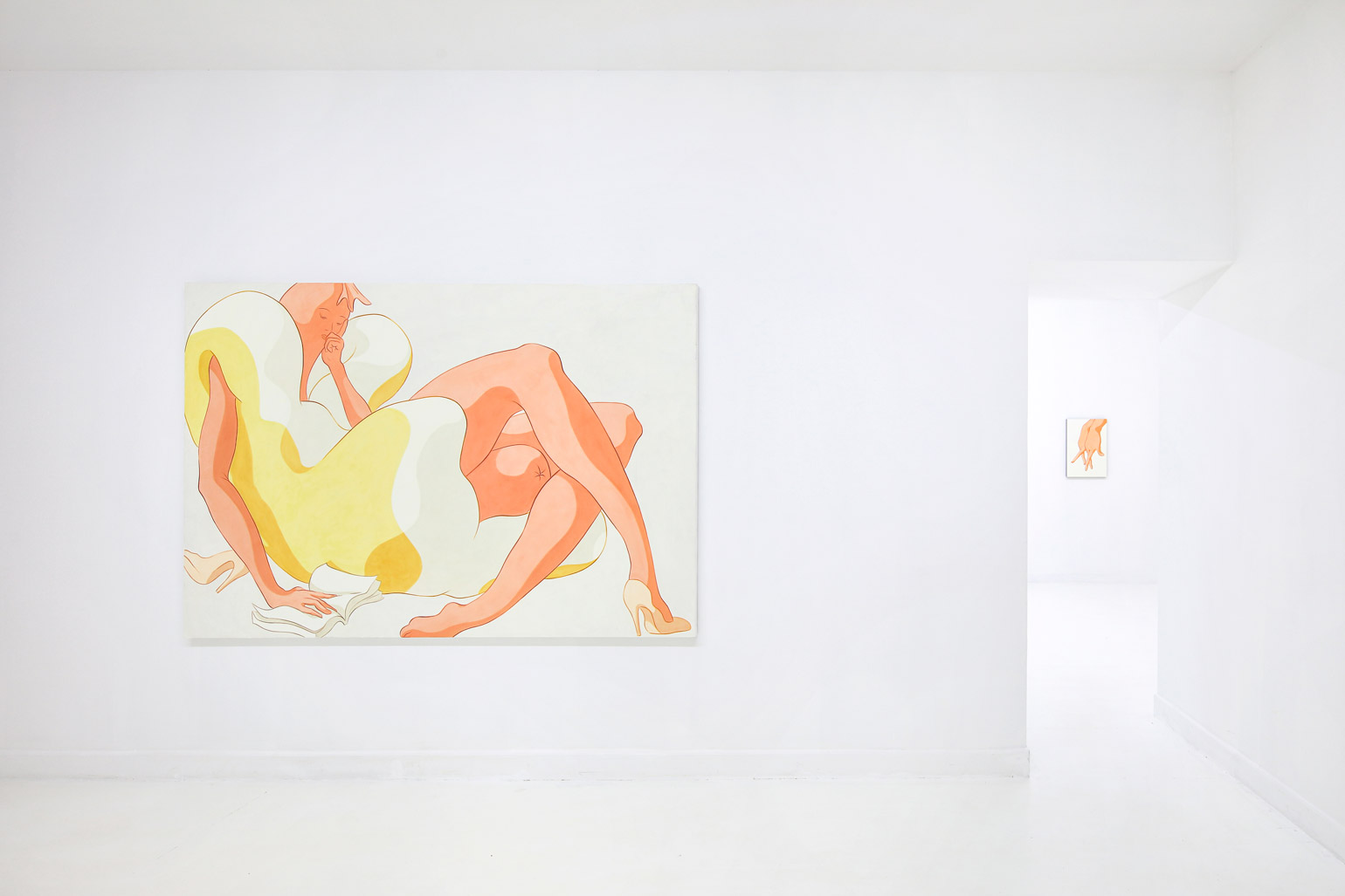 Ivy Haldeman, Colossus, Pinky Down, Forearm Presses Bun, Two Books, 2019. Acrylic on canvas, 84 × 58 inc/ 213,4 × 147,3 cm
