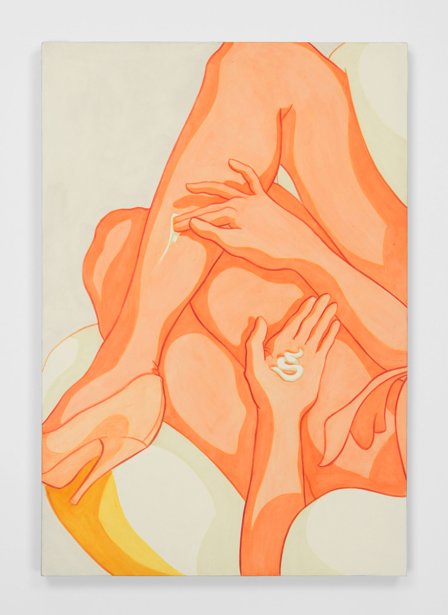 Ivy Haldeman, Close Up, Calf Over Thigh, Cream, Index and Middle Finger Forward, 2018. Acrylic on canvas, 24 × 16 1/2 inc / 61 × 41,9 cm