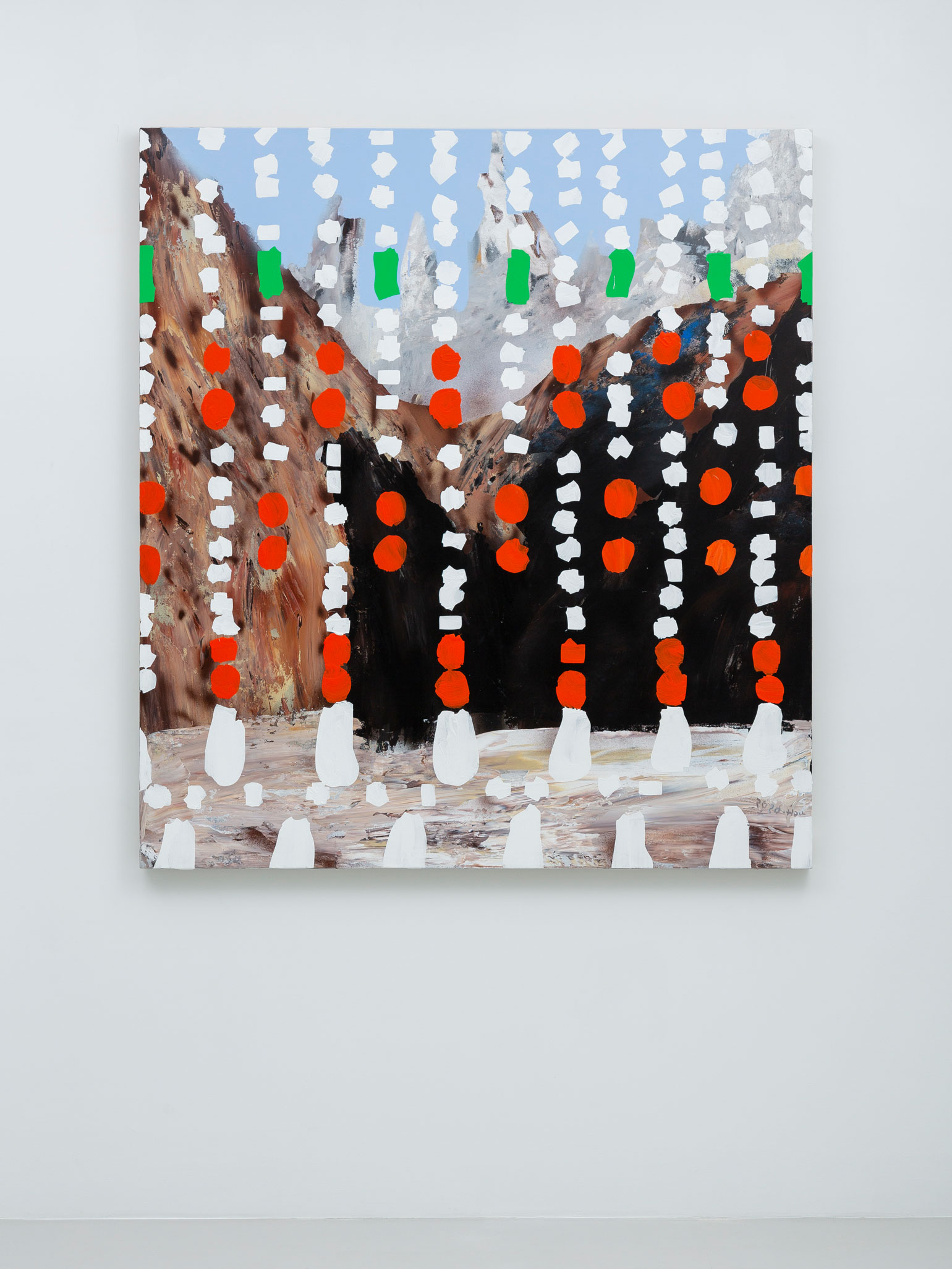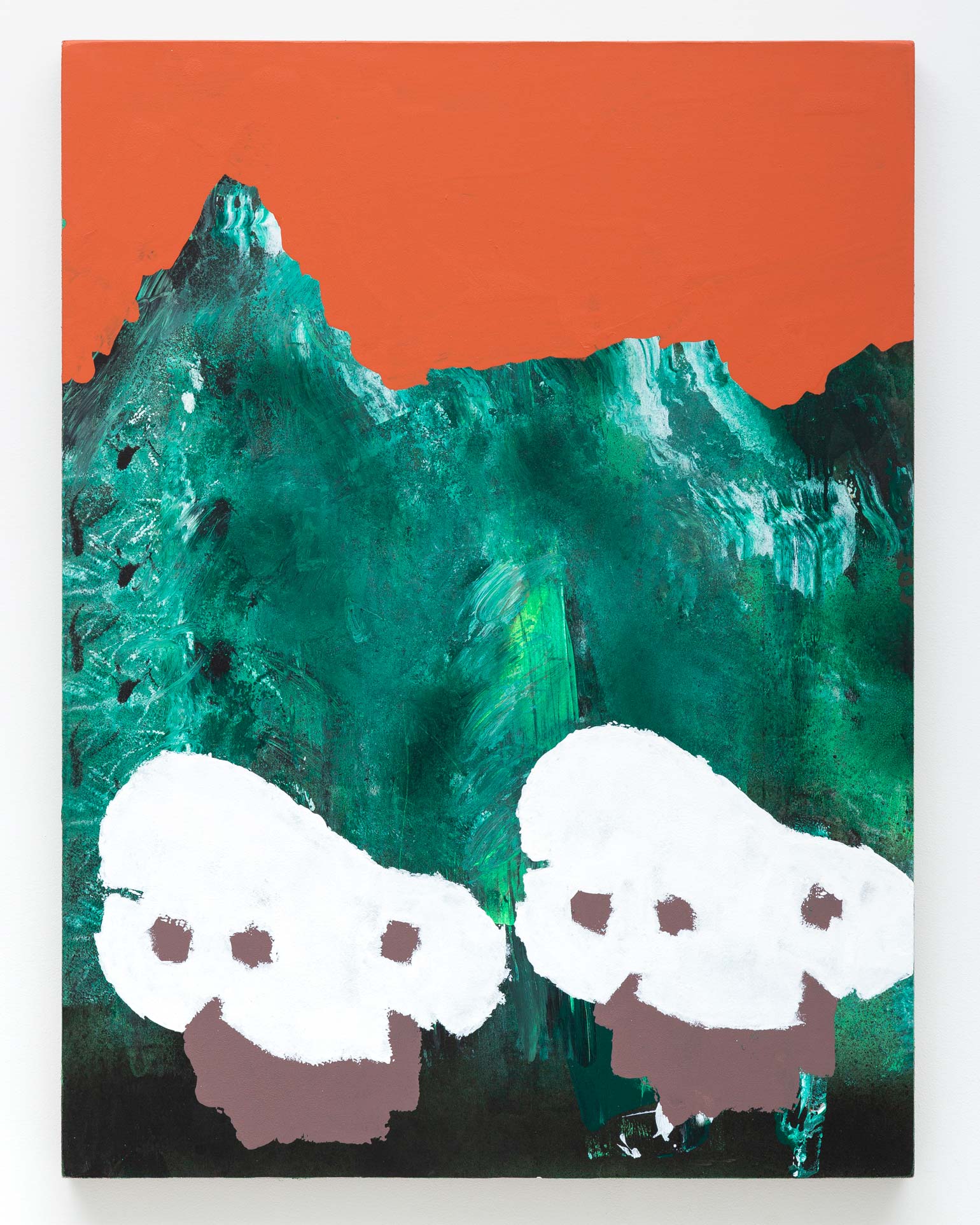 Call it a political economy of taste. Then cross it out, the way cubism is never just a diagram with its back to the world. While painting is a recipe for variable relationships between inside and outside, the presence of escape lofts onto the ten wings of apophenia. Probability is the busiest of networkers, an avalanche of doubt broadcasts doubly as calmly-alerted curiosity. Painting’s hieroglyphic muteness gives it advantages over the spoken word from the bay windows of a cliff-side chalet – that off-modern, not-quite-right imagery of leisure.