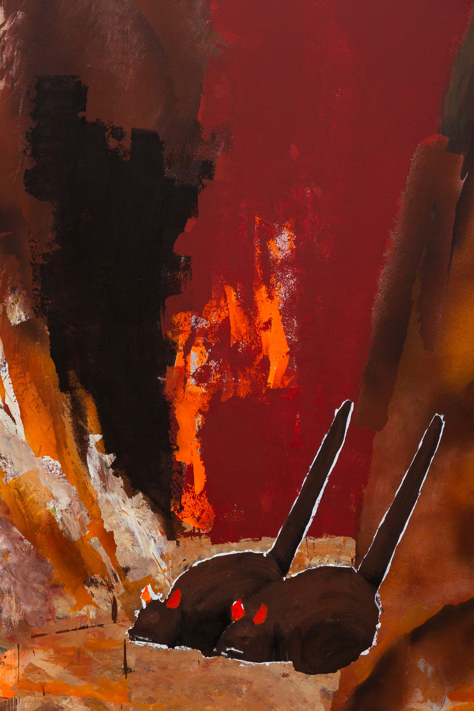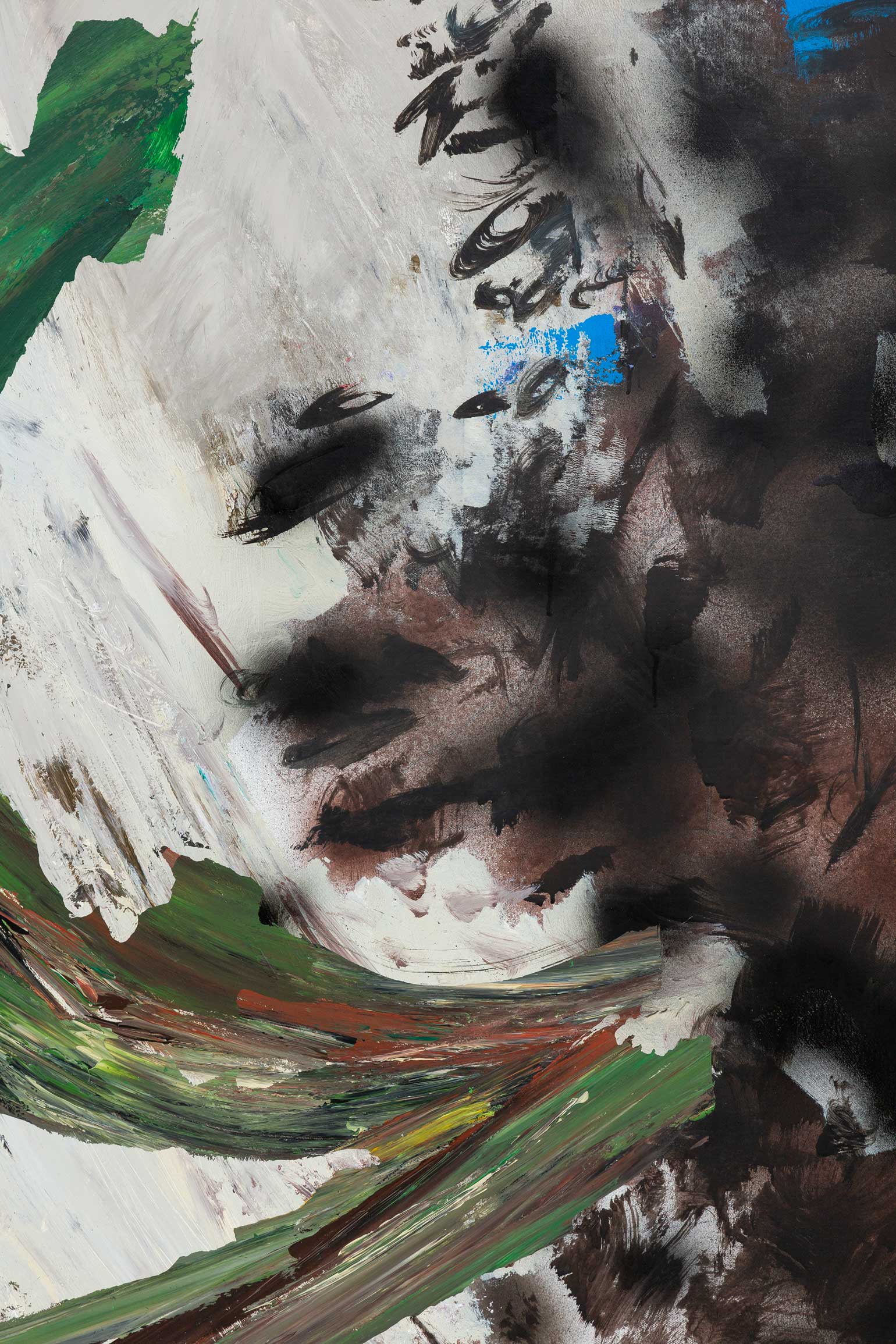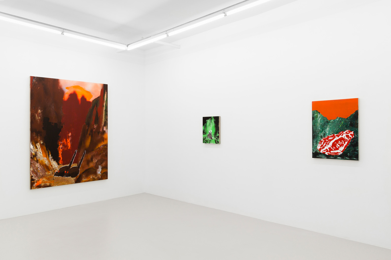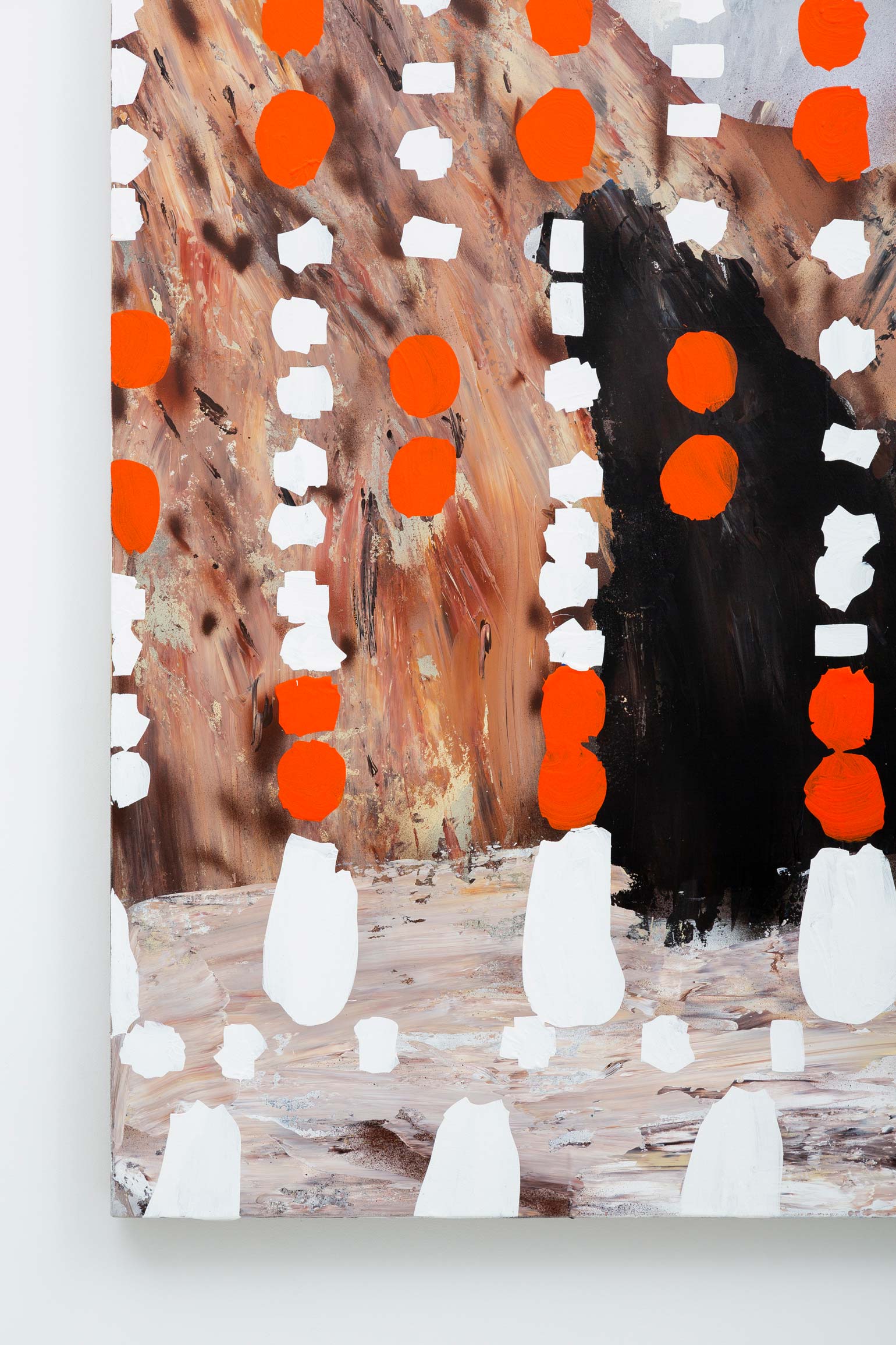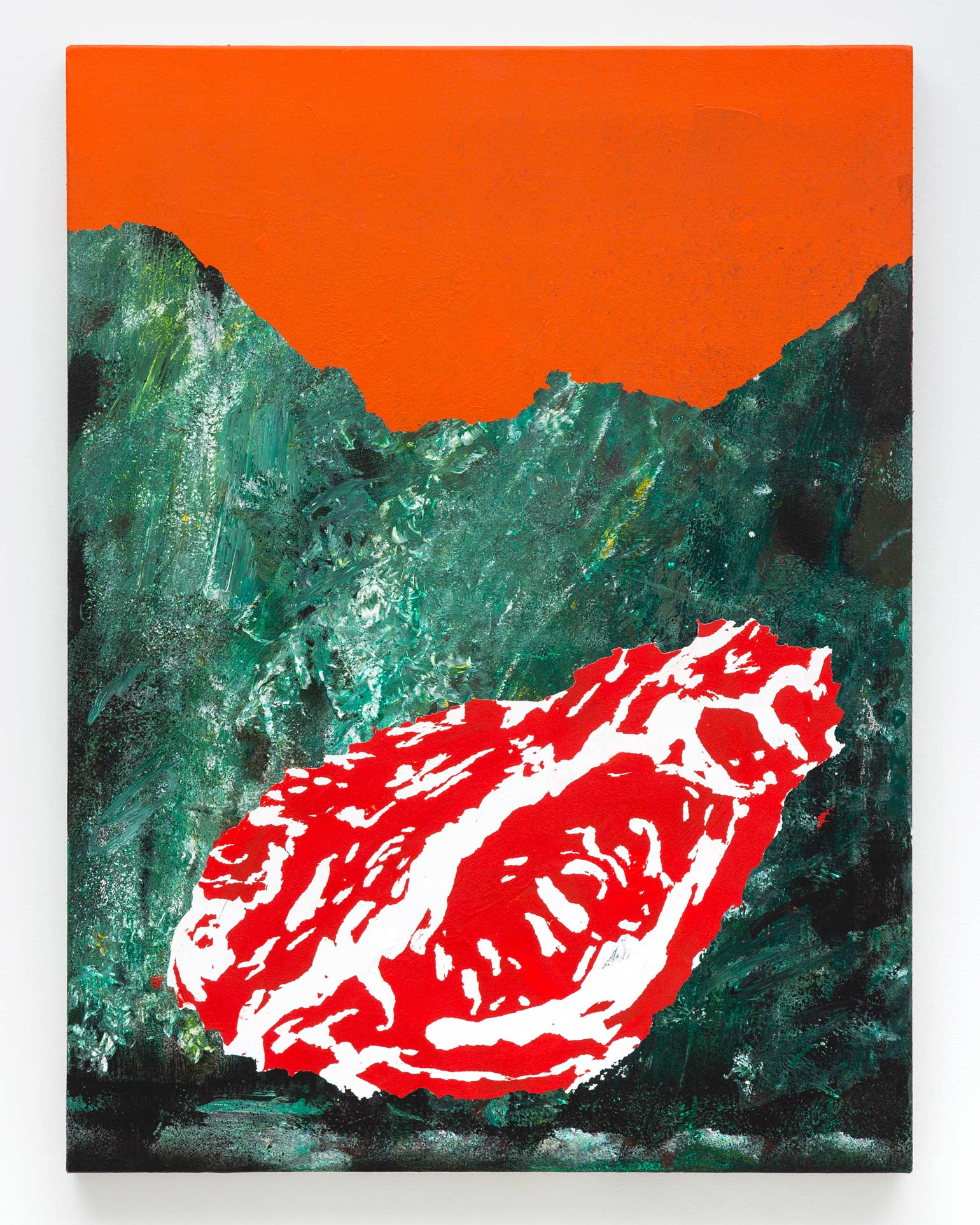 Painting’s ponderous elisions: the conversion of objects into raw materials belies that pictures are always objects. If painting, like a collage that is always already its false bottom, is never totally itself, its chief quality is a loss of distinction – a terrain of plastiglomerates – a coalition of indurated rock and singed plastics. A sirloin marbled through with the absence of identifying particulars, a mushroom mushrooming. Both enshrined or entombed in the syntax, that continental palette, of paint straight, as though lifted on its hind-legs, from the tube.