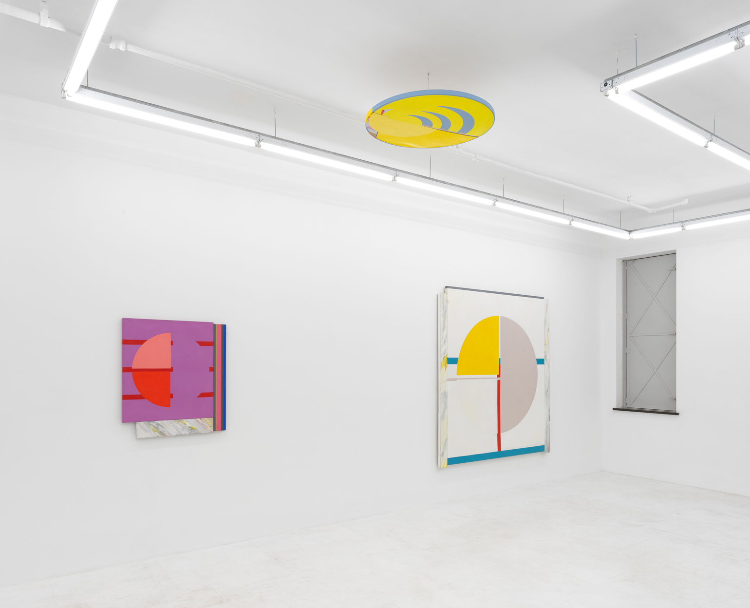 Hopkins owed a great deal to Mondrian’s neoplasticism; he wrote of his admiration for the Dutch painter’s implication of many coincident systems, and the way he “plays almost perversely with one’s expectations...[involving] the appearance of a grid (suggesting regularity, evenness, etc.) and the actual arbitrary, unpredictable placement of lines.” In most of his paintings, Hopkins sites, just off-center, a predominant circle around which he generates his compositions, testing the ways in which the viewer’s perception of the shape would change according to its surroundings. If Mondrian’s lozenges employed a similar methodology to exhaust the semantic possibilities of a reduced vocabulary of pictorial elements, Hopkins aimed to hold all of these possibilities together at once. “Logic and illogic had to hold their own in the same field,” he wrote in 1973, “the supporting conceptual overview had to be reconstituted in the viewer’s mind.” In this way, he found resolution in dissonance.