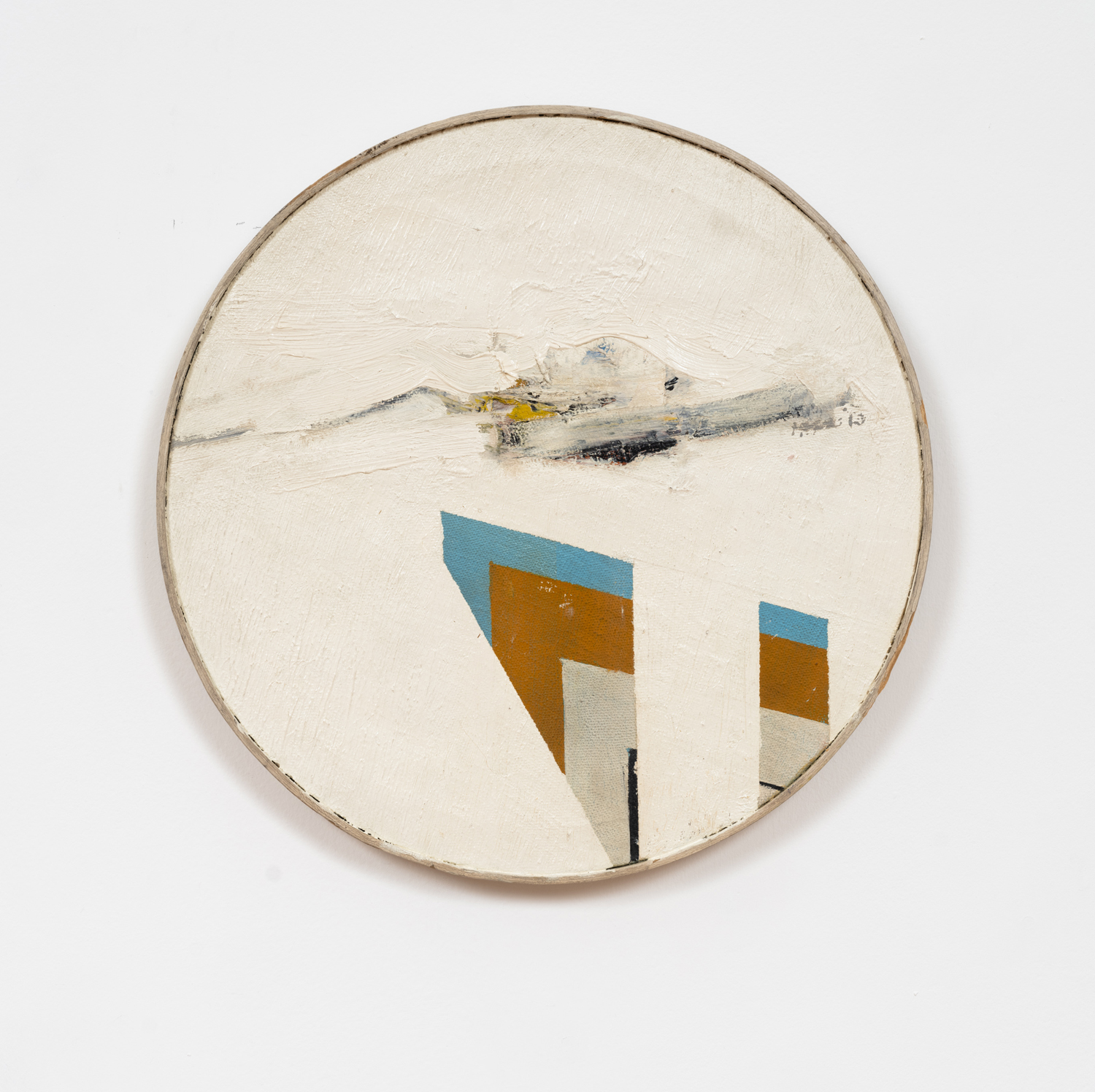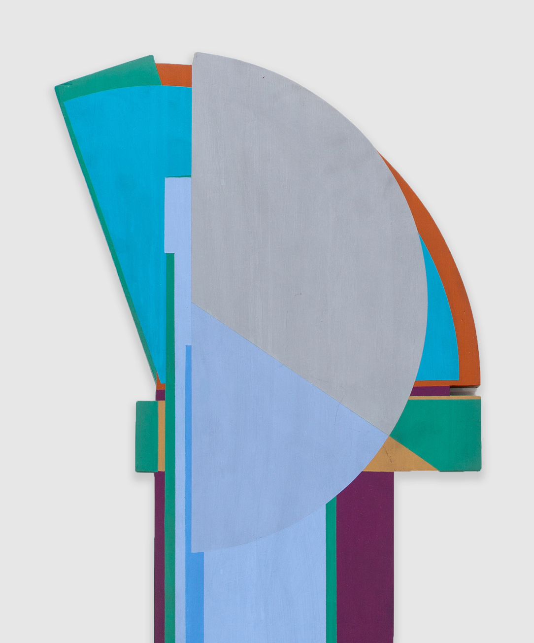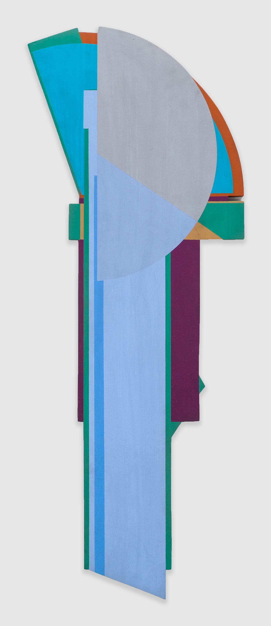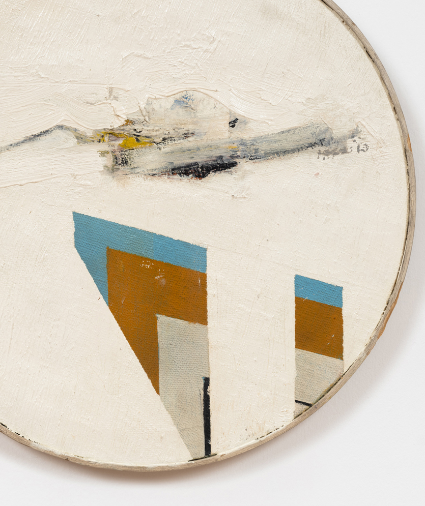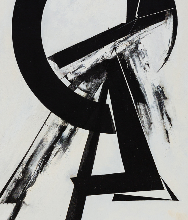 Guardian borrows its title from a series of paintings Hopkins began in the late 1970s and revisited periodically for the remainder of his life. Abandoning the discrete rectilinear panels by which he produced his “assembled paintings” earlier in the decade, Hopkins began painting in oil on custom-made panels, drawing the works closer to the vernacular of architecture, and closer toward objecthood, away from purely pictorial considerations. These works have occasionally been seen to mark the end of Hopkins’ engagements with AbEx, an engagement most evident in early works such as Untitled Tondo, 1963. Such moments of painterly expression became increasingly compartmentalized within the artist’s program of geometric abstraction throughout the second half of the 1960s and the better part of the 1970s, culminating finally in the Guardian series. Yet demonstrating the recursive nature of Hopkins’ practice, and its aforementioned dualism, another Guardian, 1981, finds the artist both returning the geometric forms of the earlier Guardian works to the conventional canvas and reverting to an expressionistic mode of production, in this case betraying the conspicuous influence of Franz Kline. From our current vantage, the privilege to survey the work in total, this sort of self-reflexive reconsideration of the past would become characteristic to Hopkins’ oeuvre. Indeed, Guardian anticipates Hopkins’ prolonged return to his distinct form of expressionism in the late 1990s.