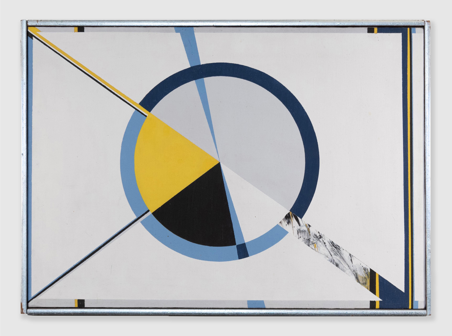 By the time of Guardian’s initial appearance, Hopkins had already published, in the Village Voice, his first investigation into the phenomenon of alien abduction, establishing a field of scientific study and launching a second career as a ufologist. Although Hopkins assiduously denied any correlation between his artistic practice and his subsequent research in ufology, for which he is often remembered today, we might instead note that sensory information – certain discoveries of the concealed, intangible, or unrepresentable facets of experience – motivated his work in abstraction from the beginning. Moving from West Virginia via Oberlin College in the mid-1950s, the foreign rhythms of city life and its strange geometries provided the experiential, emotive terrain upon which Hopkins could distinguish his burgeoning practice from the formative milieu in which he situated himself. “Abstract Expressionism was winding down, and though I was, in my own work, looking for something cooler, more stable, more orderly, I was reluctant to give up the fervid New York energy that quivered in every Kline and Pollock and de Kooning,” the artist wrote later, in 1976.