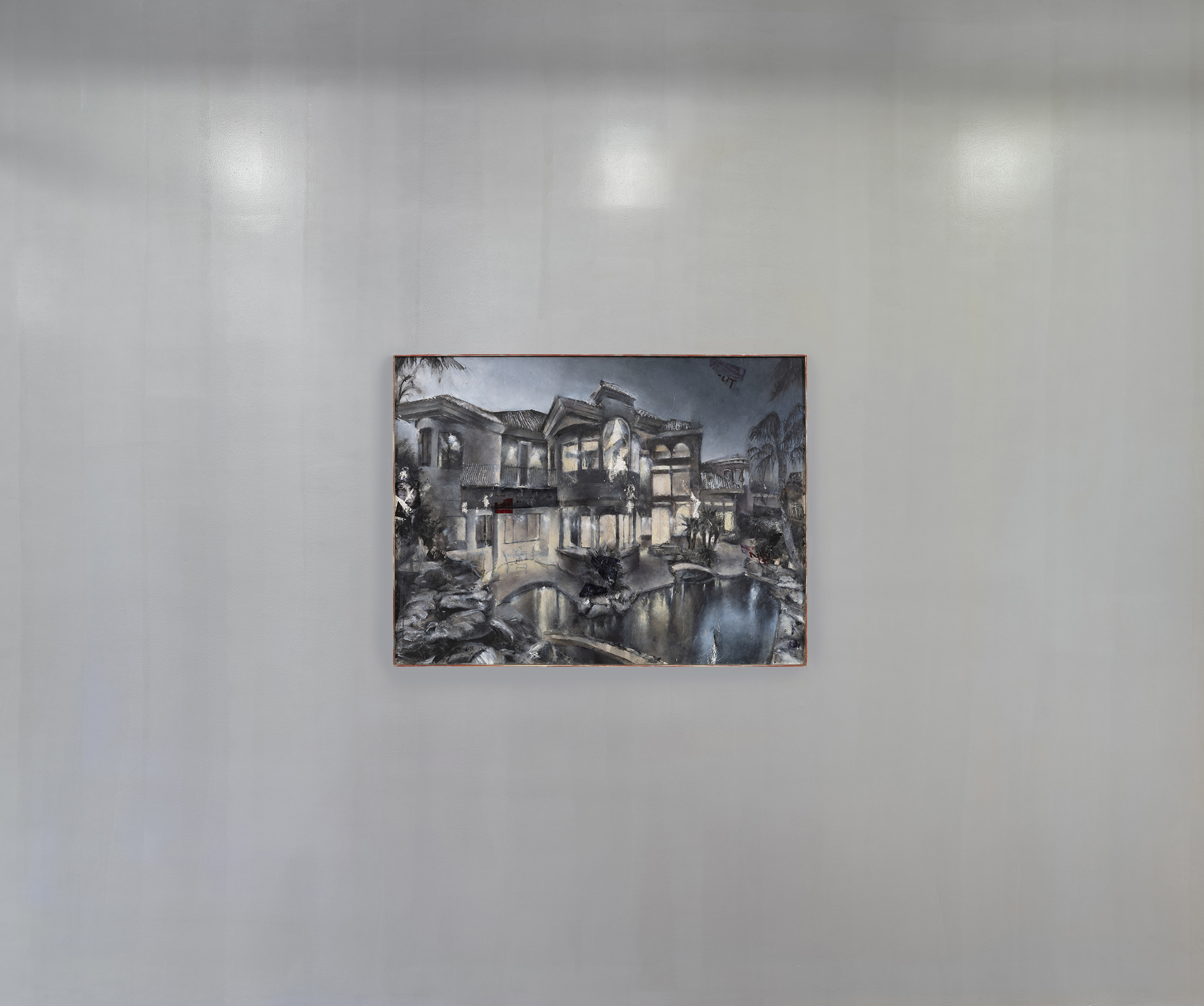 Catherine Mulligan, Las Vegas Mansion , 2023. Oil on canvas with unique frame, 36 1/2 × 48 1/2 in / 92,7 × 123,2 cm