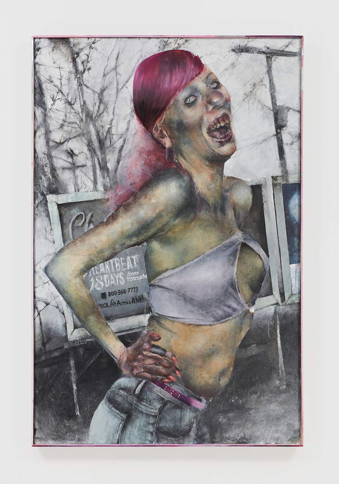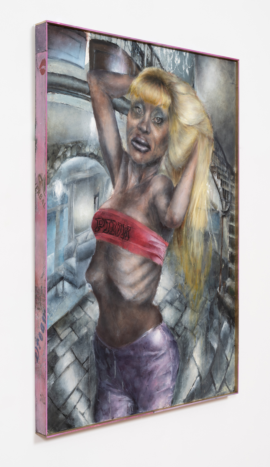 Catherine Mulligan, Hitchhiker, 2023. Oil on canvas with custom frame, 55 1/2 × 36 1/2 × 2 3/4 in / 141 × 92,7 × 7 cm