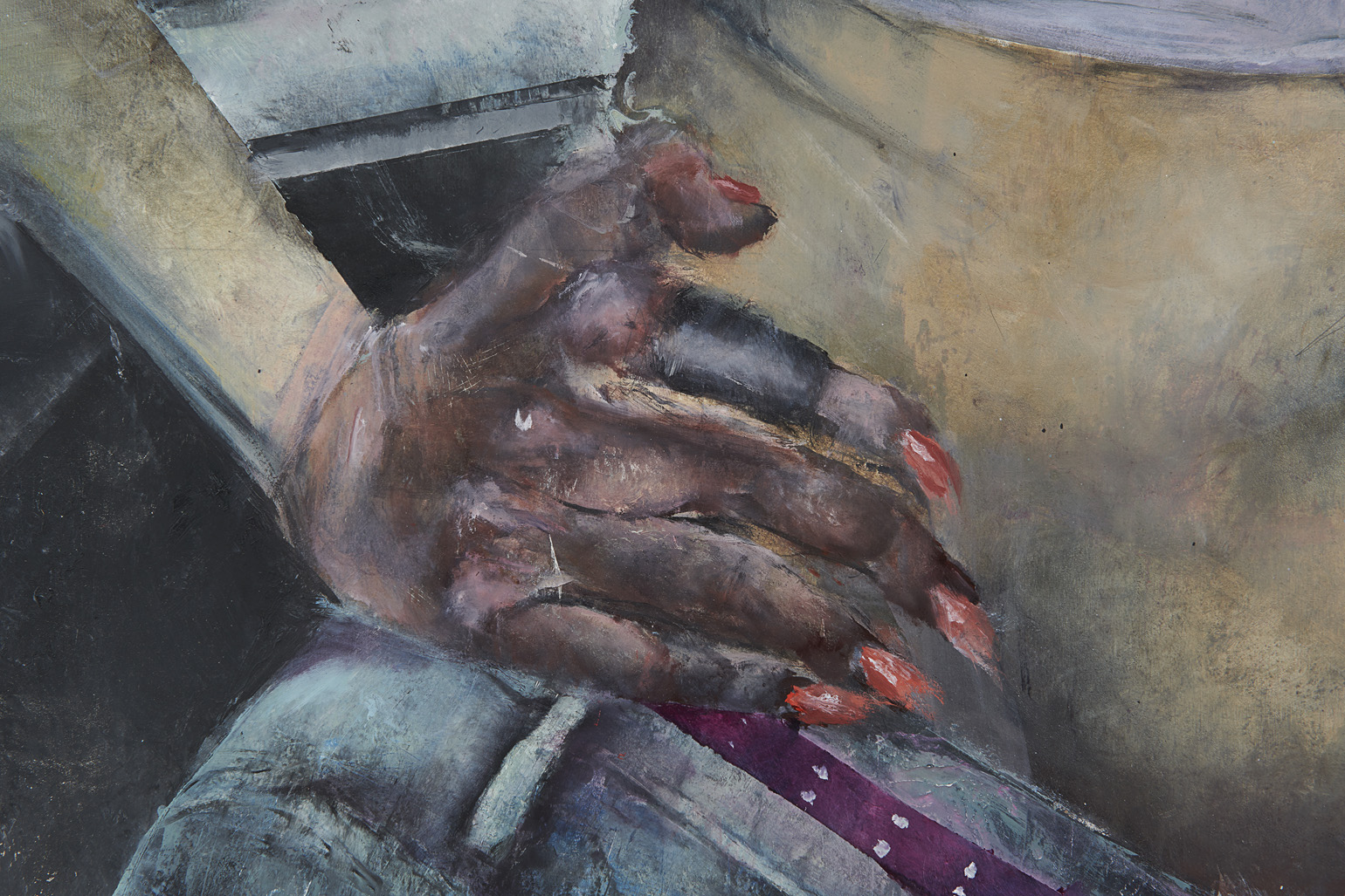 Catherine Mulligan, Hitchhiker, 2023 (detail). Oil on canvas with custom frame, 55 1/2 × 36 1/2 in / 141 × 92,7 cm