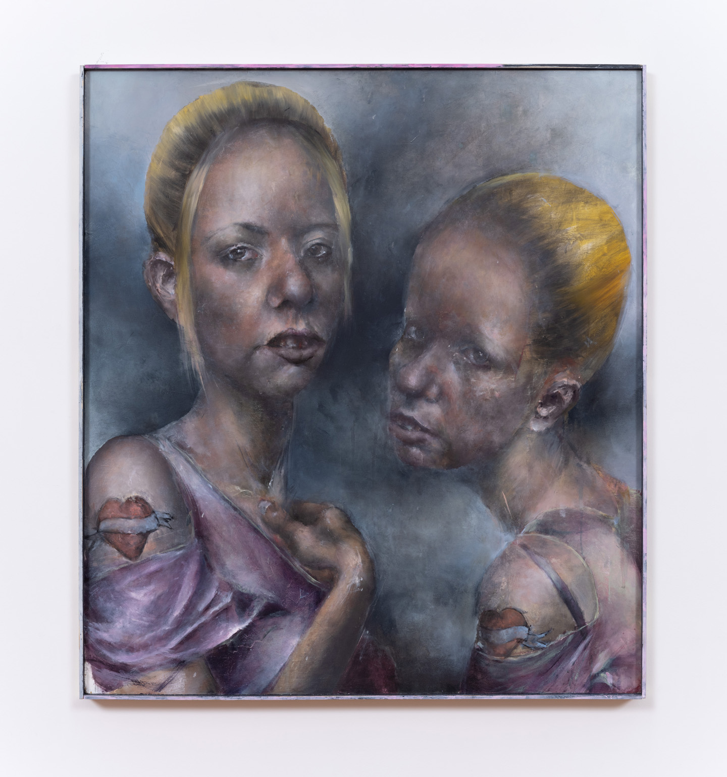 Catherine Mulligan, Sisters, 2023. Oil on canvas with unique frame, 36 1/2 × 32 1/2 in / 92,7 × 82,5 cm