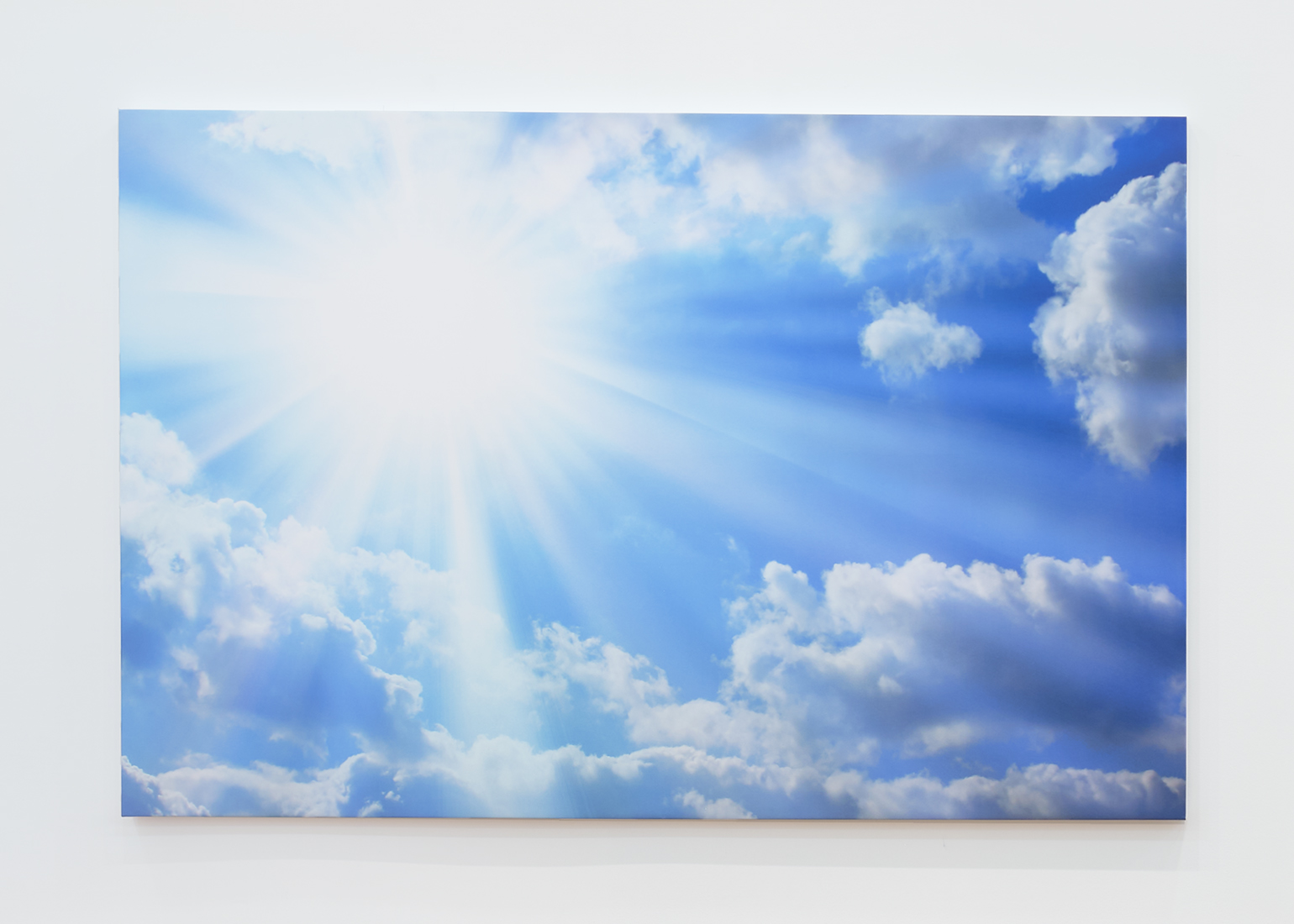 In “Enhanced Serenity” a digitally doctored photo of the sun’s heavenly rays appears facetuned, the latest to fall victim to our narcissistic culture. The sun, long a metaphor for truth and life, now distorts all that is illuminated by its path.