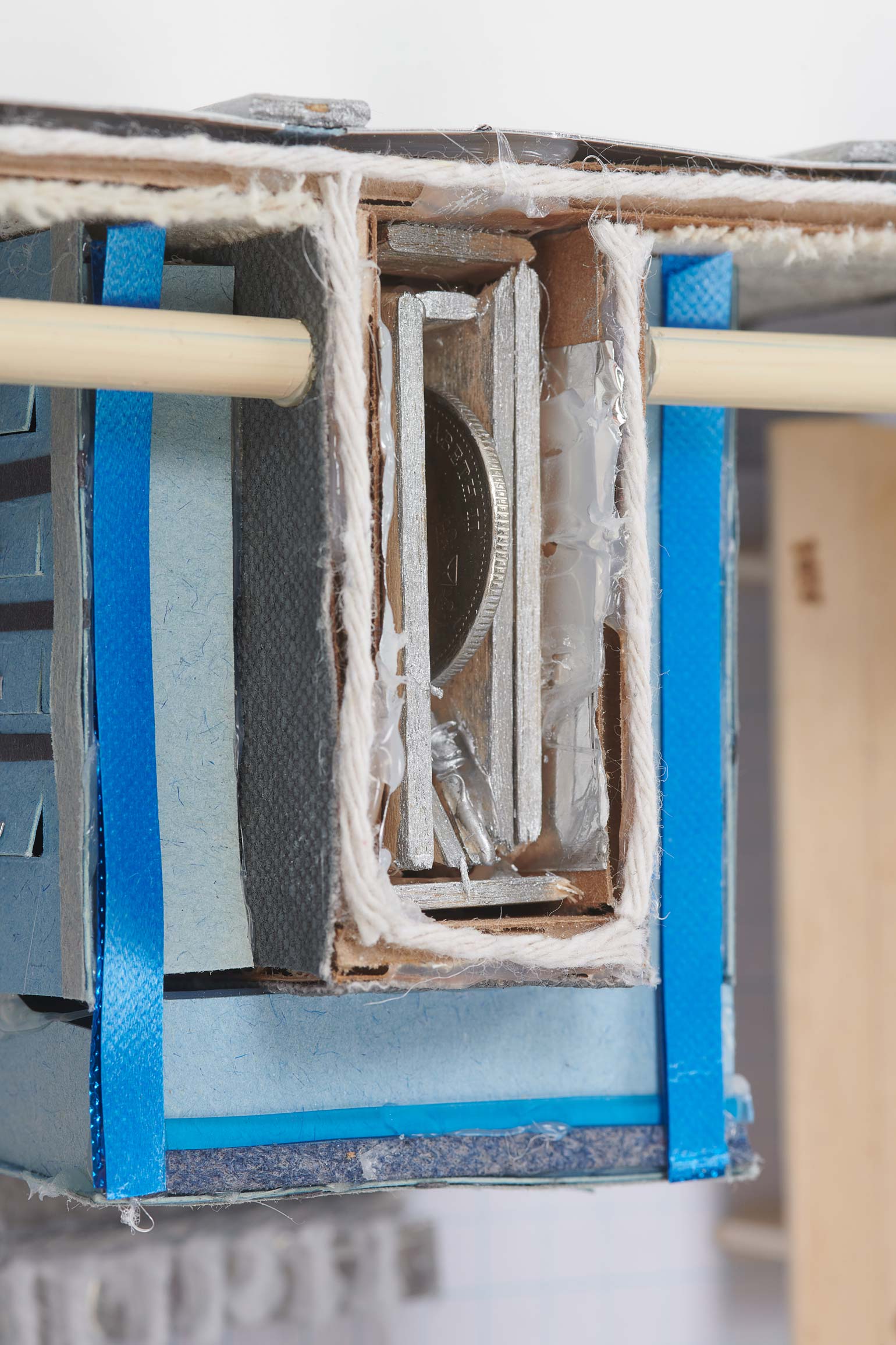 The artist has been crafting these excessively detailed works—or “handmade readymades,” as he sometimes calls them—for a few years now. Opting for proximal materials, most are culled from the recycling bin at his workplace, from the dollar store or hardware store on Davie Street in the gay village, or from the ground. While a number of imperatives could feasibly be tacked onto this impulse, it’s truer to say that Watt (who studied art history, not studio art) has always been doing this, led by insatiable curiosity, attention to detail, and maybe even a 6th sense. To spend any amount of time with him is to know his ability to unearth strange things in plain sight; his eyes are somehow always fresh. In thinking of Robert Gober’s doll houses, Hilton Als draws on an idea from Barthes: toys are designed in such a way that “the child can only identify himself as owner, as user, never as a creator; he does not invent the world, he uses it; there are, prepared for him, actions without adventure, without wonder, without joy.” Watt’s work, which collects many such “mainsprings of adult causality,” re-engineers our relationship to what’s given—not only destabilizing our position as “users” but also drenching the complex processes of identity formation in jouissance.