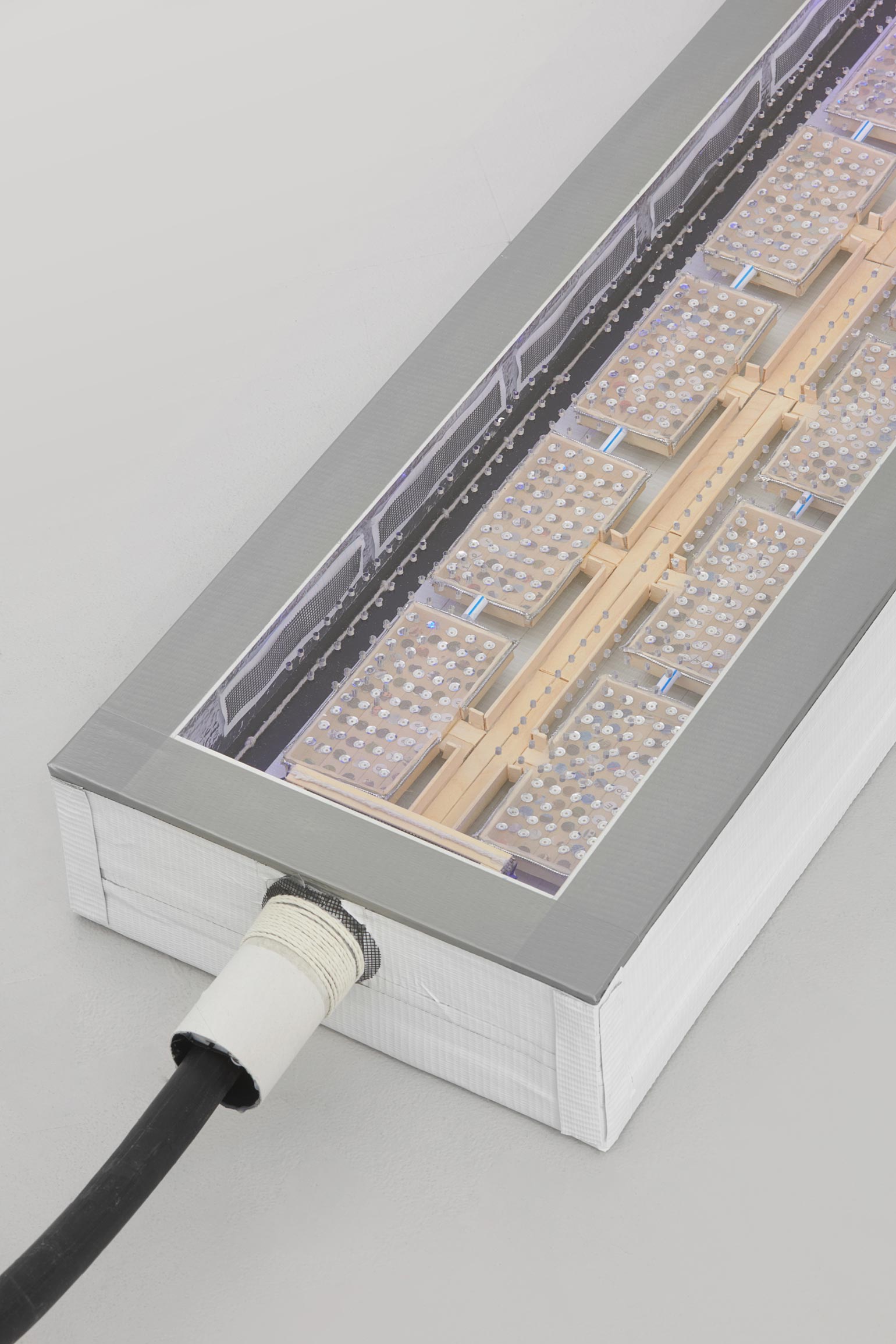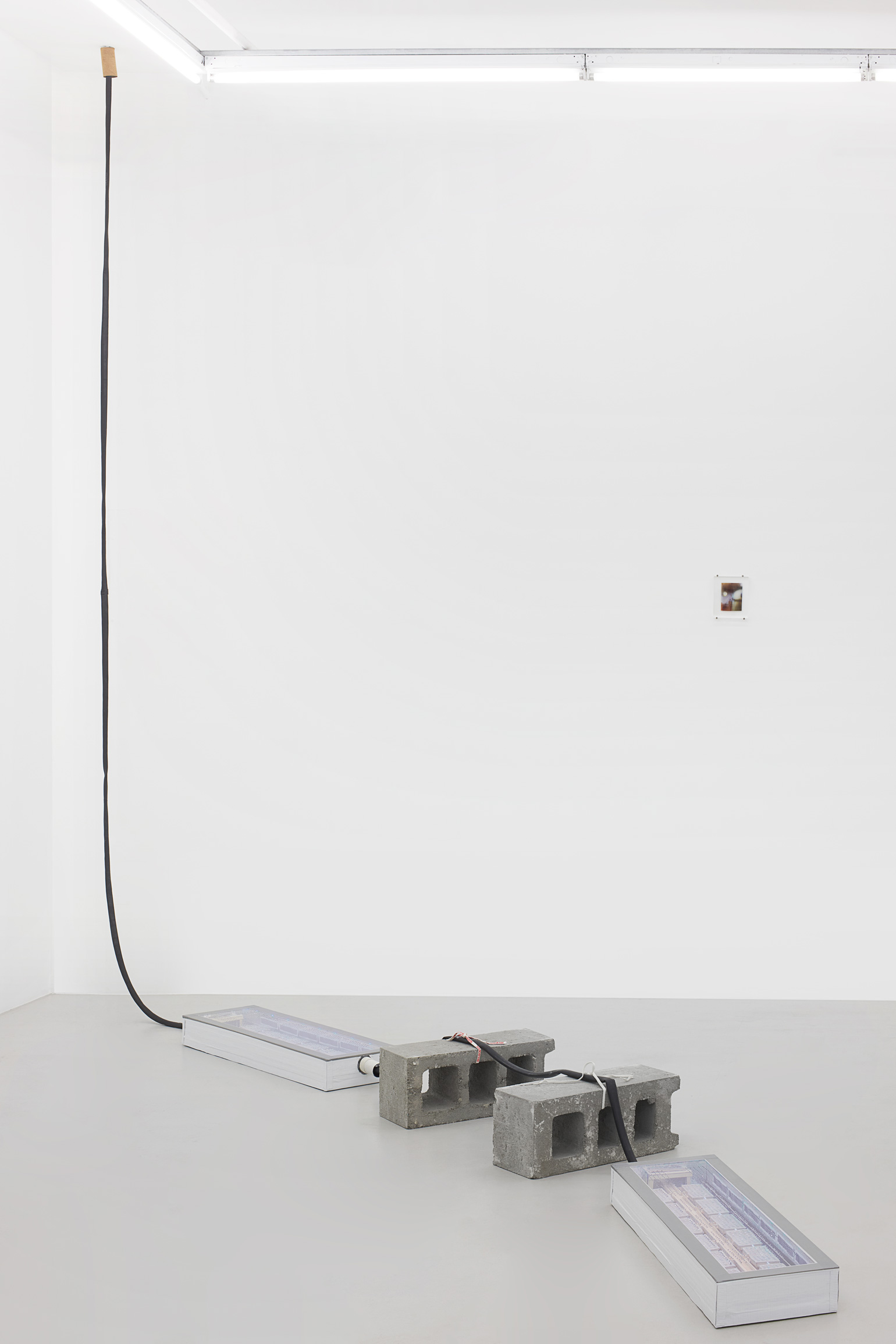 One Saturday morning, at the Vancouver Aquatic Centre on Beach Avenue, Douglas Watt spotted something unfamiliar through his goggles. There, on the floor of the deep end, were two long white boxes connected by a black tube all pinned by cinder blocks. Recognizable perhaps only to divers and pool personnel, the device—a sparger—creates a profusion of bubbles, breaking surface tension. It falsifies a softness, blurs the natural violence between water and falling body. Without the effervescence, the surface is also invisible; no matter how many times the divers looked down and plunged it, the unmodified entry remains imperceptible. This obscure machine, a lodestone for Watt, might be thought of as a guidebook or prism or blackbox for all the works in Deep End Epiphany, his first solo show in the US.
