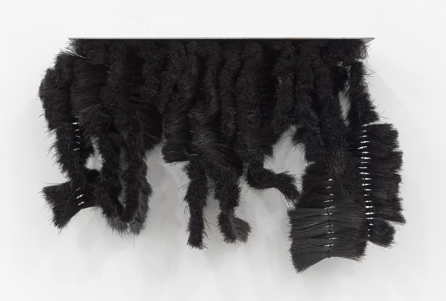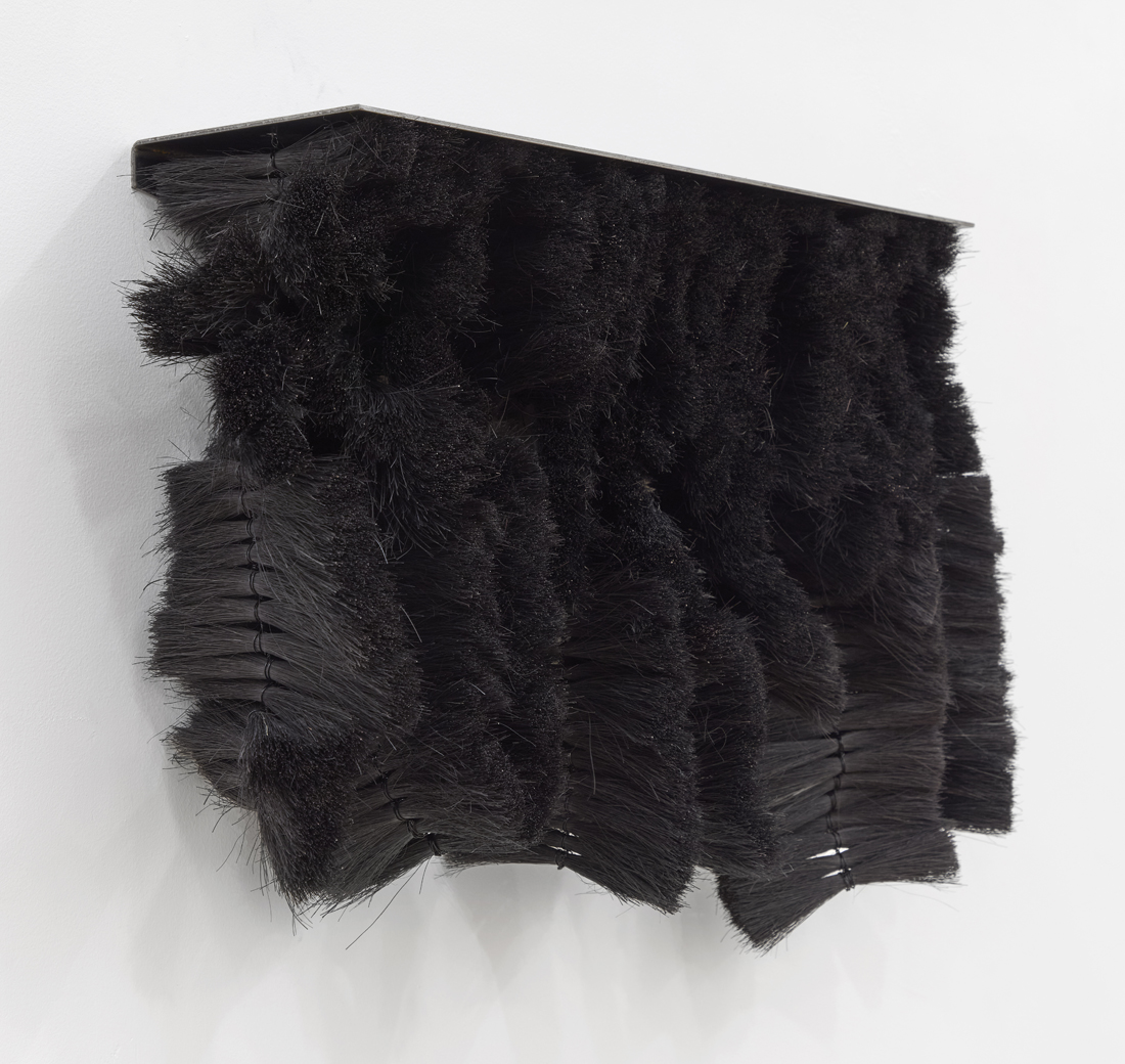The desert rewards the economization of energy and movement, and in this stillness, one becomes aware of its subtleties. The vegetation, the weather, and the triumphs of time shaped in rock form a sense of temporality and order. Many elegant surprises complicate the pictorial trope of emptiness and Hohimer is uniquely attuned to this richness. This orientation is given significative function in the vertical columns of agave that compose Totem 3, which the artist describes as a three-dimensional timeline. Approaching the readymade in its rough utilitarian appearance, the bristly strands that hang from this sculpture both repel and attract, an experience that is intensified as one draws closer.