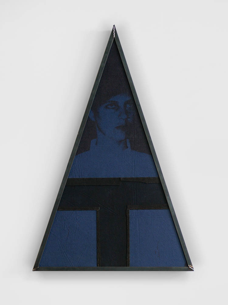 Darja Bajagić, Pyramidal Tau (Mater), 2021. Acrylic, embalmer’s thread, and UV print on canvas; steel frame, 49 × 30 × 2 in / 111,76 × 76,2 × 5,08 cm