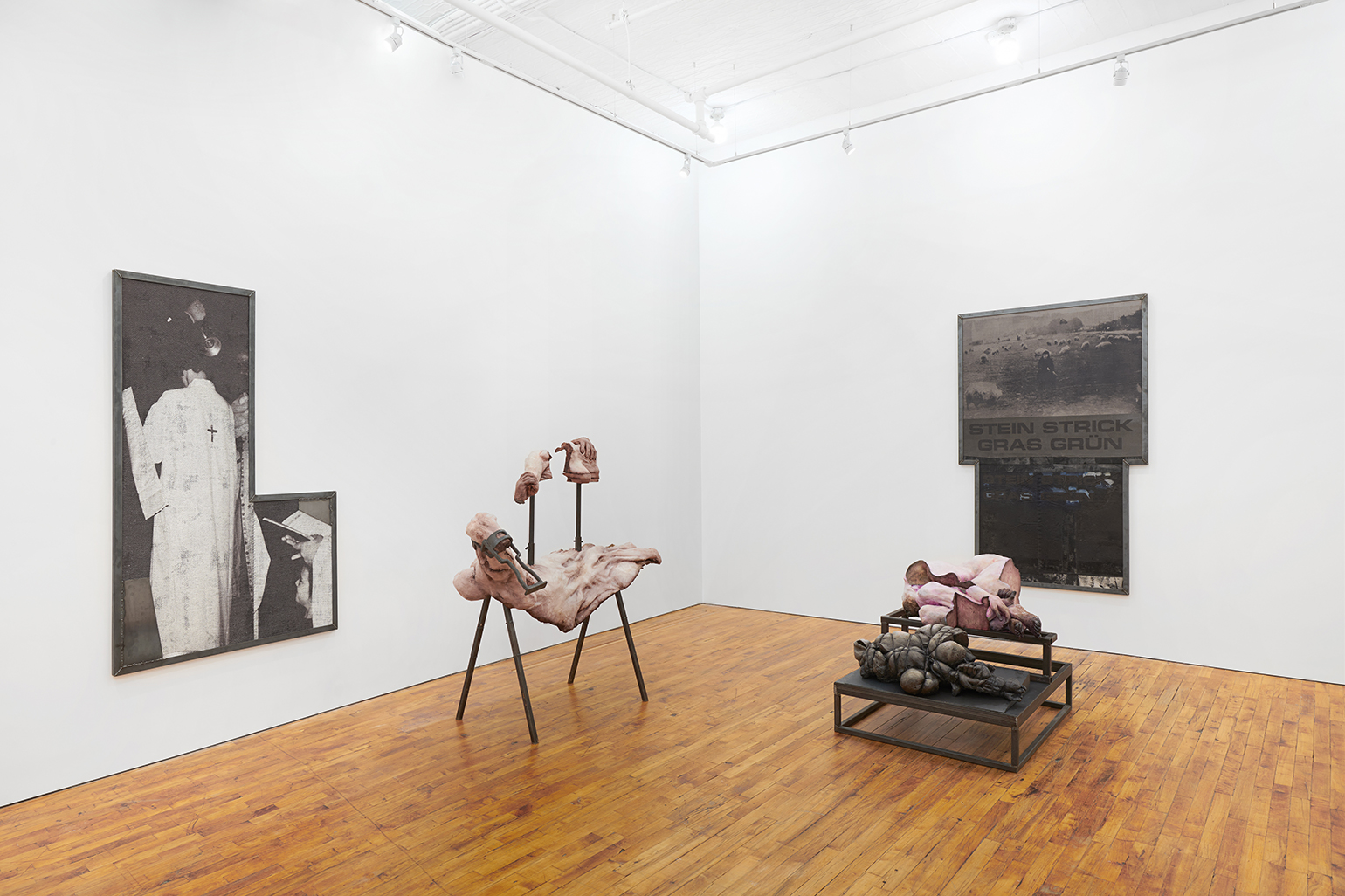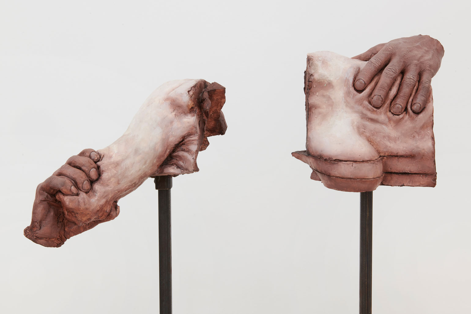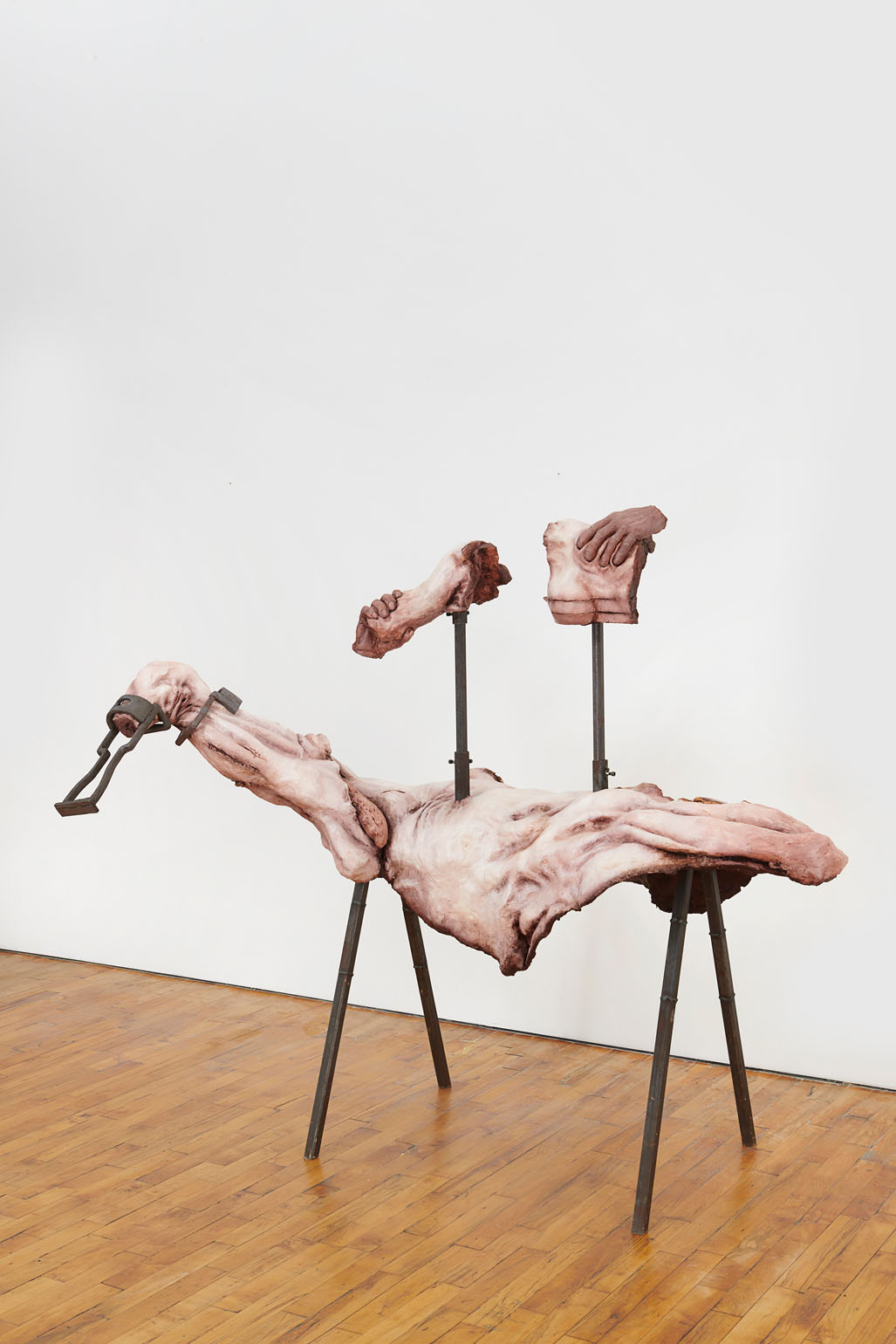Lionel Maunz, My Hands Make the Perfect Wound, 2022. Modified gypsum, polyurethane resin, epoxy clay, steel, acrylic paint, 55 × 60 × 36 in / 139,7 × 152,4 × 91,4 cm