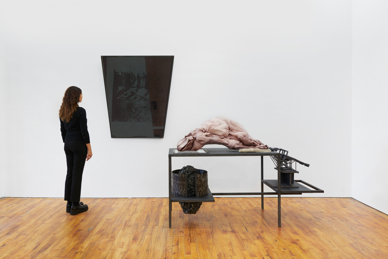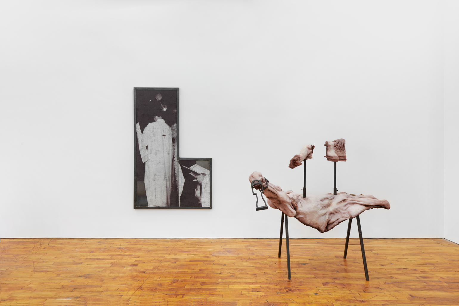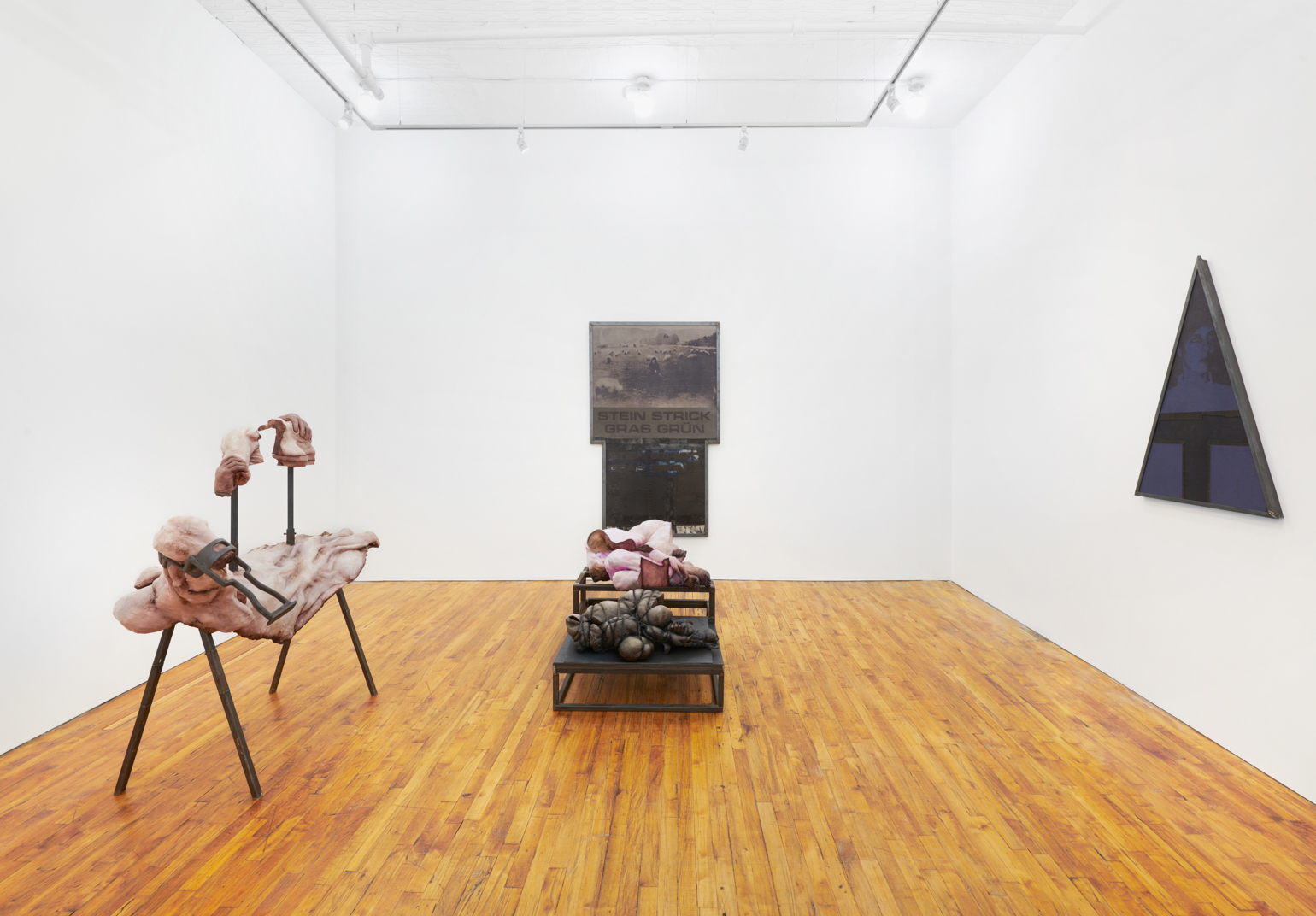 Lionel Maunz, My Hands Make the Perfect Wound, 2022. Modified gypsum, polyurethane resin, epoxy clay, steel, acrylic paint, 55 × 60 × 36 in / 139,7 × 152,4 × 91,4 cm