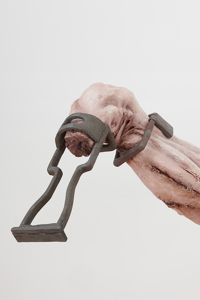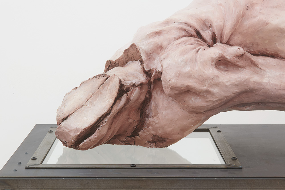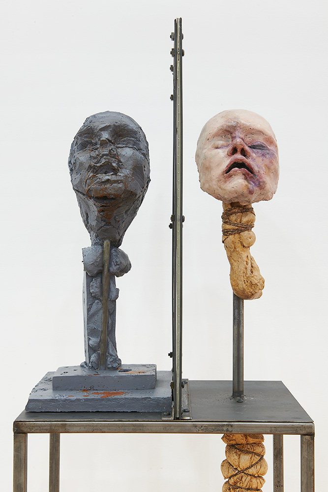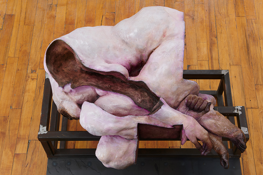 Lionel Maunz, My Hands Make the Perfect Wound, 2022 (detail). Modified gypsum, polyurethane resin, epoxy clay, steel, acrylic paint, 55 × 60 × 36 in / 139,7 × 152,4 × 91,4 cm