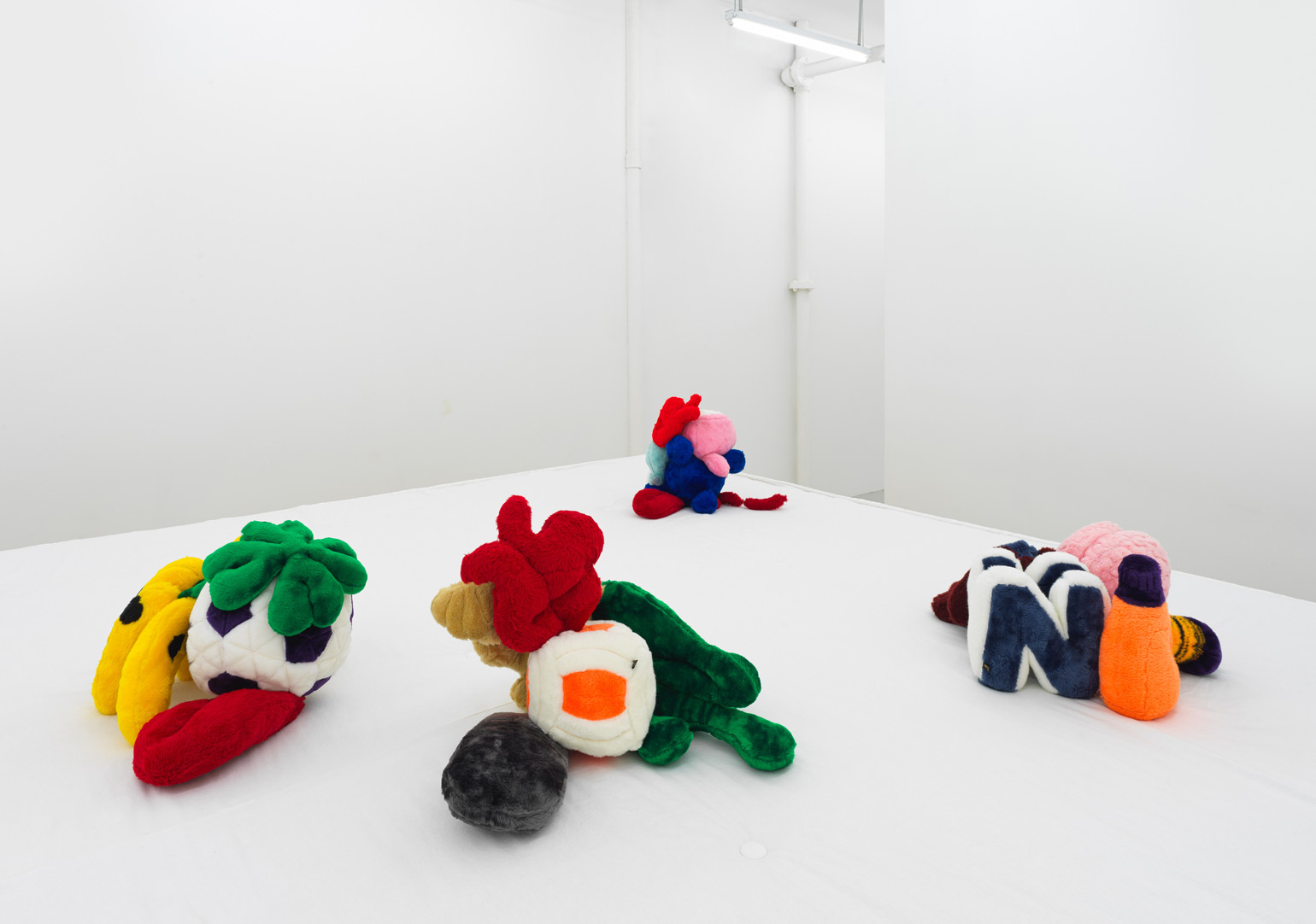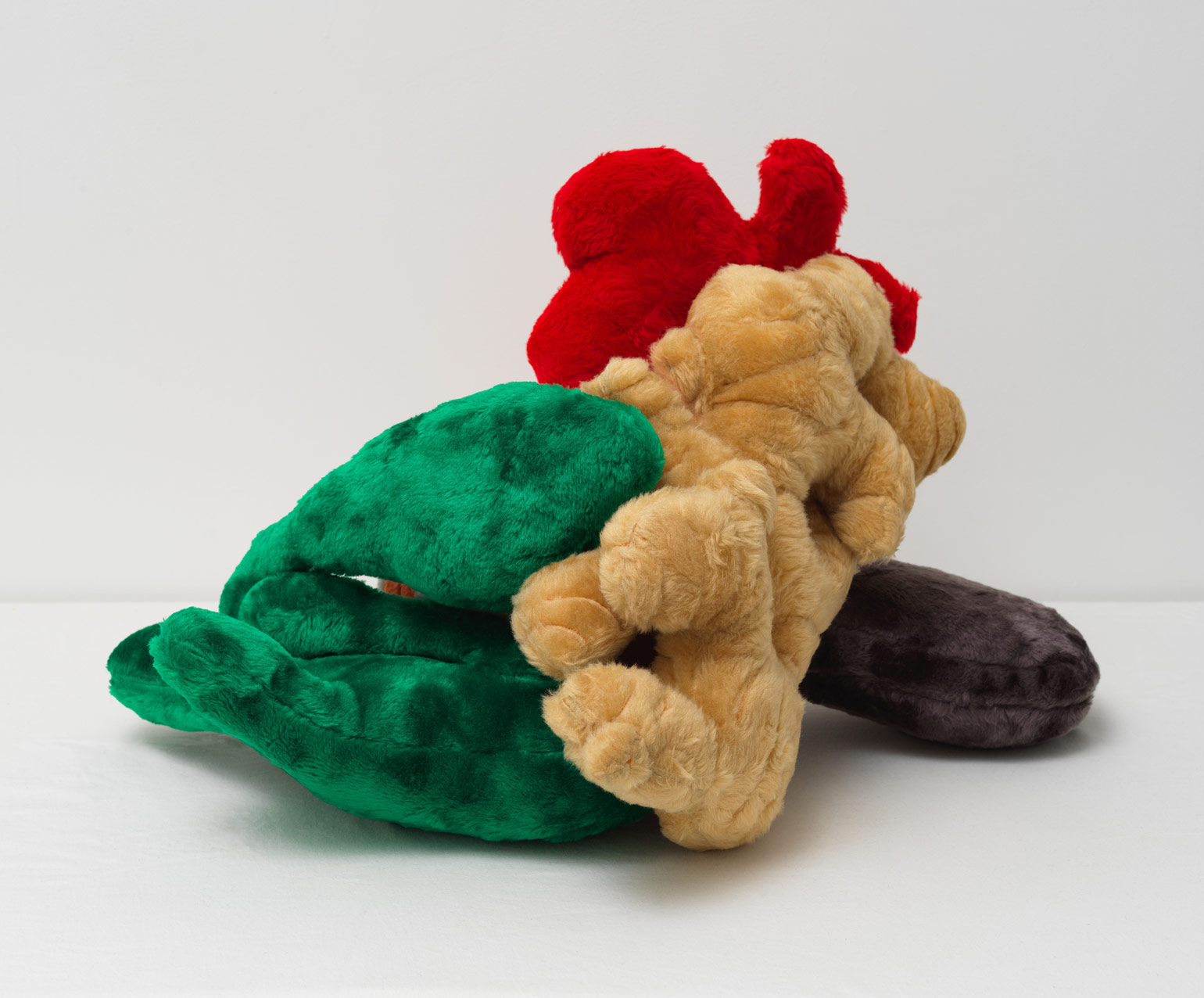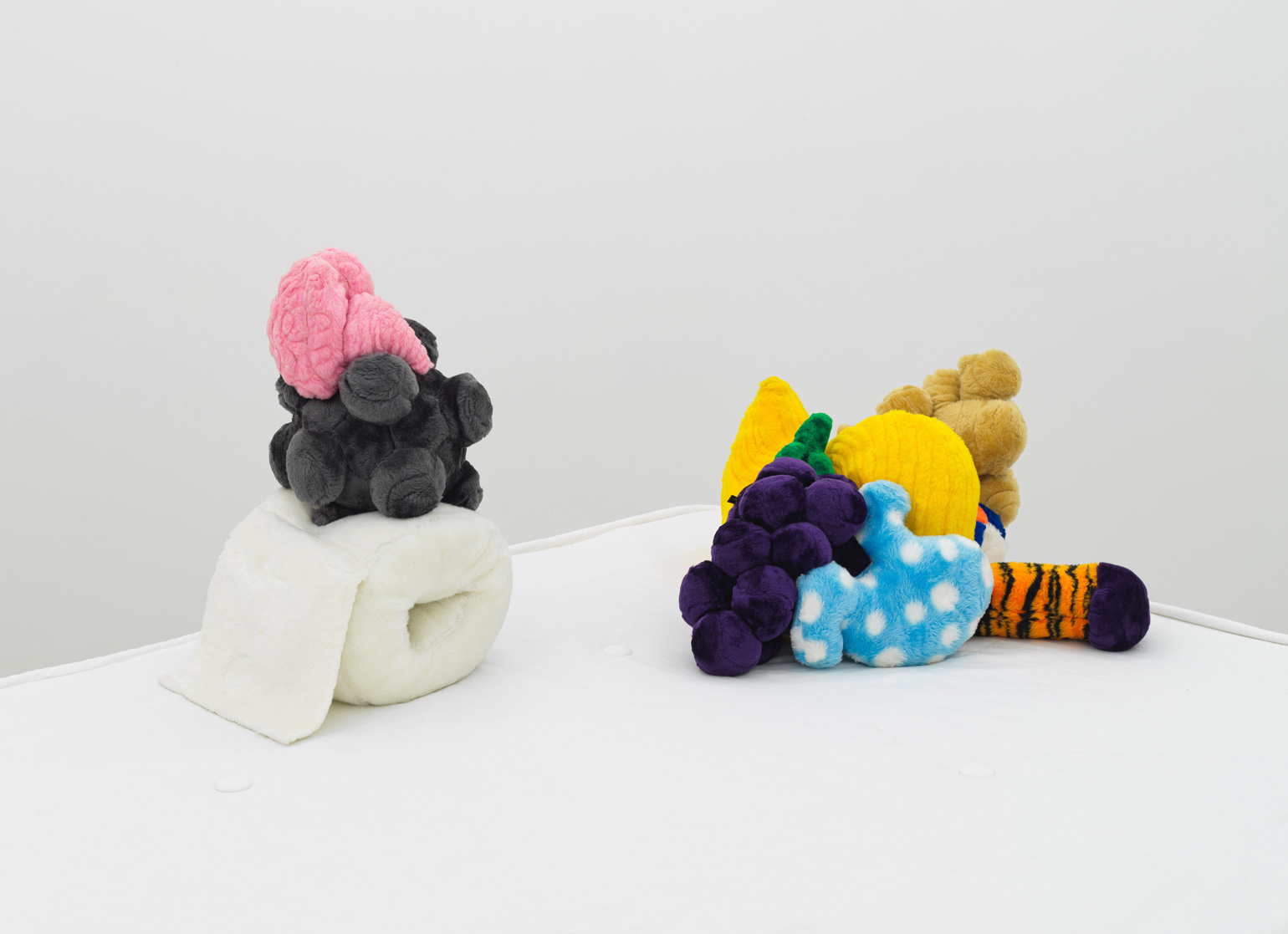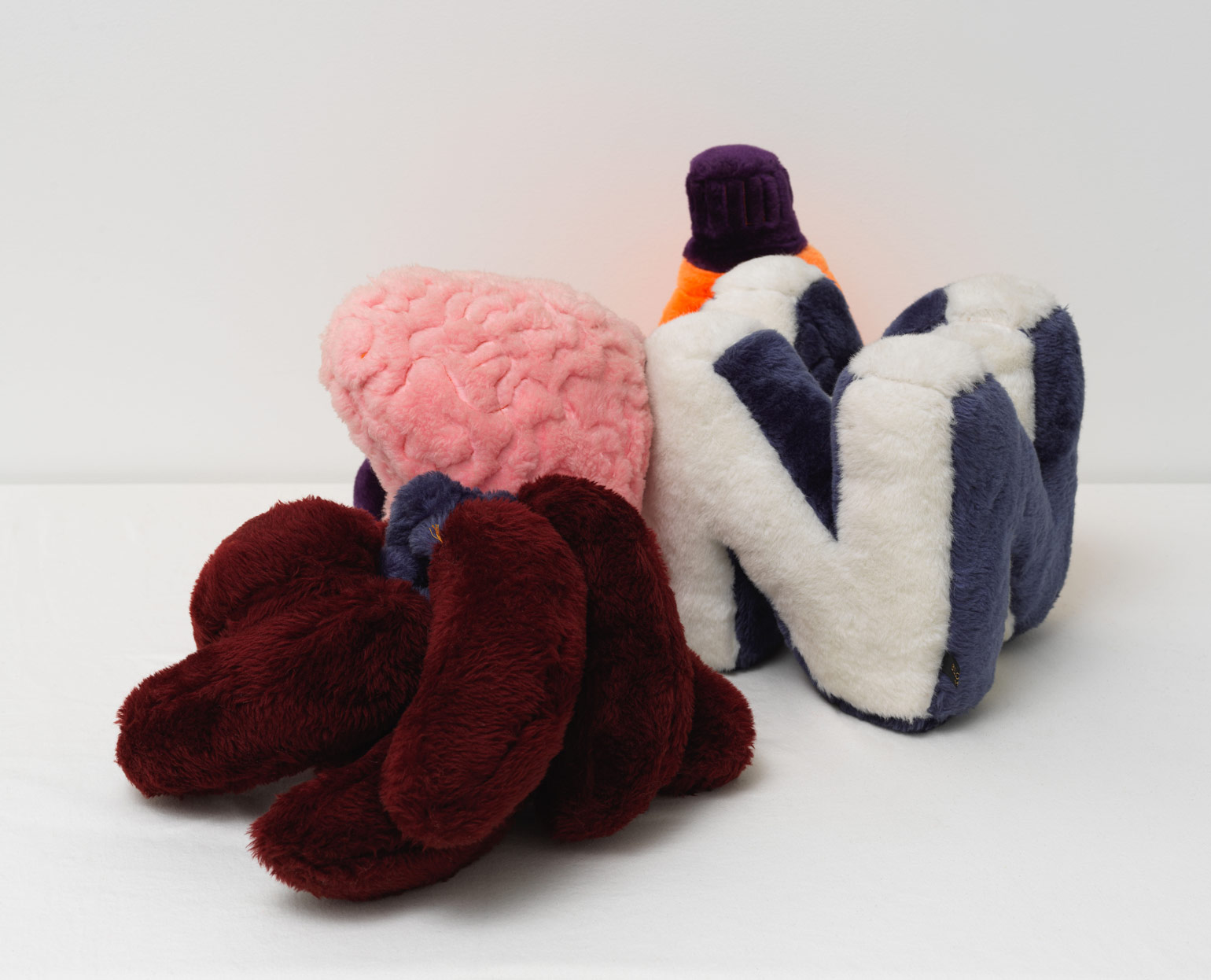 elements: soccer ball, papaya, tongue, gall bladder, brain, Panama banana bunch, earthworm (based on Earthworm Jim), pine cone