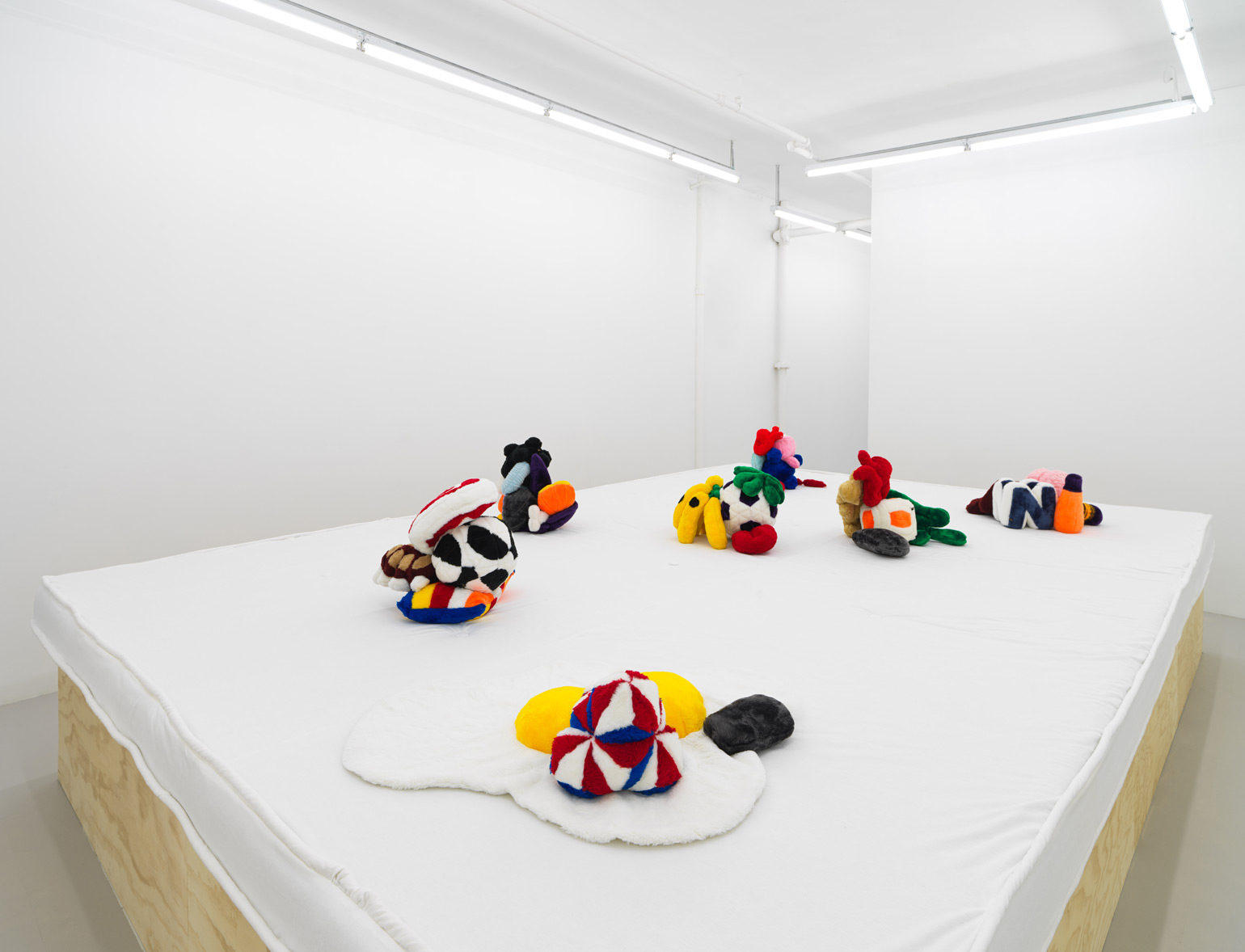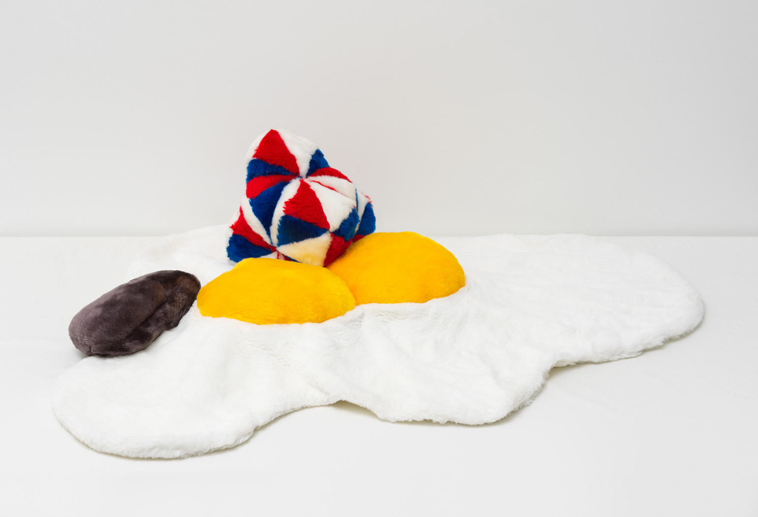 elements: double-yolk fried egg, computer mouse, polyhedron