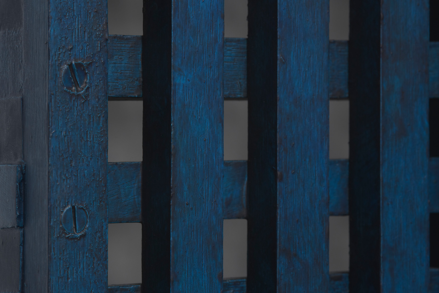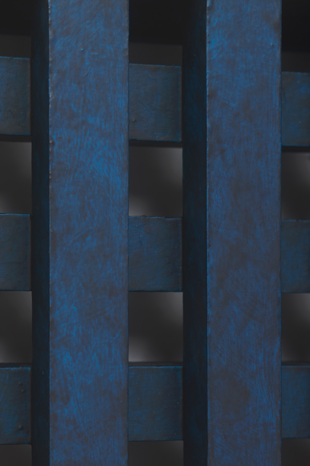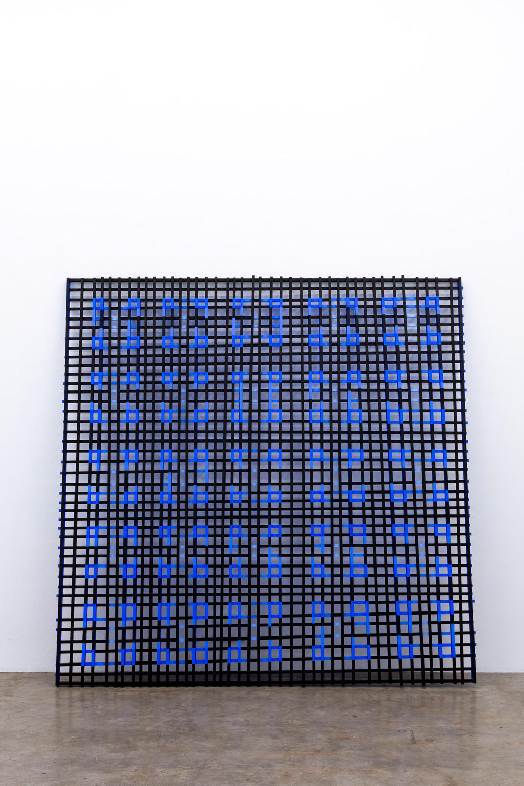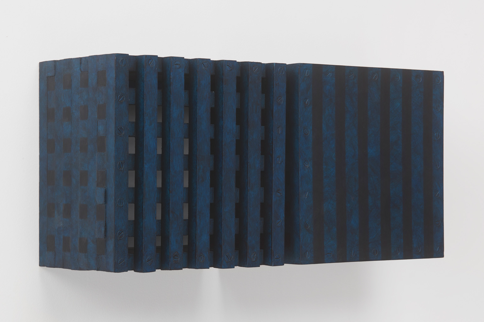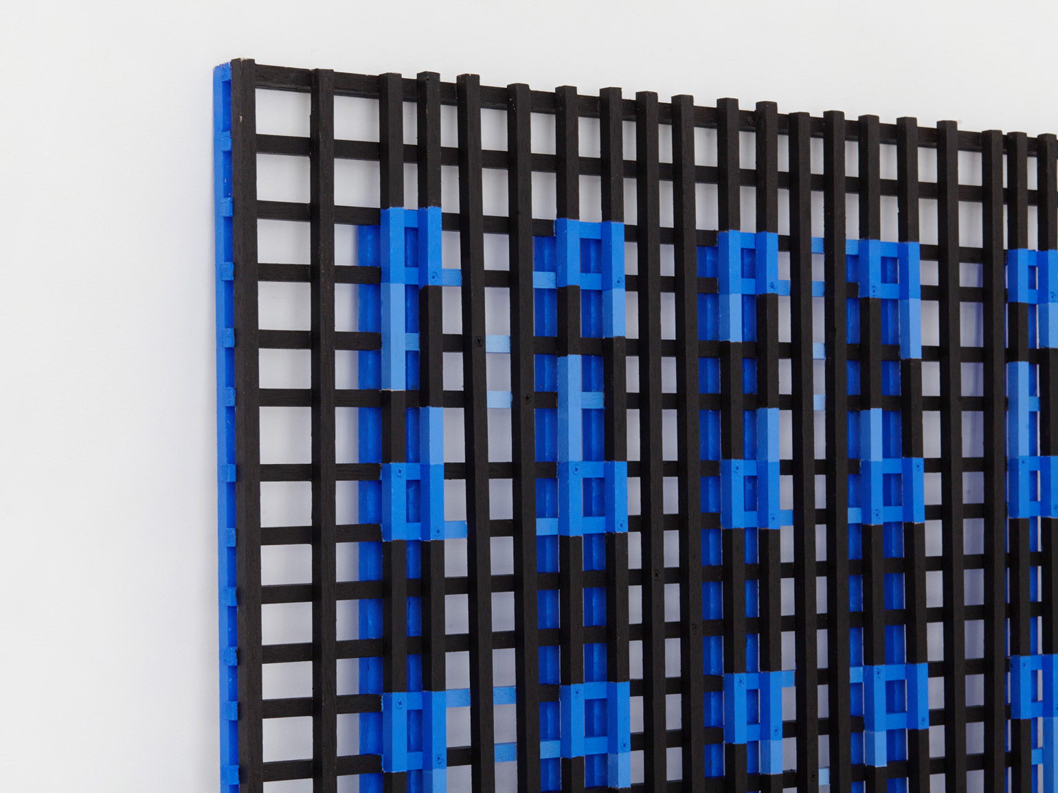 The works included in this exhibition were all made during the night-time hours: a curious connection to Uglow, who would break his self-imposed rules in the studio during the evening. Large grids are paired with small twin cubes that command presence on a smaller scale. The twin cubes hang as pairs. The left element is a constructed piece, the right is an illusion of the left existing in the slippage between sculpture and painting.