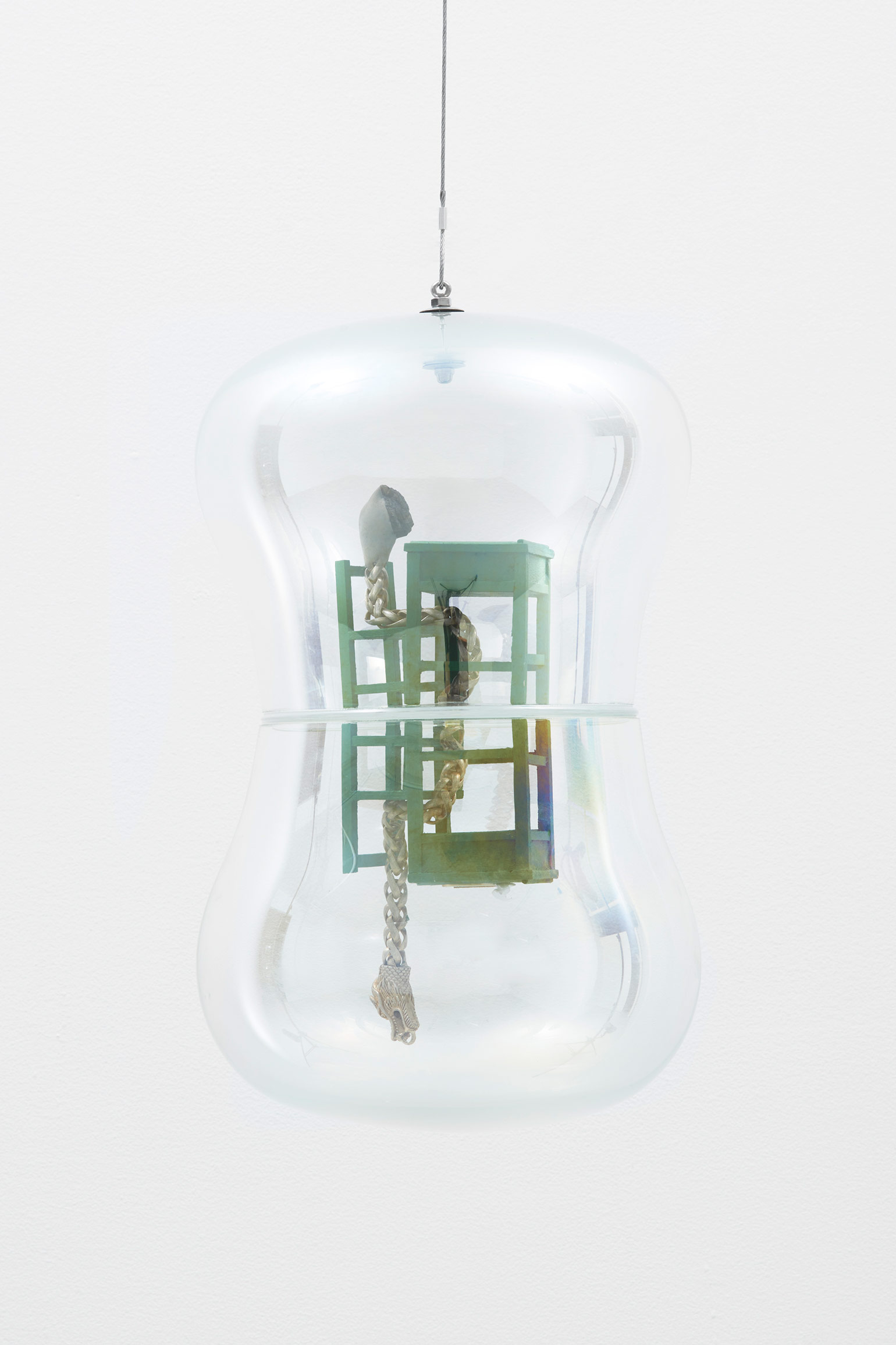 Pauline Shaw, flip flop, 2022. Blown glass, carved basswood, paint, silver, stone, paper, hardware, ø8 × 13 1/2 in / ø20,3 × 34,3 cm