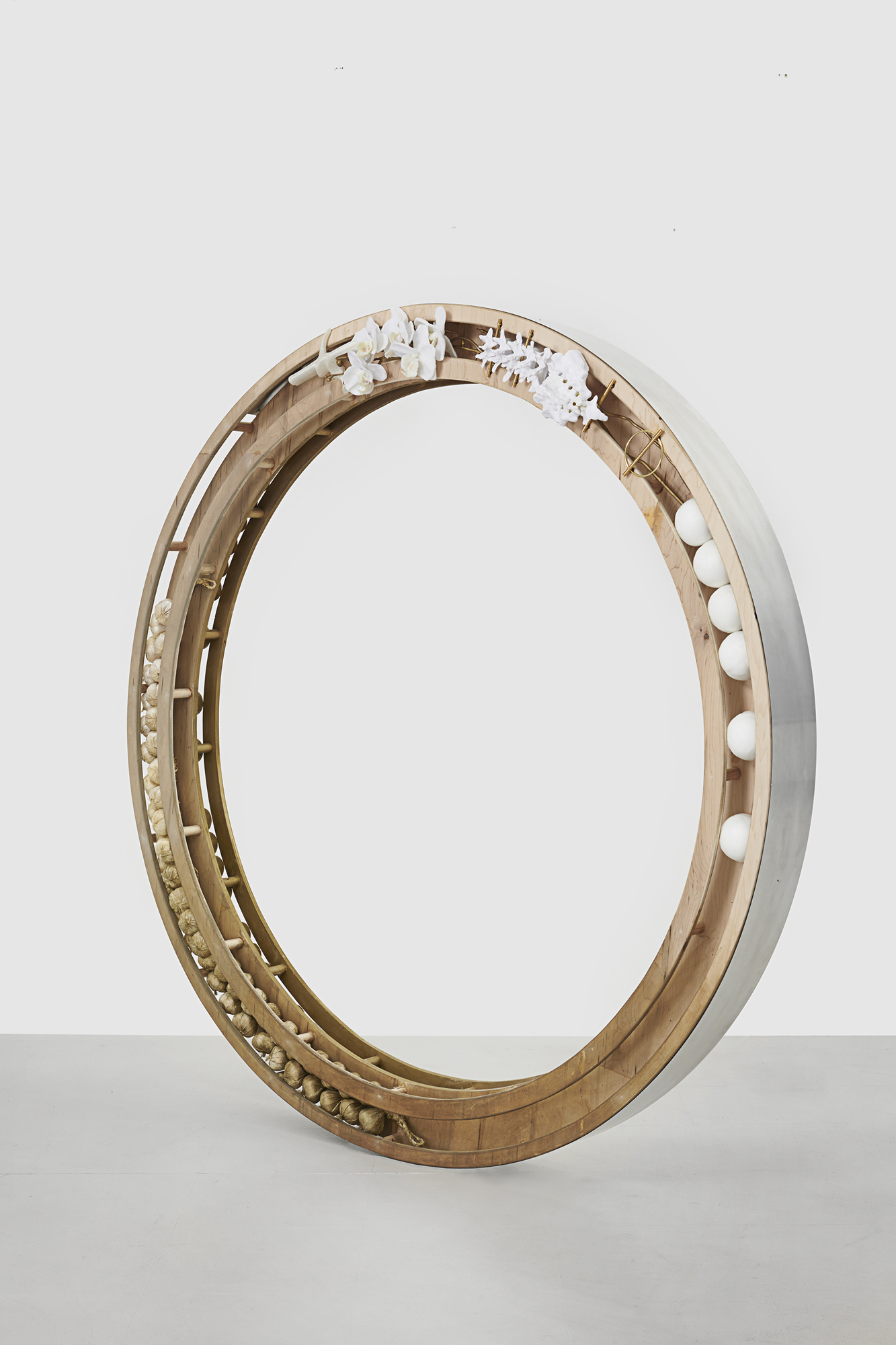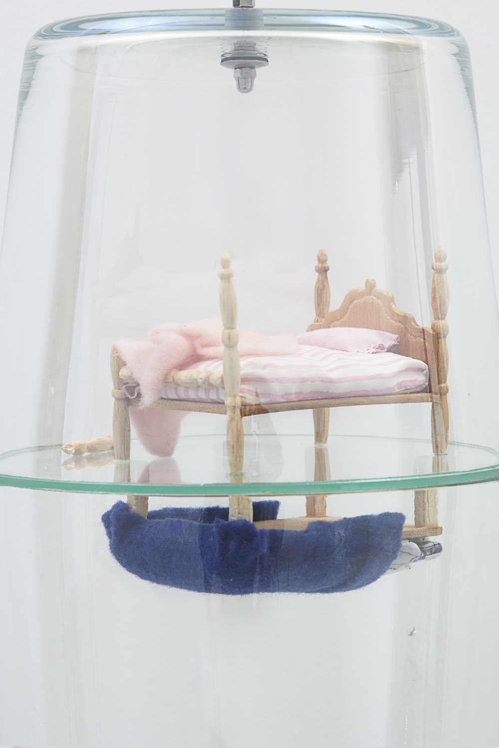 Pauline Shaw, tears on the floor, 2022 (detail). Blown glass, carved basswood, cloth, pearl, hardware, ø7 × 14 in / ø17,8 × 35,6 cm