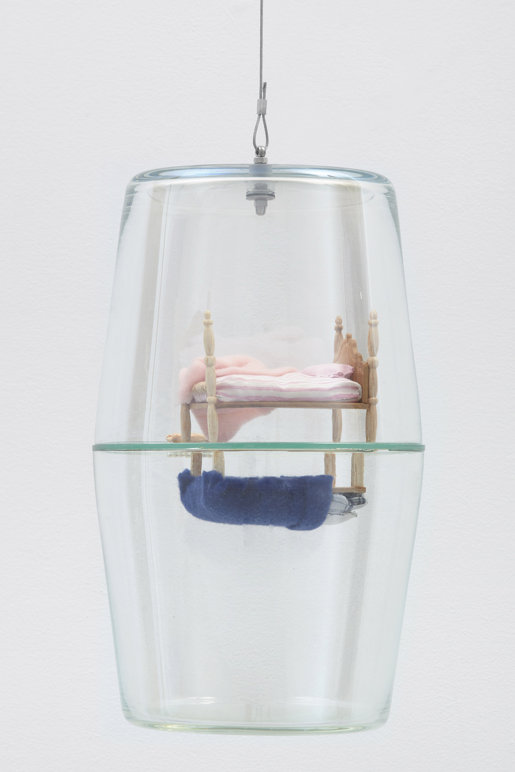 Pauline Shaw, tears on the floor, 2022. Blown glass, carved basswood, cloth, pearl, hardware, ø7 × 14 in / ø17,8 × 35,6 cm