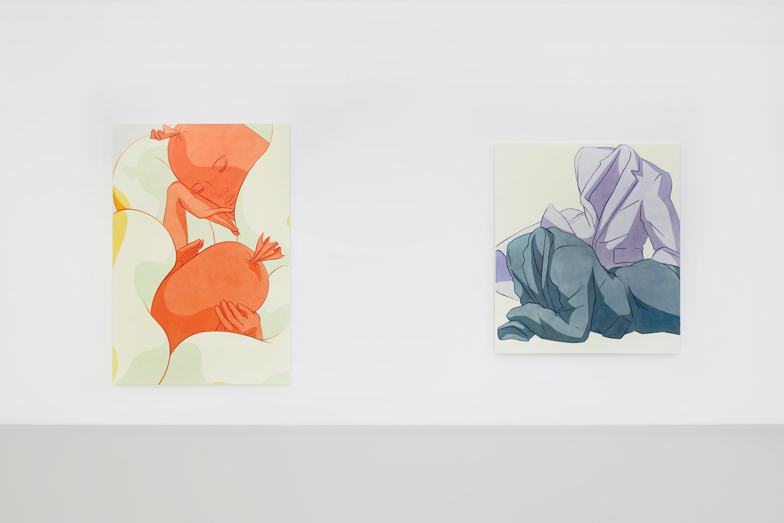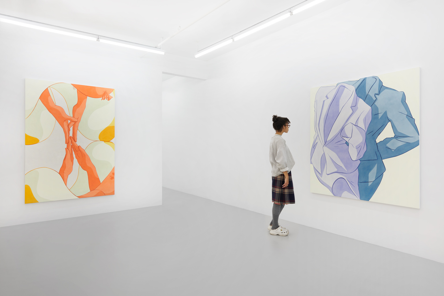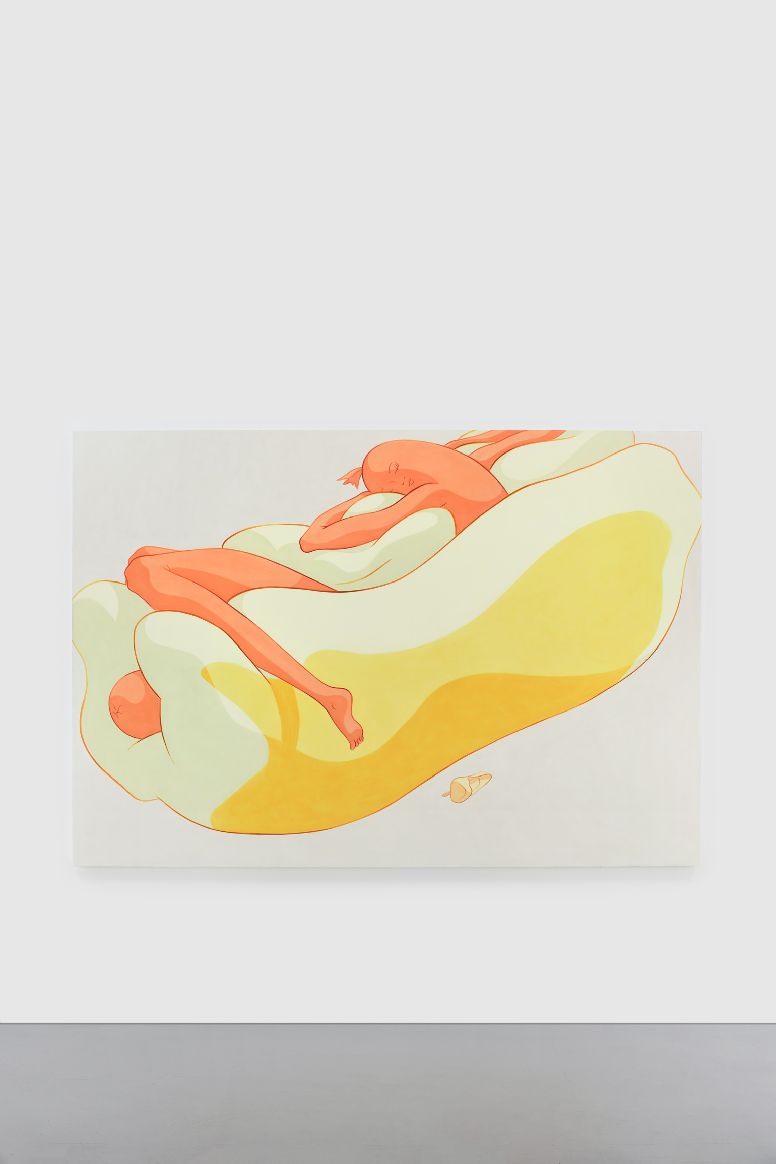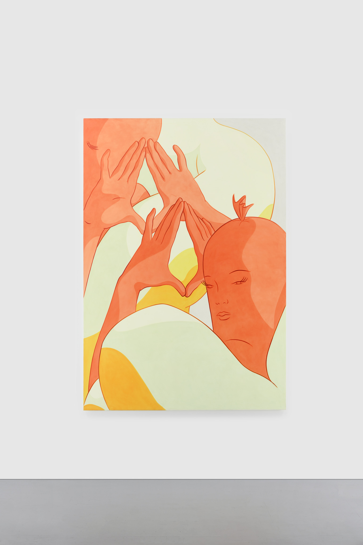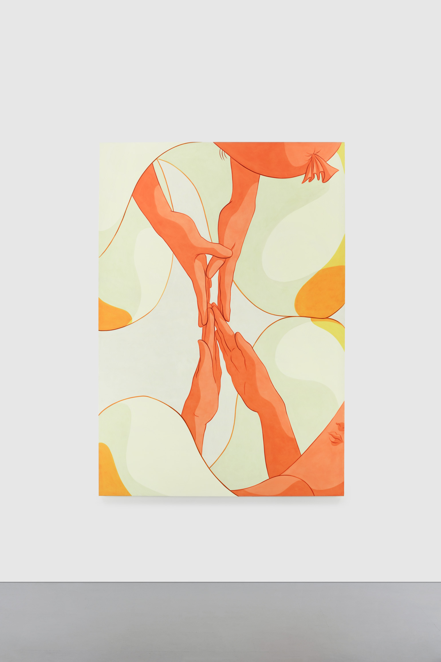 Ivy Haldeman, Twice Colossus, Four Hands Touch, Palms Apart, Buns Press Slightly, 2021. Acrylic on canvas, 83 1/2 × 57 1/2 inches / 212 × 146 cm