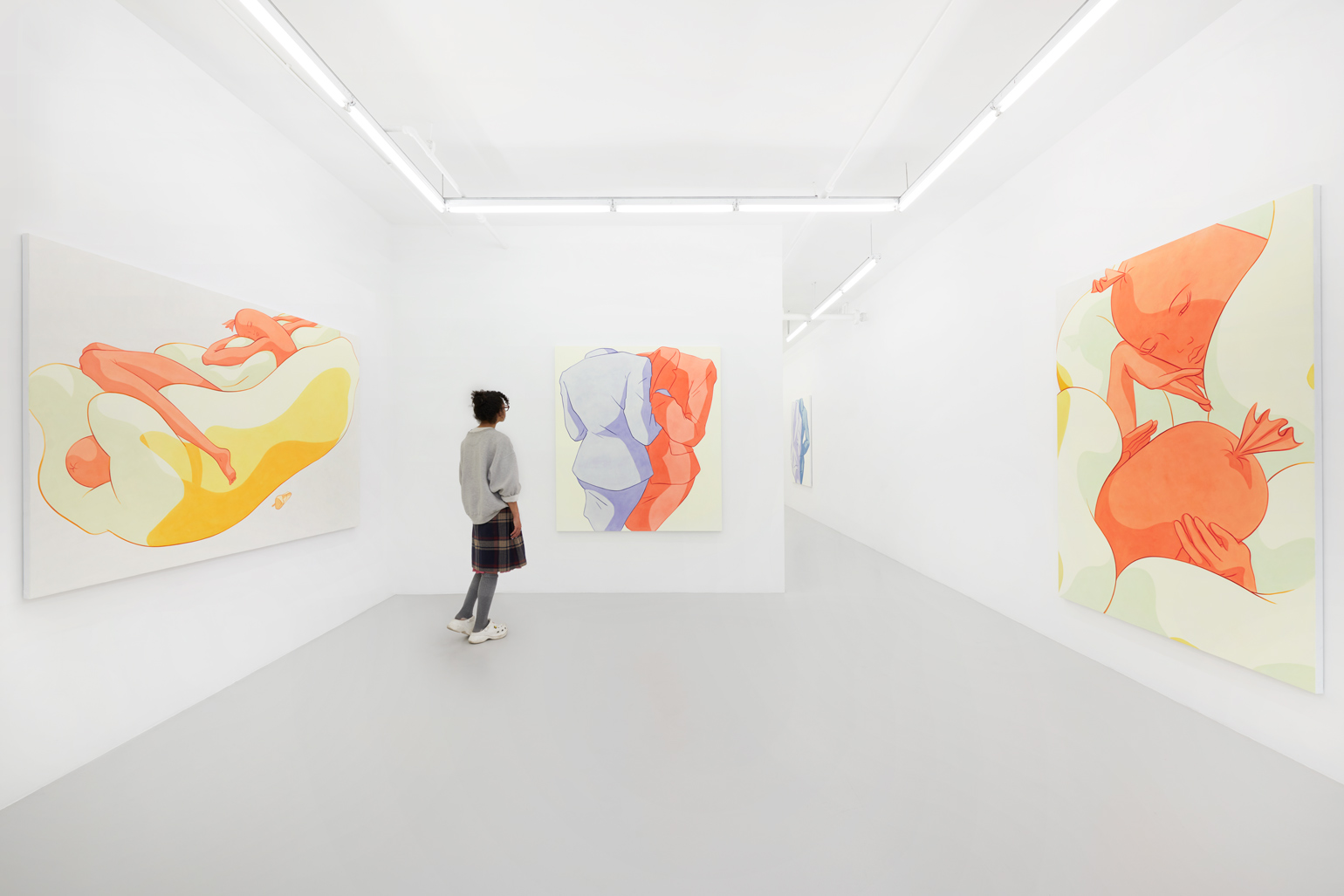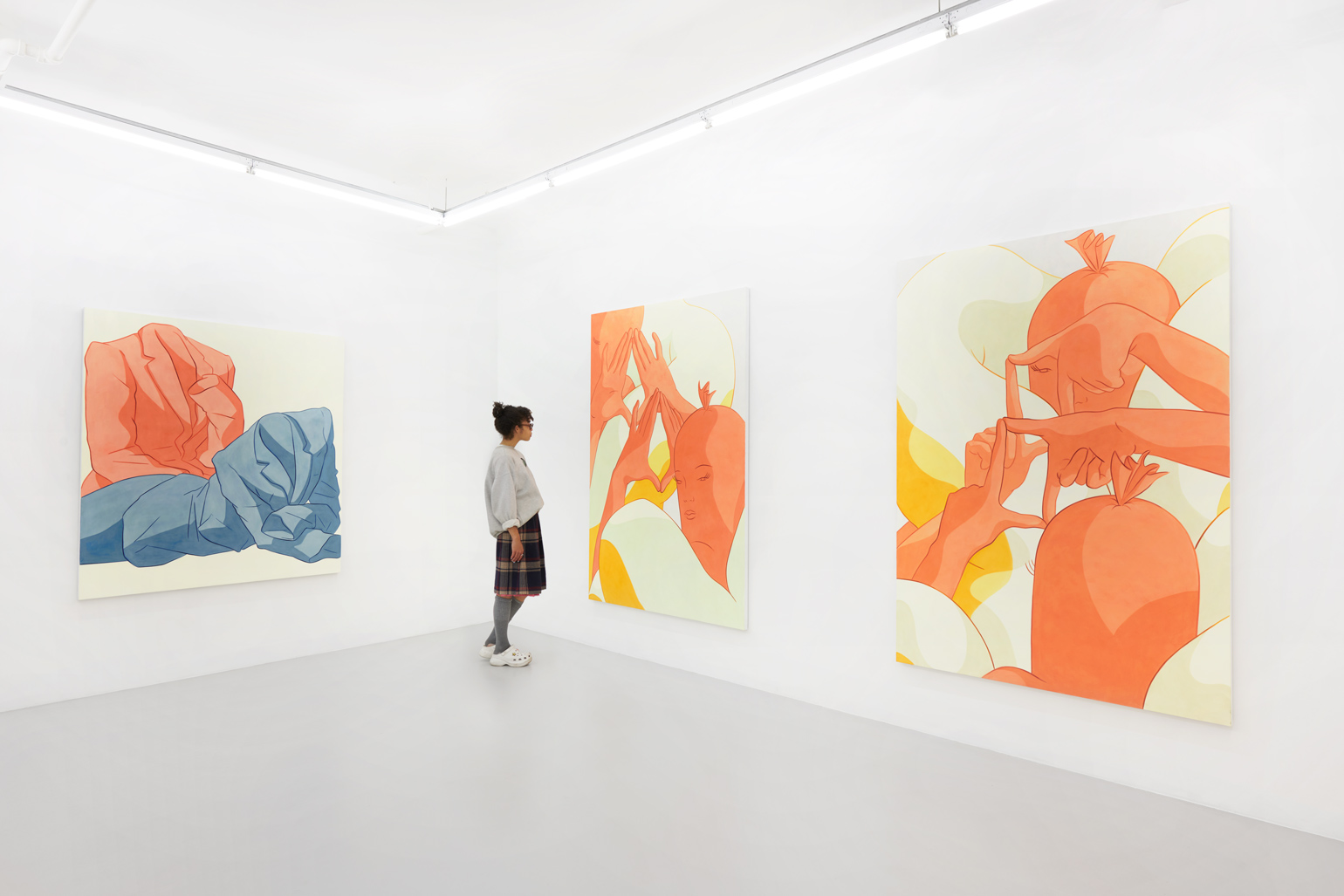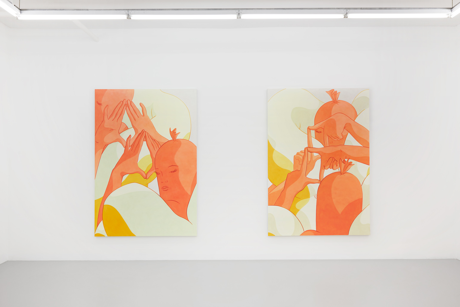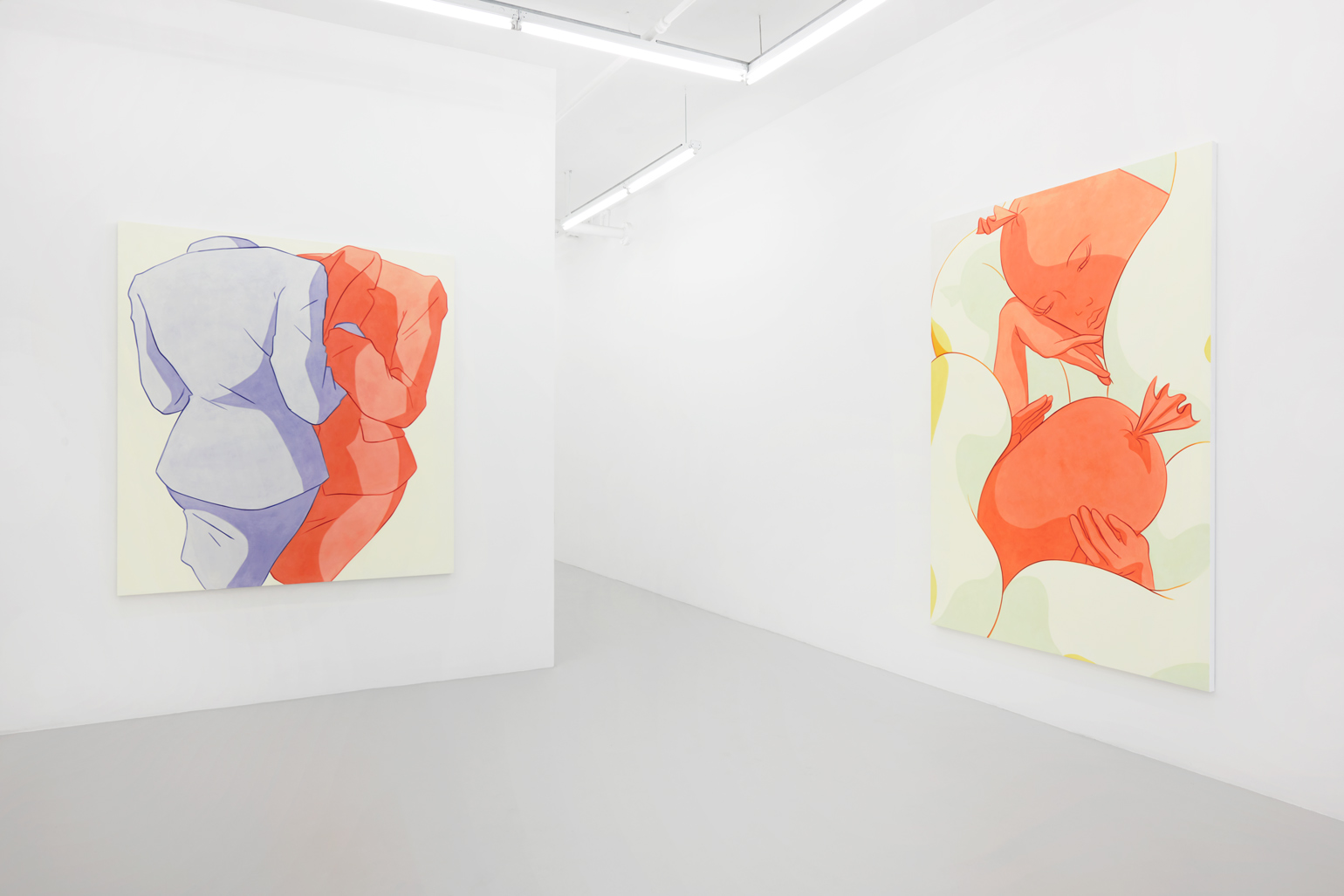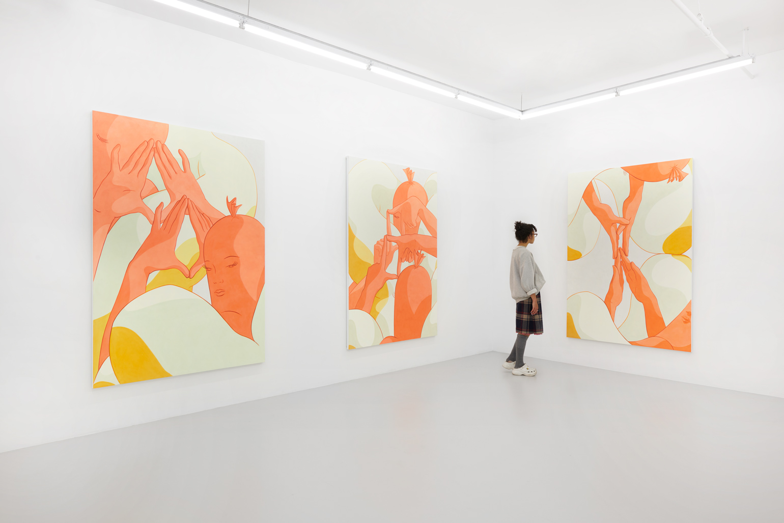 Ivy Haldeman, Twice Colossus, Four Hands Touch, Palms Apart, Buns Press Slightly, 2021. Acrylic on canvas, 83 1/2 × 57 1/2 inches / 212 × 146 cm
