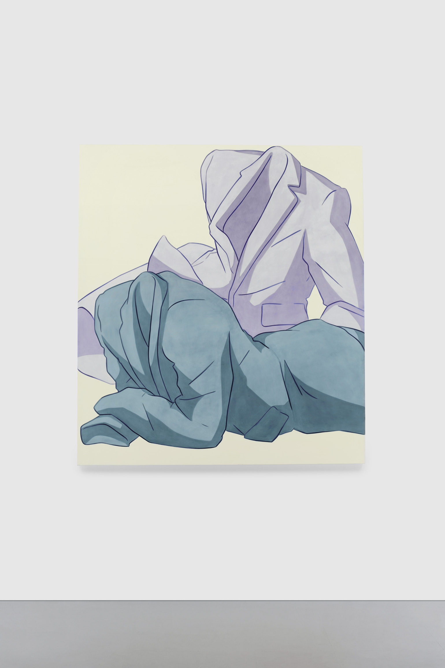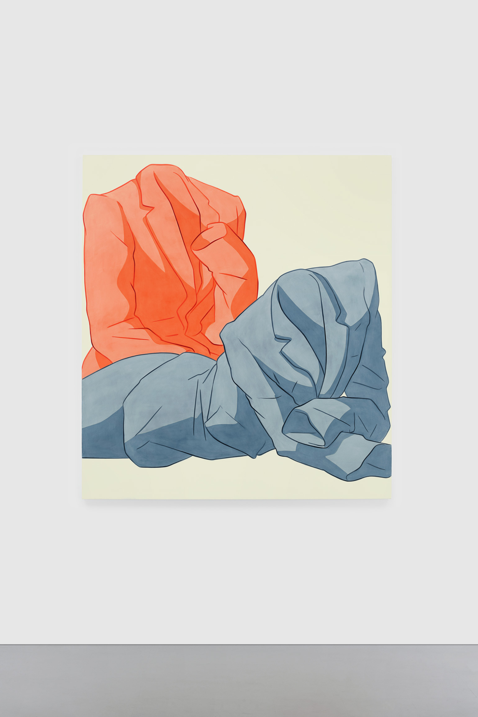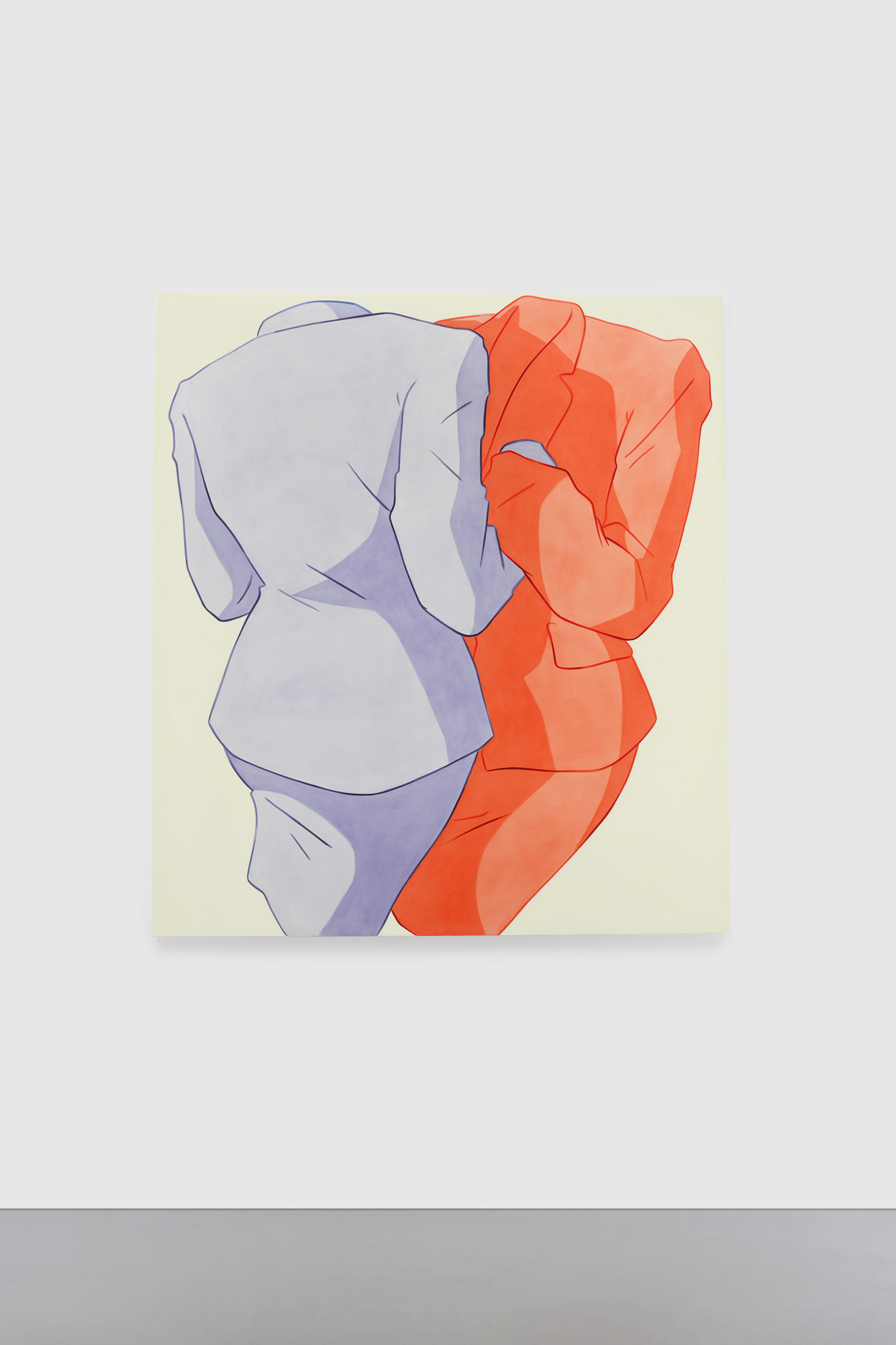Ivy Haldeman, Two Suits, Face to Face, Cuff Grasped (Smalt, Red), 2021. Acrylic on canvas, 67 × 60 inches / 170 × 152 cm