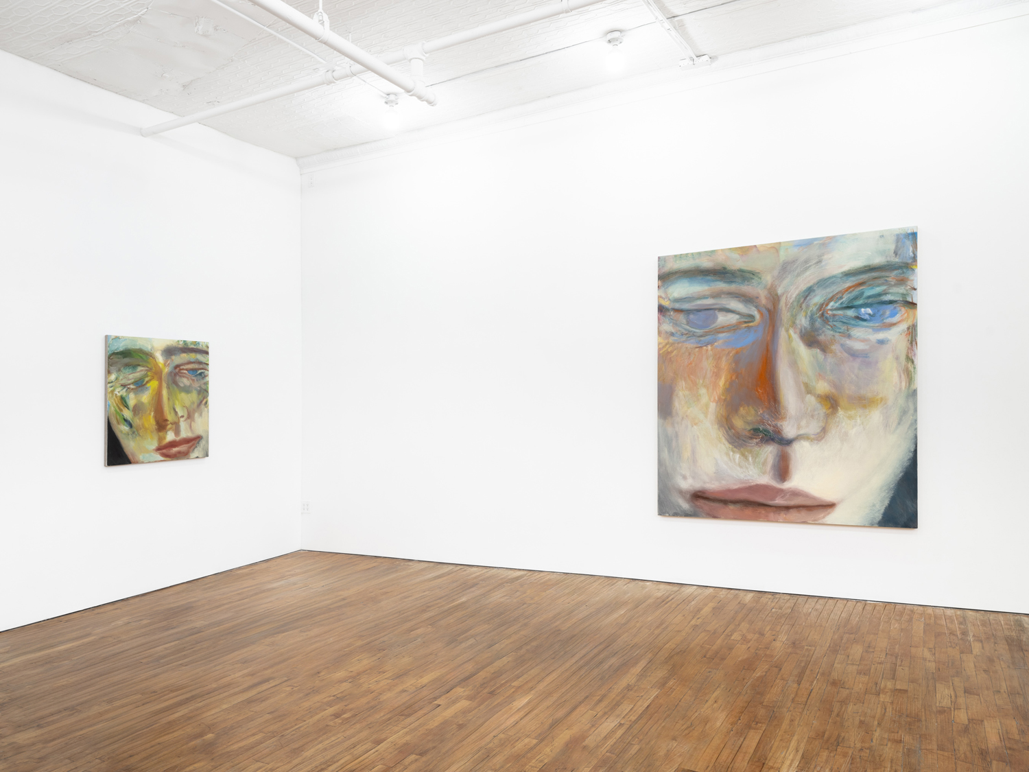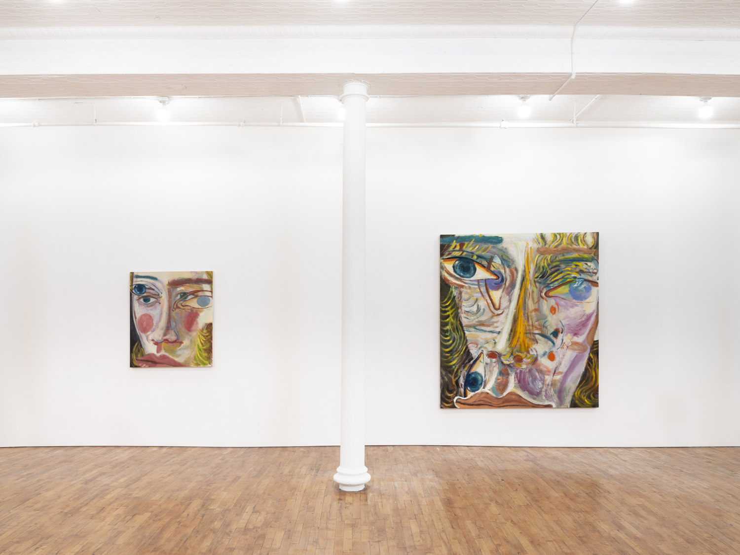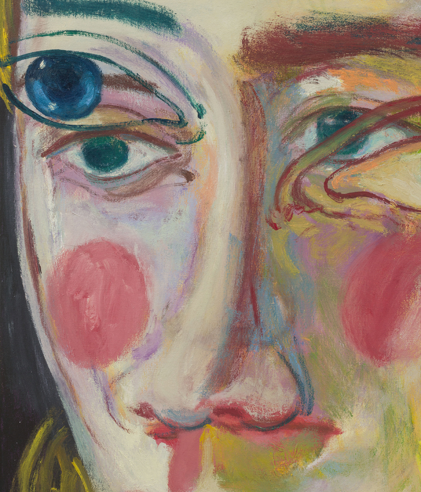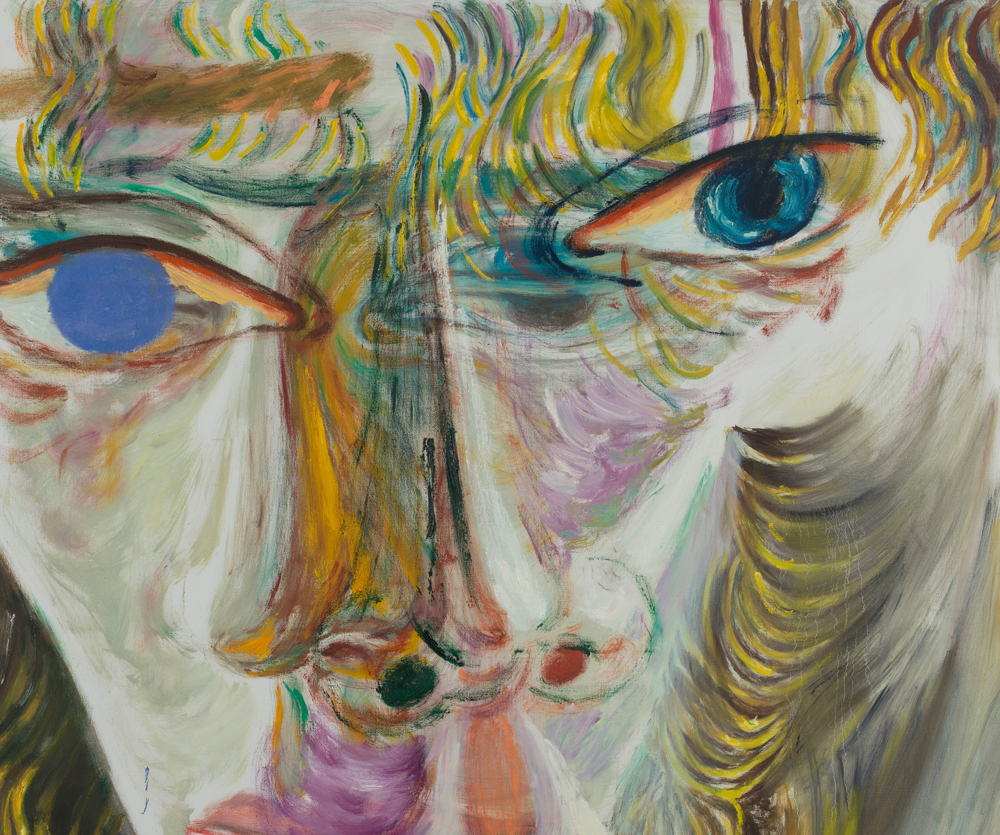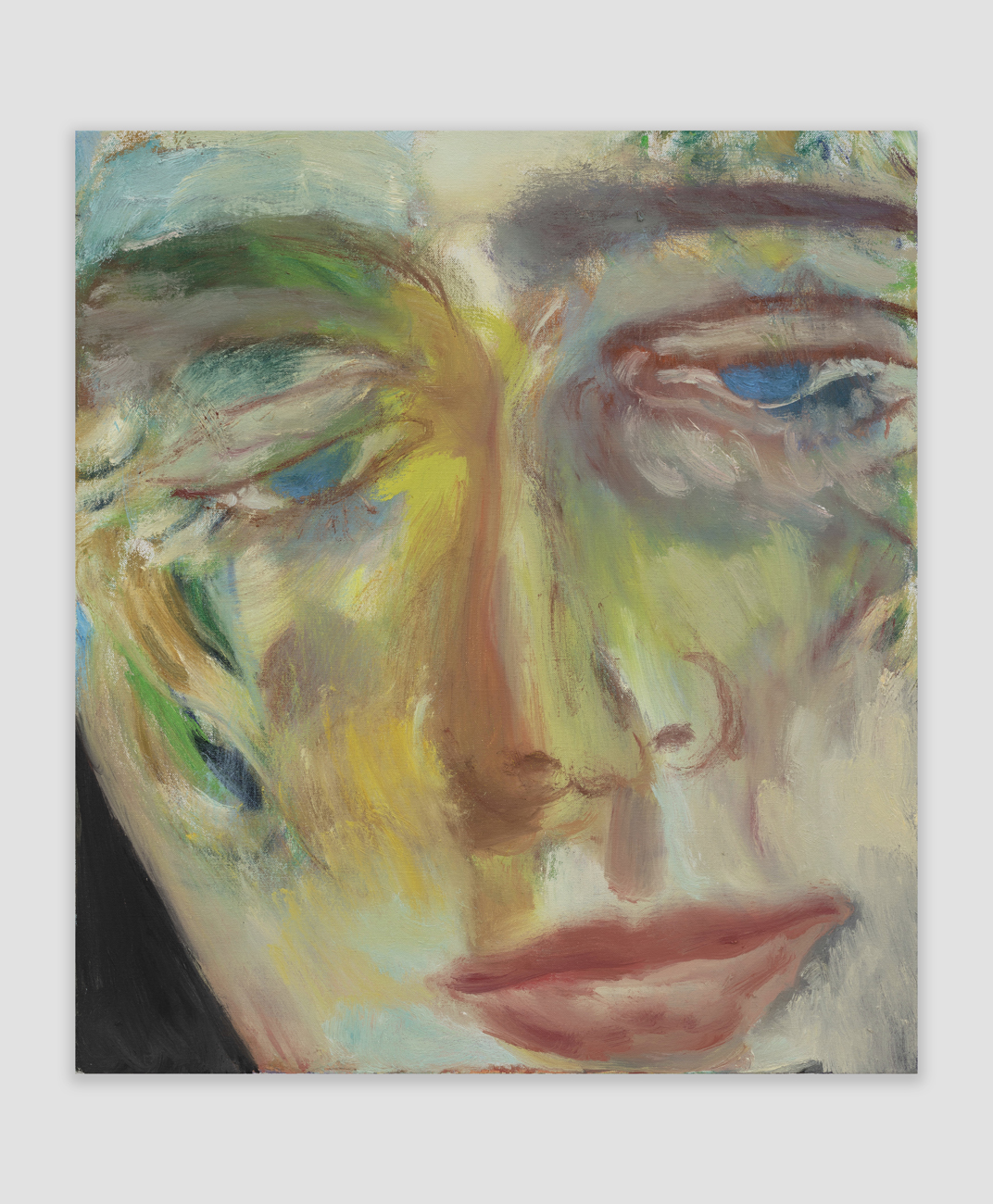 In his work, Jiang elucidates how self-expression through portraiture can mirror the transhistorical and transcultural lineage of artistic tradition, intertwining influences ranging from Chinese calligraphy and Greco-Roman mythologies to playful sketches by his daughter and the abstract expressionist tradition. His perpetual exploration and pursuit of the unconscious mind illustrates an existential search into human existence, struggle, love, and mortality, as well as the relational dynamics between self and other, and subject and object. Moving away from his inherent identity, Jiang intentionally depicts figures that are decidedly not him, typically characterized by curly blond and brown hair, heterochromatic eyes, and facial features that amalgamate elements from diverse ethnicities. Through this, the artist scrutinizes others—sometimes confrontationally—places them in spaces to be observed, and repositions himself by accentuating his own otherness.