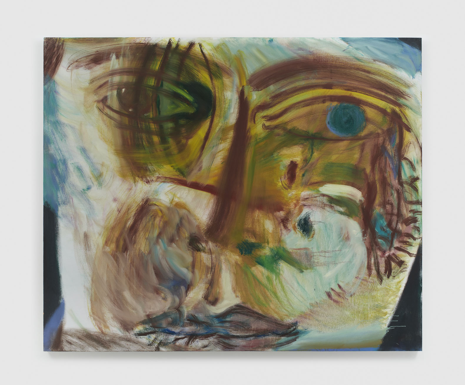 You are the subject. You are at the center of attention. You are at the center of the discourse. You are on the opposite side of us. You are on the backside of us. You are accompanied. You are surrounded. You are being watched. There is no plot here, only floating faces, pairs of eyes. Clumps of color intertwine, slowly sinking and smudging in the murky water. Almost drowning expressions drift along, flashing and flickering. In the obscurity of the atmosphere, you are the only object being dealt with. You have some indisputable truth, something that cannot be changed: you have blue eyes, green eyes, cyan eyes, brown eyes.