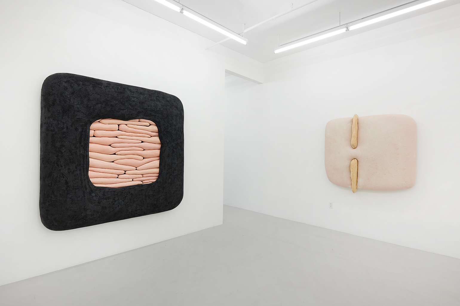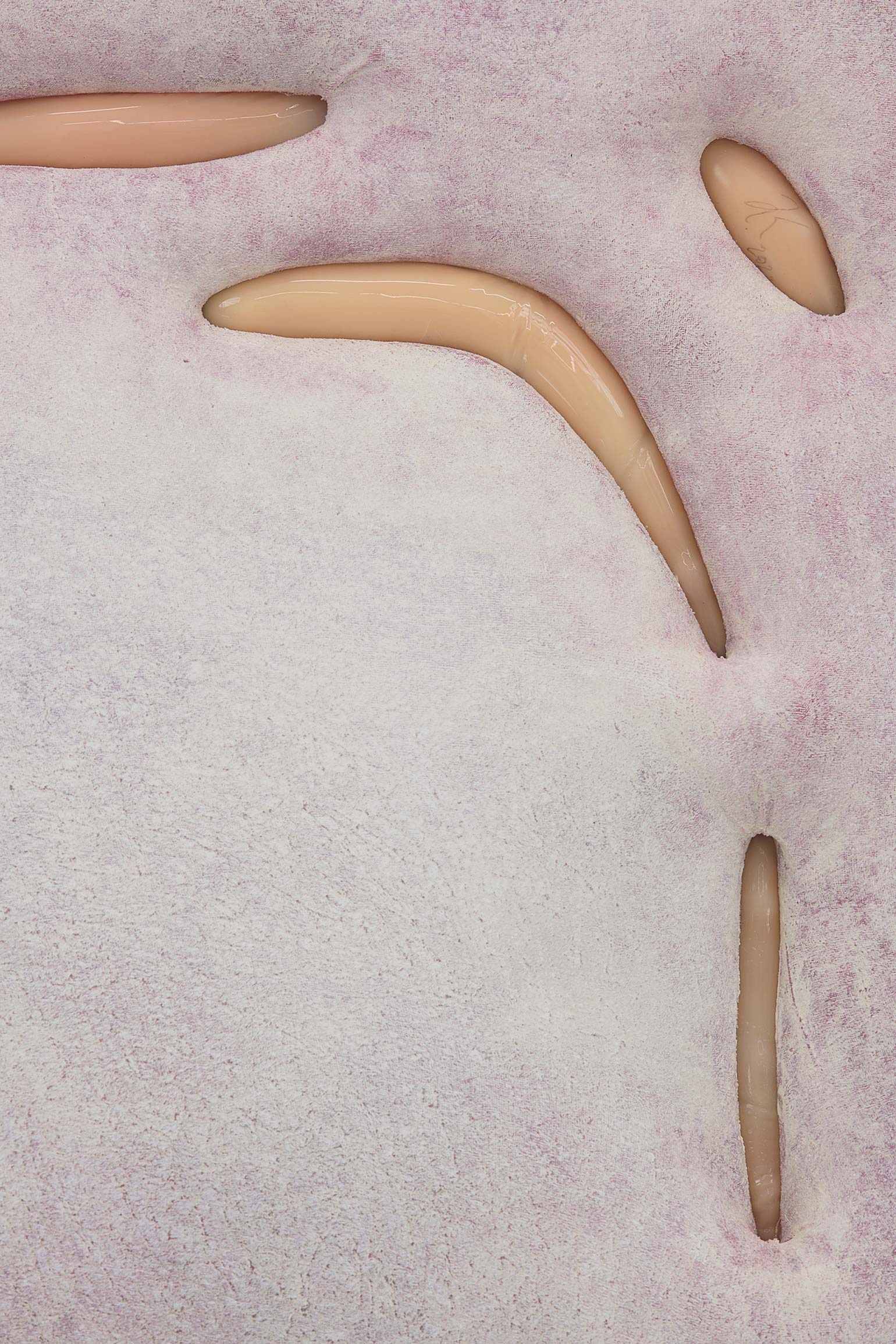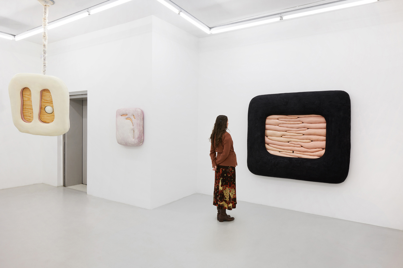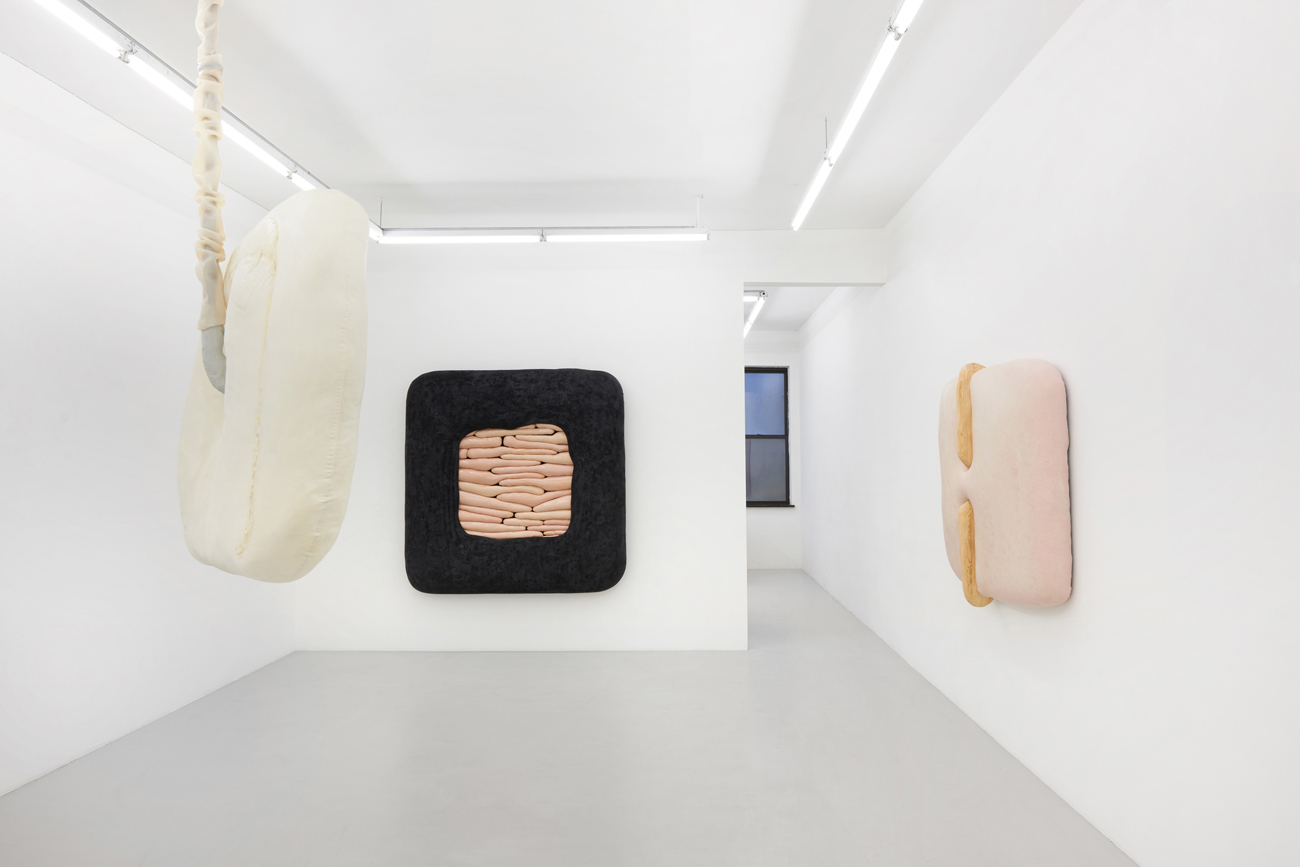 Humans, we append annotations to the haunting refrains of our inheritance. In his first U.S. solo exhibition, the Düssseldorf-based artist Jens Kothe braids together the epigenetic influence of manifold 20th-century sculptural argots. One might number in this clade Robert Gober’s bodily traces as palimpsests of memory, Heidi Bucher’s shape-shifting milky architectonic molds, the errant threat of self-dissection that emanates from the spectre of early Tishan Hsu, Alina Szapocznikow’s erogenous metastasis of the domesticated self, or the biomorphic ouroboros of Frederick Kiesler’s “endless house” — a mutated lineage extruded into the meaty heuristic of Kothe’s speculative morphobiology and immunological ergonomics.
