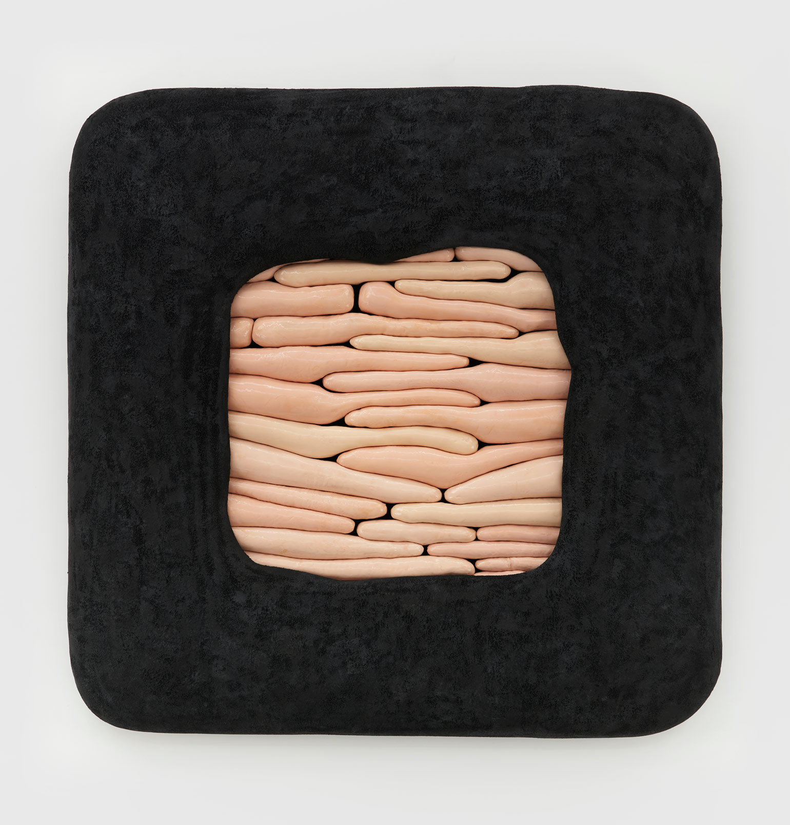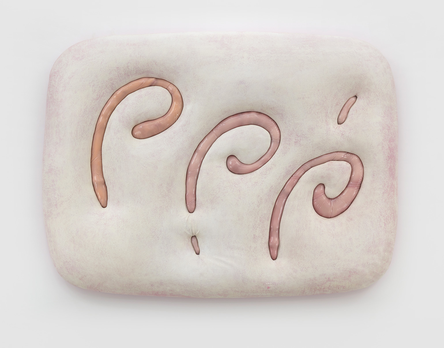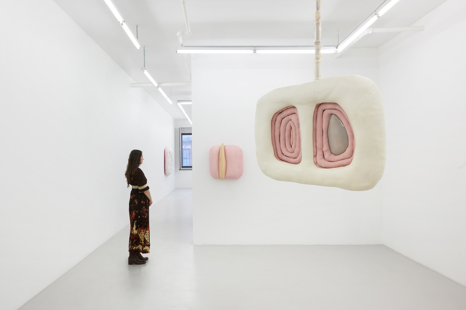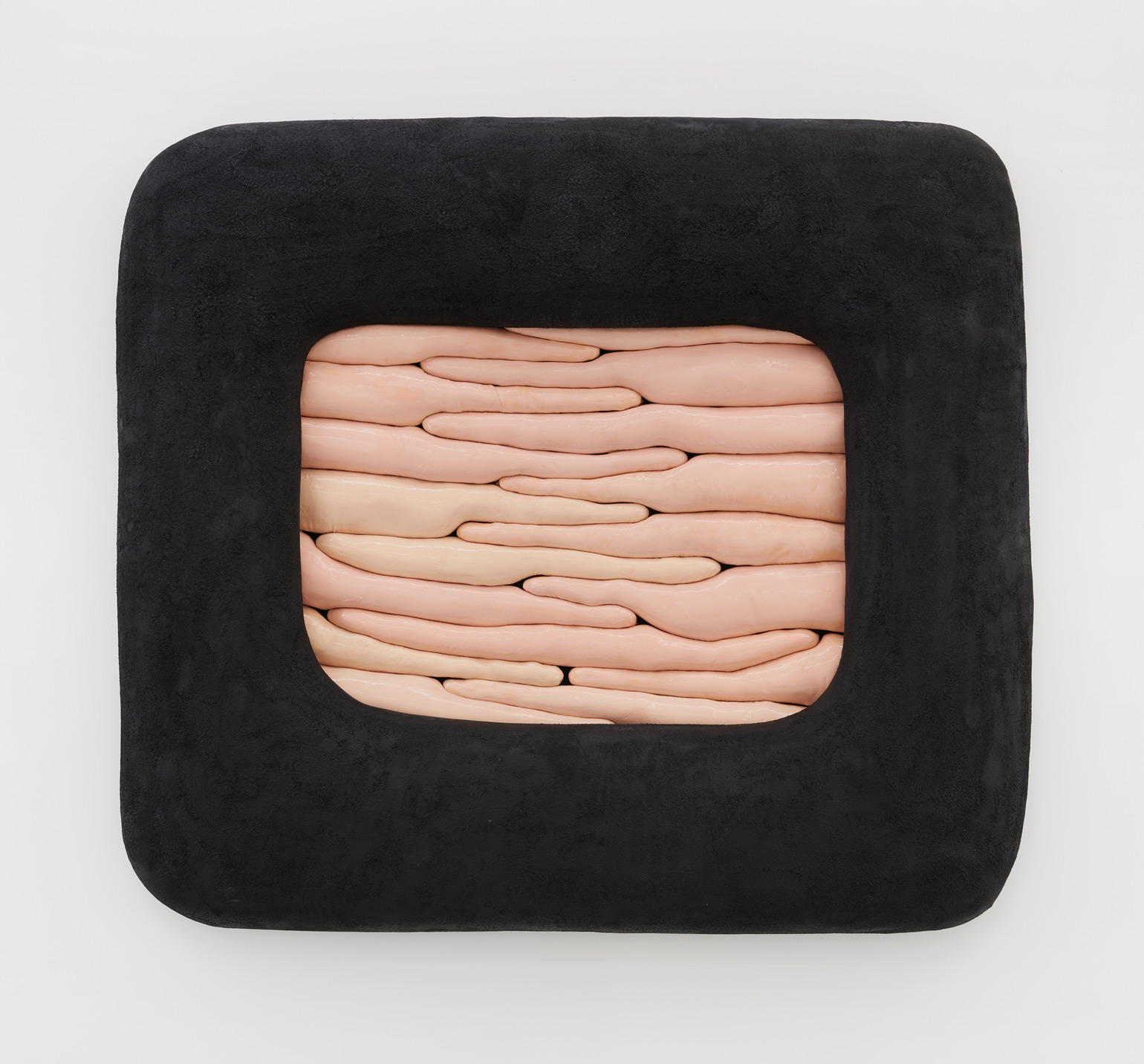Humans, we append annotations to the haunting refrains of our inheritance. In his first U.S. solo exhibition, the Düssseldorf-based artist Jens Kothe braids together the epigenetic influence of manifold 20th-century sculptural argots. One might number in this clade Robert Gober’s bodily traces as palimpsests of memory, Heidi Bucher’s shape-shifting milky architectonic molds, the errant threat of self-dissection that emanates from the spectre of early Tishan Hsu, Alina Szapocznikow’s erogenous metastasis of the domesticated self, or the biomorphic ouroboros of Frederick Kiesler’s “endless house” — a mutated lineage extruded into the meaty heuristic of Kothe’s speculative morphobiology and immunological ergonomics.