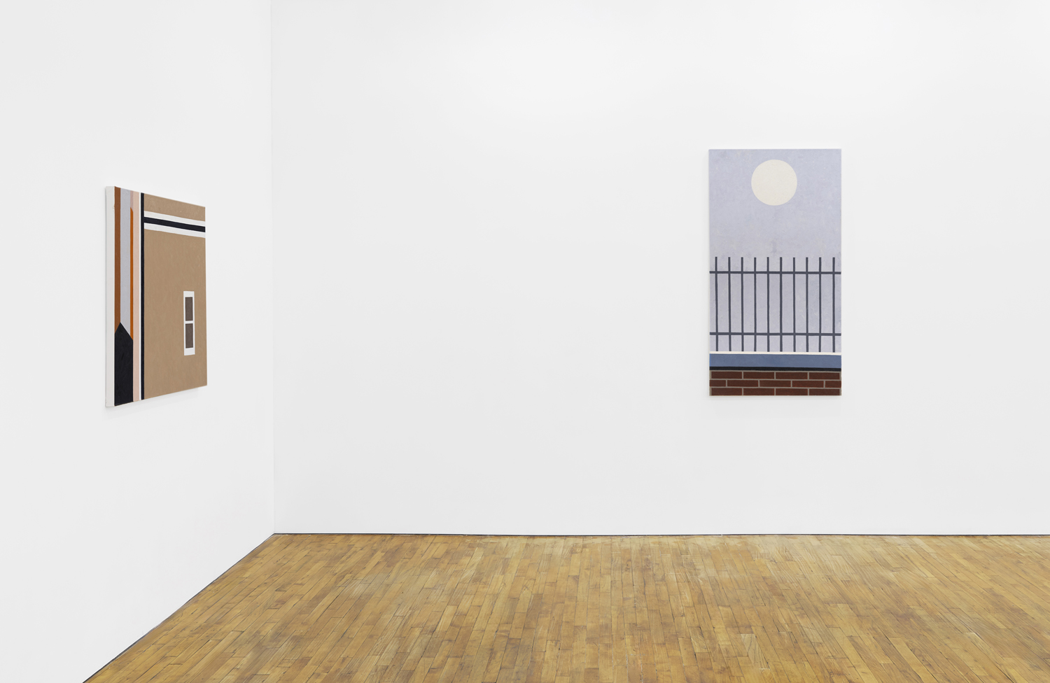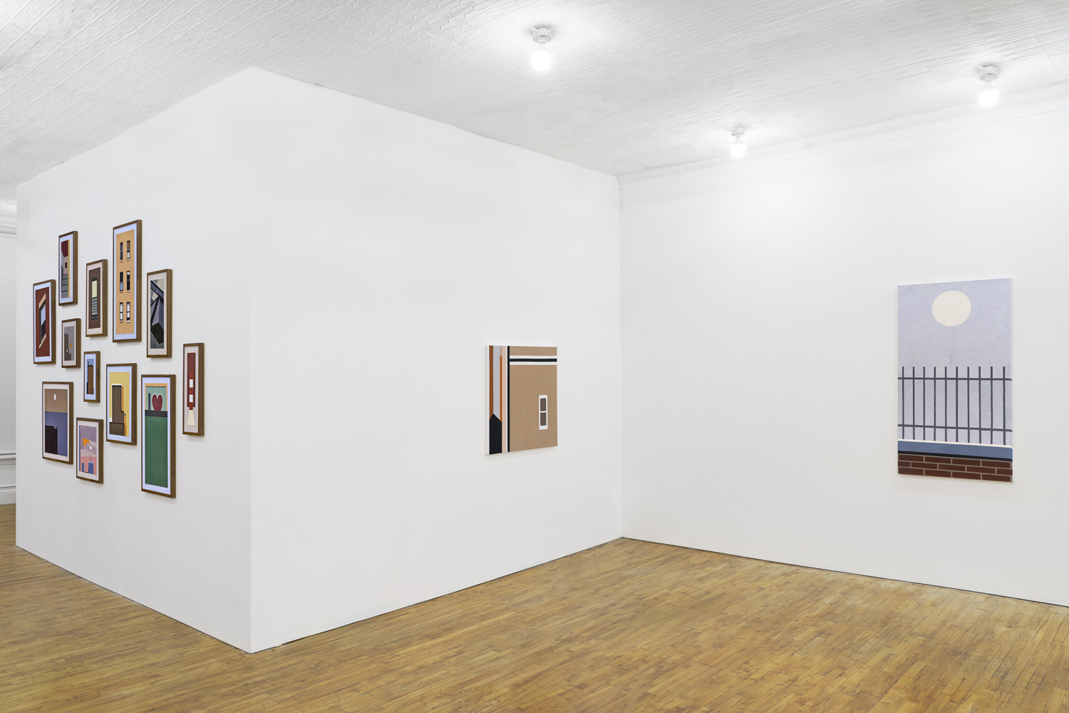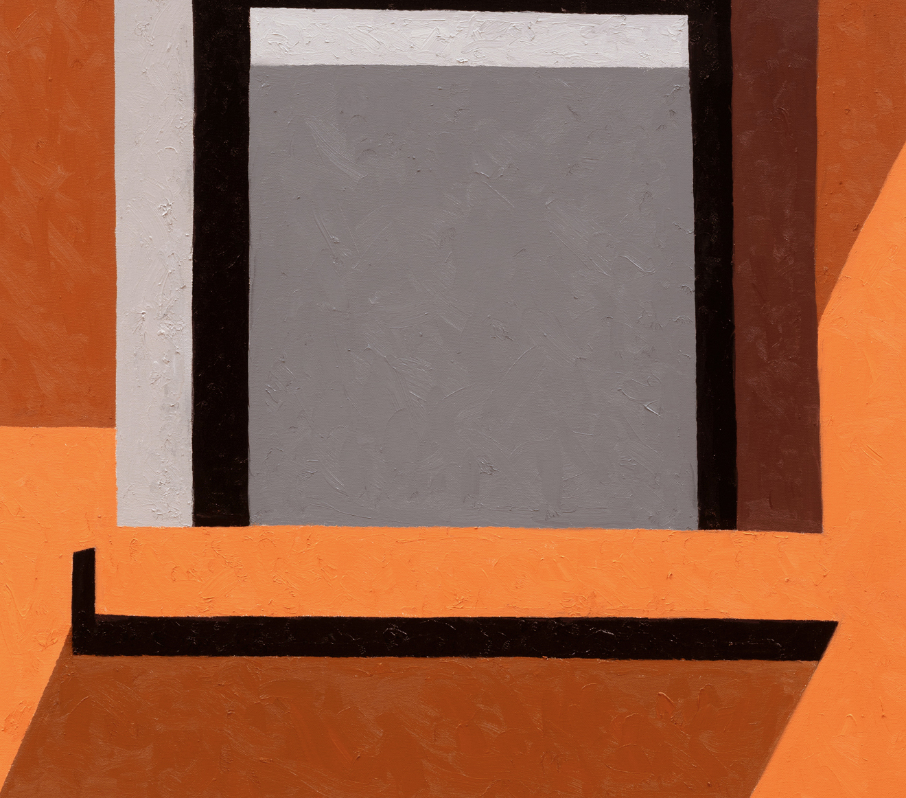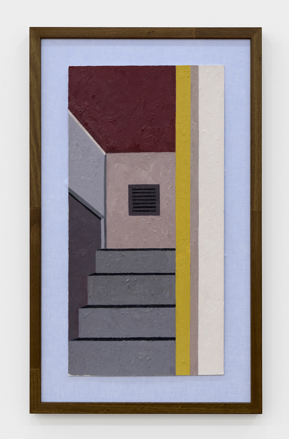 Manhattan Valley, titled after the neighborhood Winter now calls home, centers around a body of work the artist began producing in 2017. Inspired in part by Romare Bearden’s late career propensity for reduction, Winter has cast aside the mimetic virtuosity that often characterized his earlier work in favor of documenting the “cubistic” world we inhabit today, detailing the interactions between architectural space often taken for granted. Windows and walls, oblique angles, odd intersections, instances of incongruity gleaned from the urban landscape. One of the earliest works on view, P.S.93, 2018, elucidates this play of forms, paring an image of a Brooklyn school’s parking lot down to its essential representational components, to broad and dappled planes of color, remarkably brought together in a deceptively simple composition. As Winter’s biographer, the art historian Susie Kalil, has written, such works, seen as abstract patchworks, “are at once in motion and carefully puzzled together, seemingly both topographical and tapestry-like, with the exquisite touch of every painstaking brushstroke.”