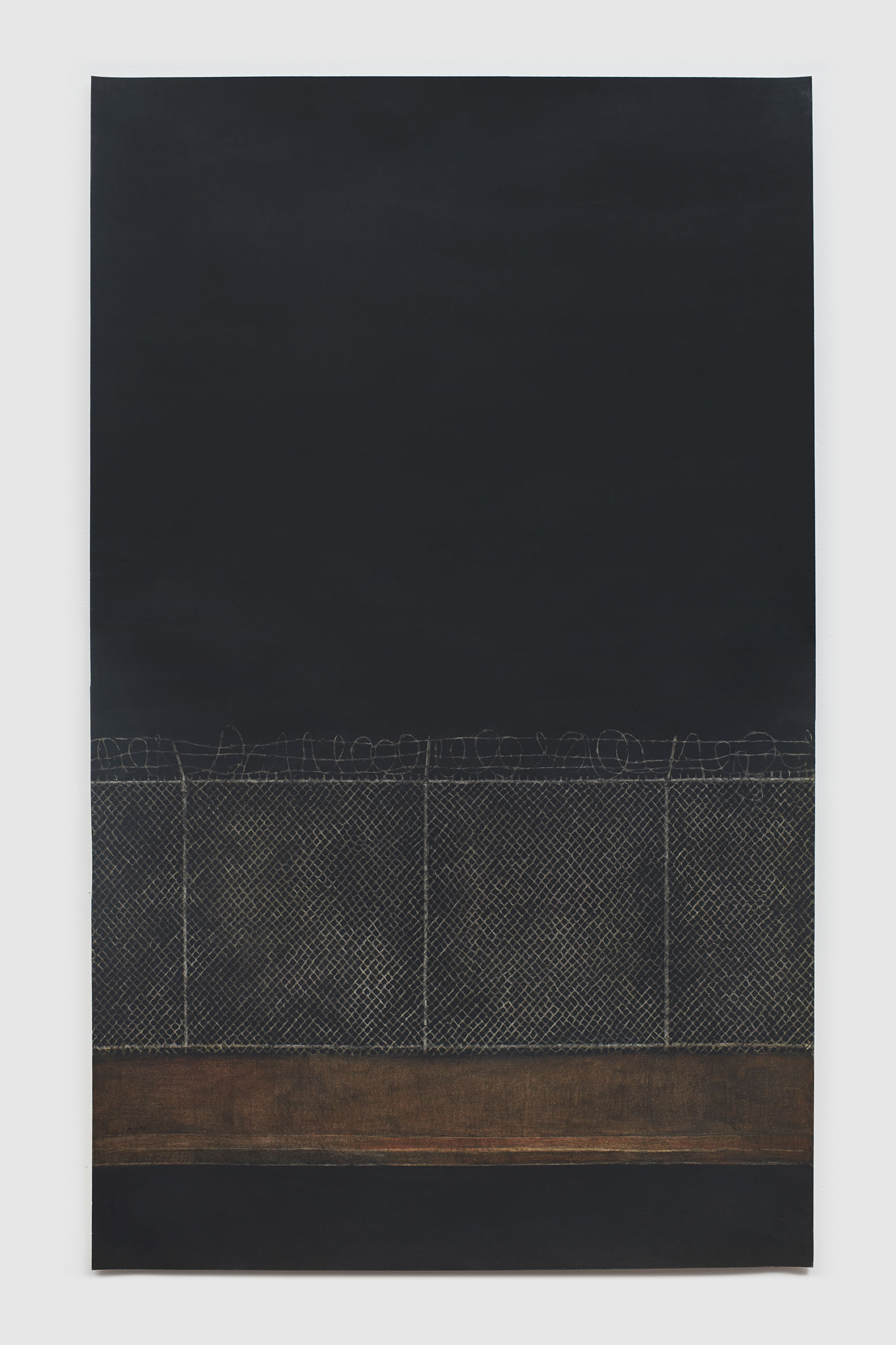 Christopher Culver, Large Fence, 2021. Charcoal and pastel on paper, 42 × 24 inches / 106,7 × 61 cm