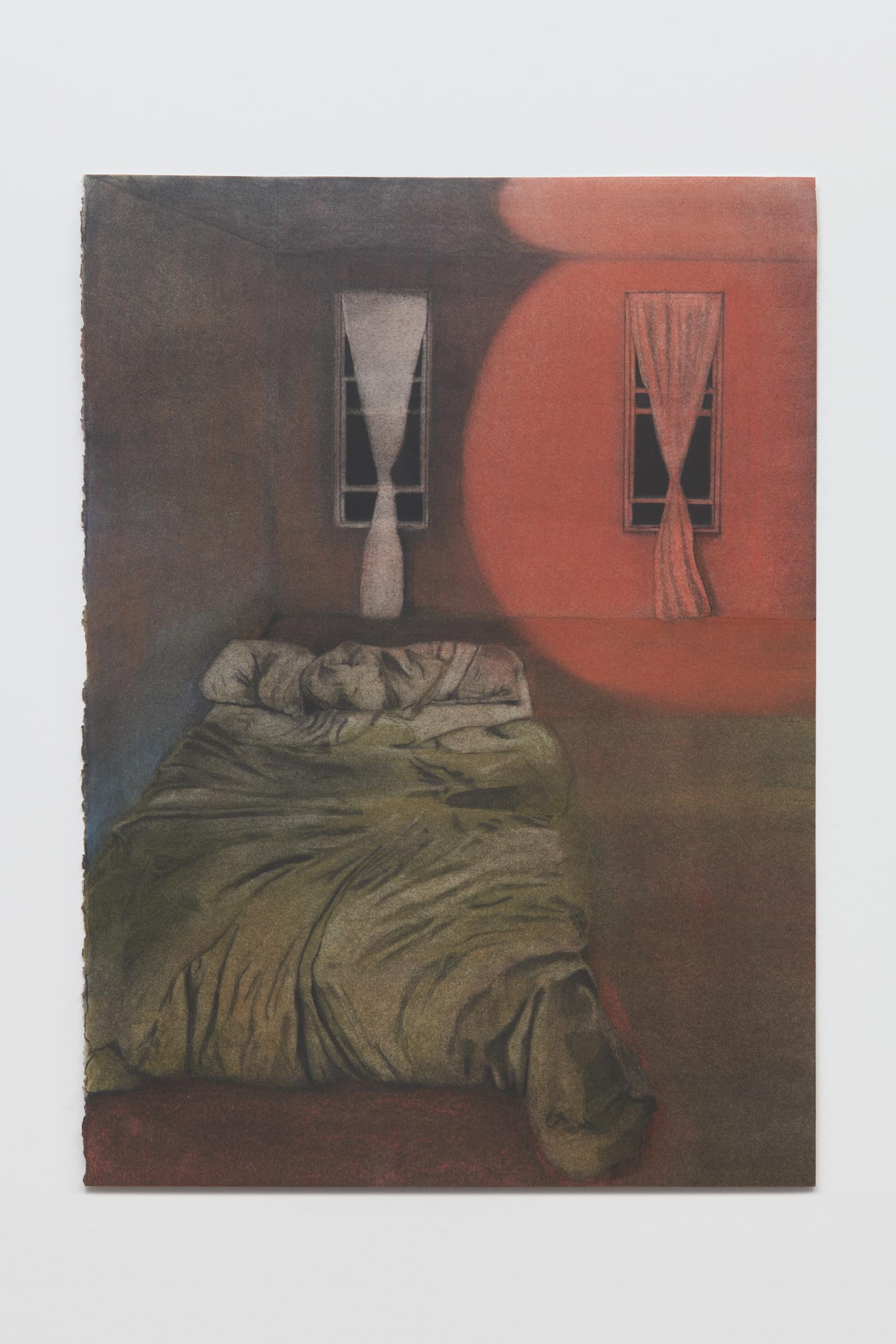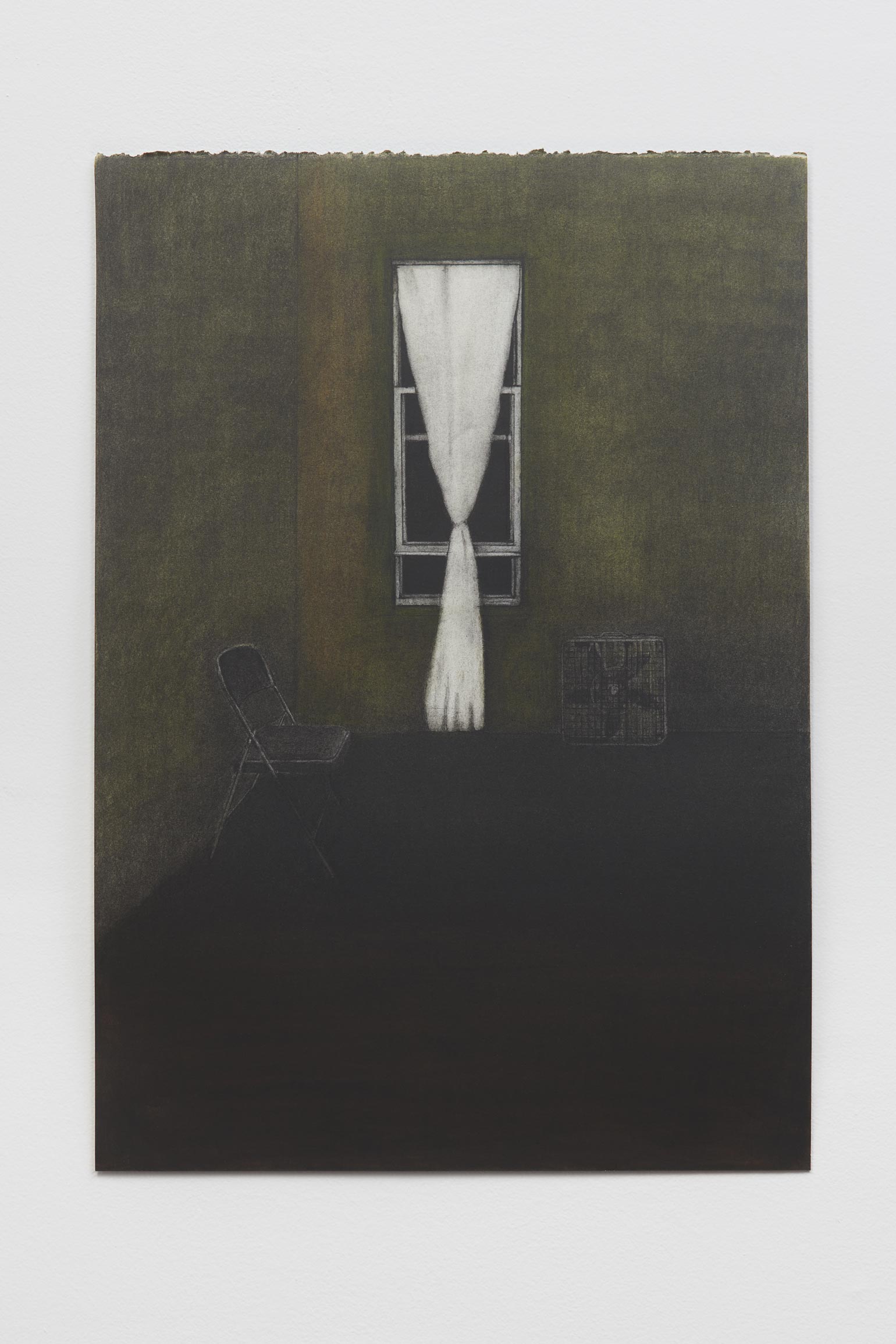Christopher Culver, Green Room, 2021. Charcoal and pastel on paper, 20 × 14 inches / 50,8 × 35,6 cm