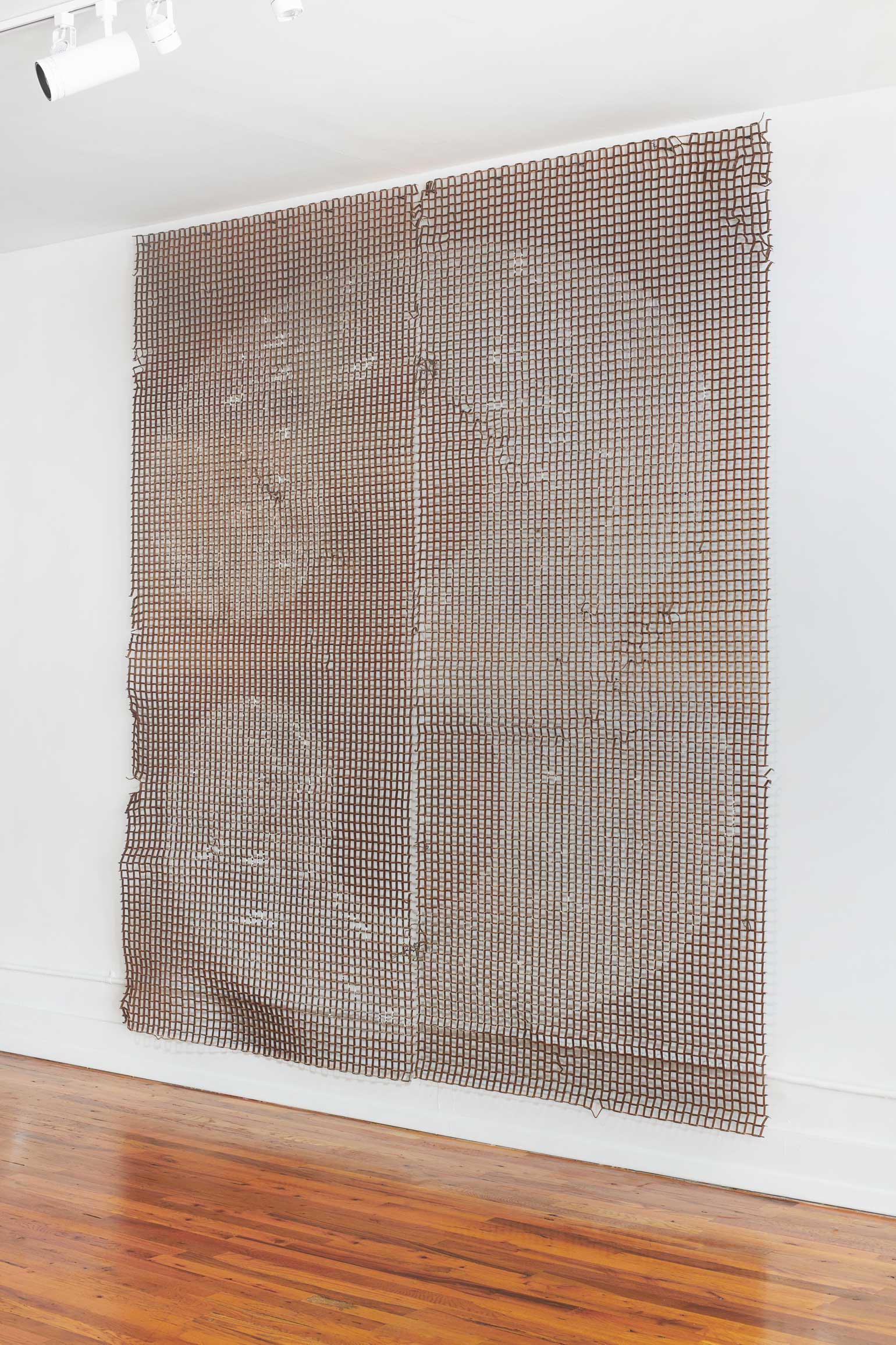 Holt Quentel, Steel Grate #3, 1988. Latex, steel grate, 104 × 94 inches / 264,2 × 238,8 cm