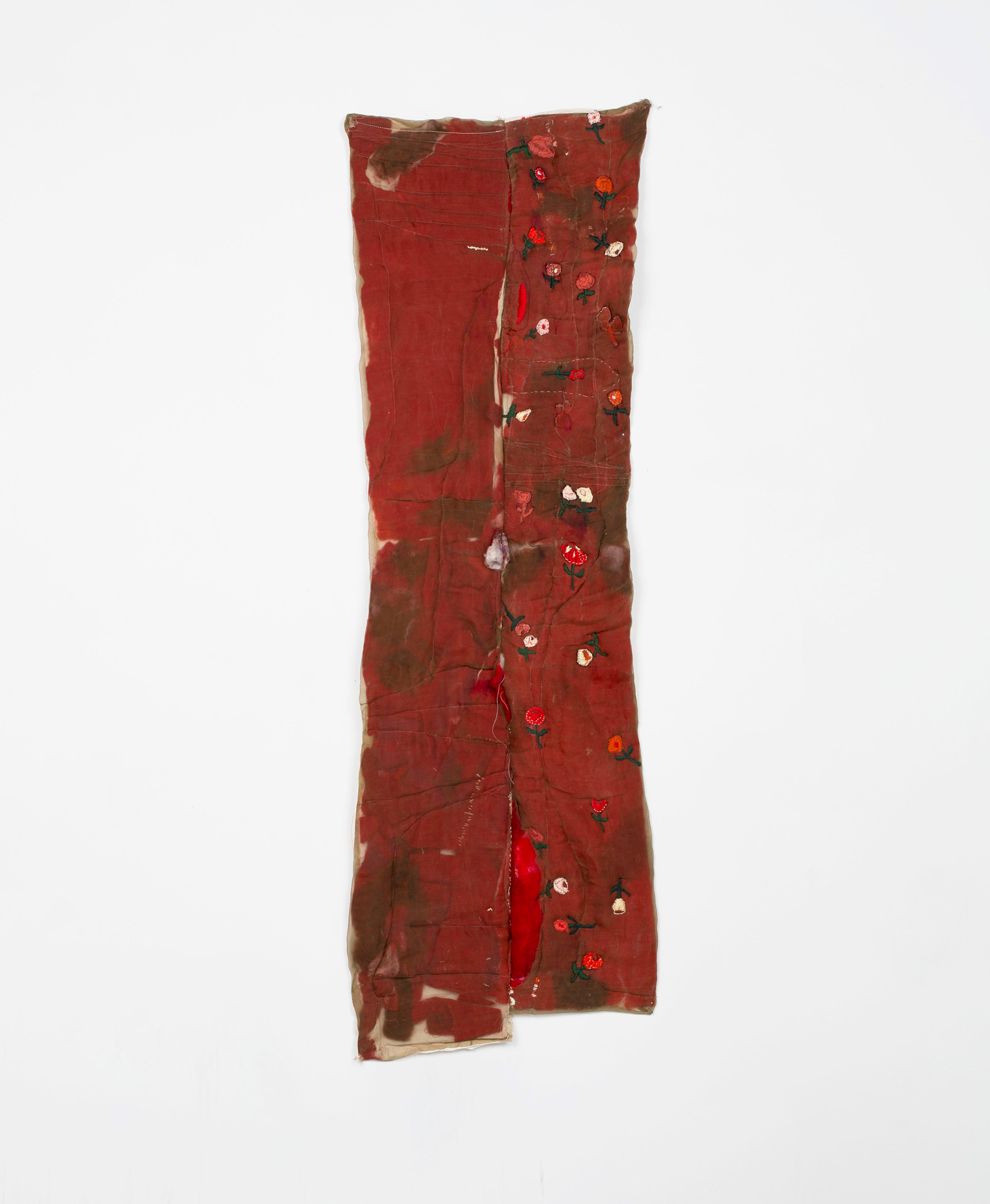 Justin Chance, Rose for an Opposing Wall 1, 2015-6. Quilted wet and needle felted wool, silk, cotton, dye, 48 × 27 inches / 121,9 × 68,6 cm