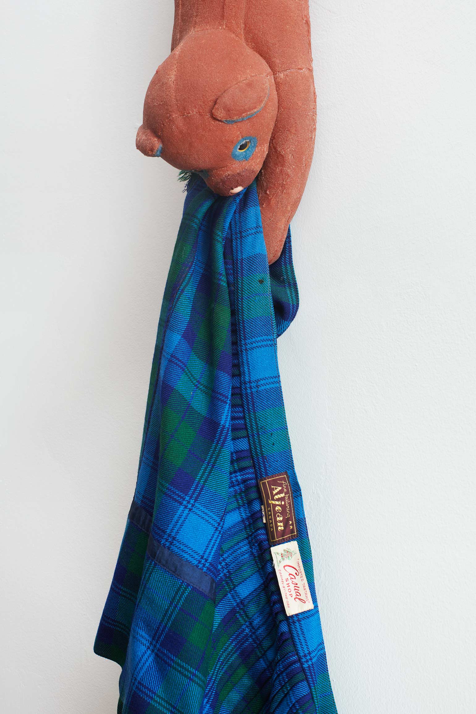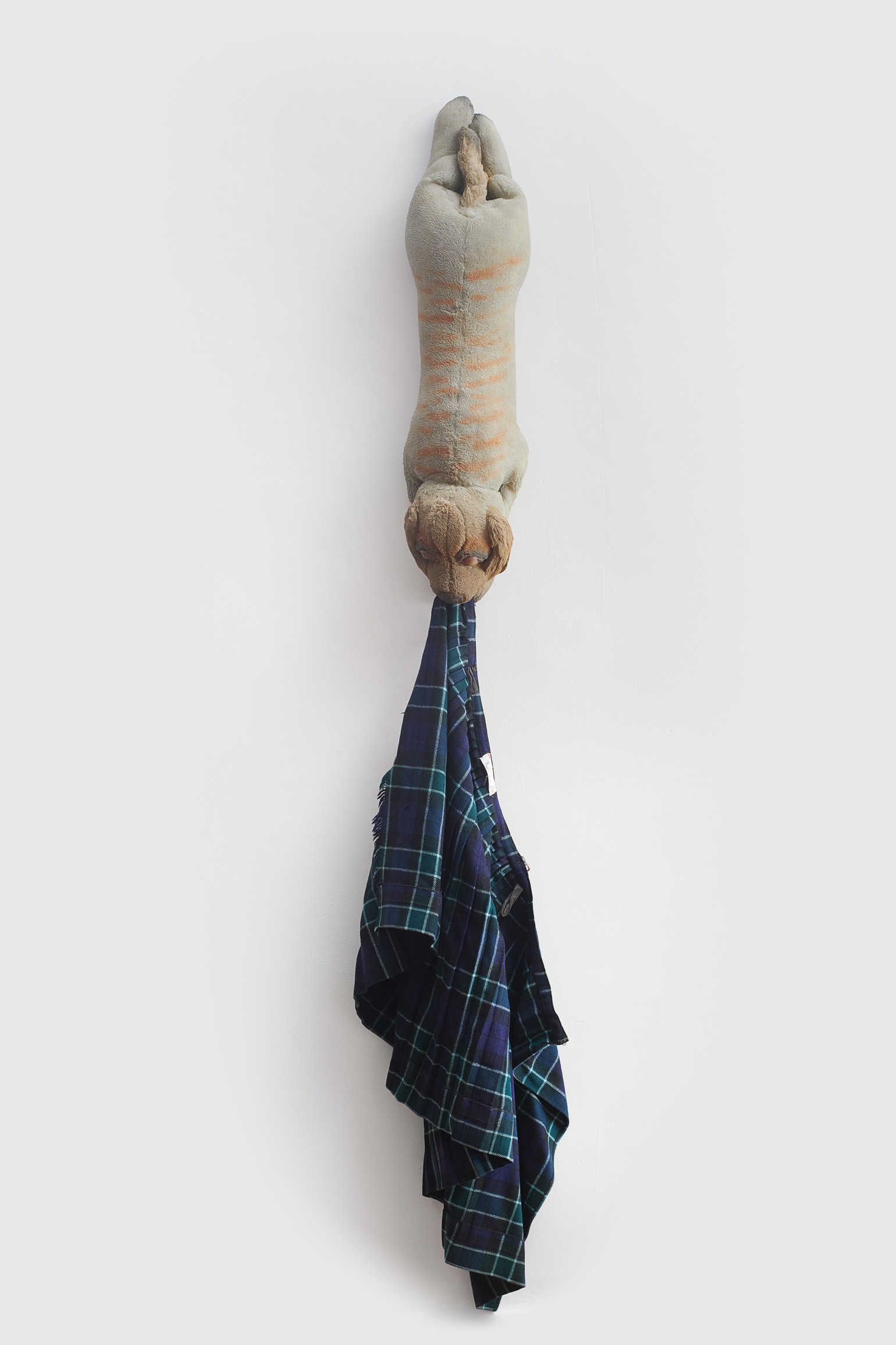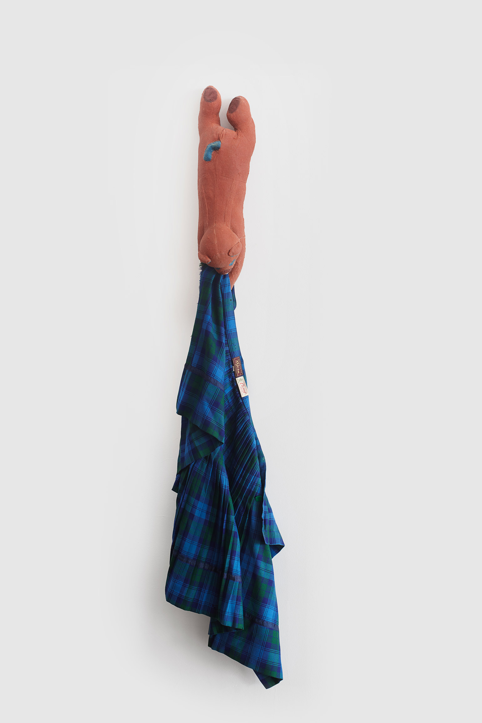Liz Magor, Aljean, 2019. Silicone rubber, textiles, twine, 66 × 8 inches / 167,6 × 20,3 cm