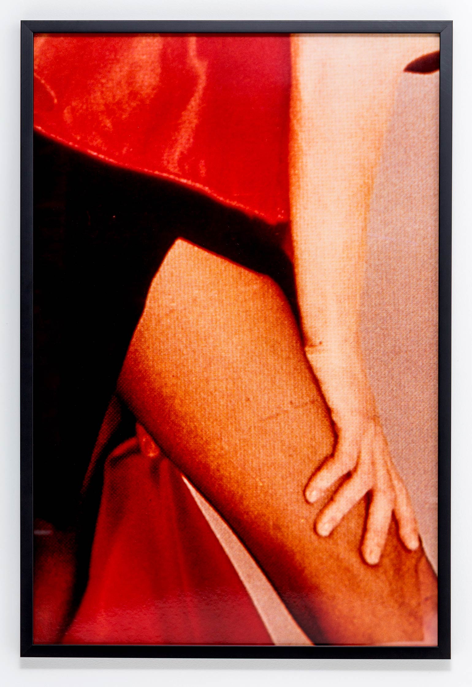 Though Alexander’s work touches on incredibly thorny subject matter, it also calls on a nuanced sense of humor. Her work “Sleep” (1983), a reference to Michelangelo’s sculpture “The Night,” features two women posing as if they’re sleeping, though in reality the models appear again heavily made-up and politely orgasmic—anything but actually unconscious. Sleep, after all, is the only living state in which we are unable to perform gender and class codes, temporarily suspending this performance along with bodily awareness. Alexander’s signature black matting again prompts the viewer to consider their physicality in relation to the absurd expectation of being both sexually available and asleep. While the media has rapidly evolved in the decades since this series was created, Alexander’s fundamental queries remain extraordinarily relevant: how am I reflected in the media, and how does the media reflect back upon me?