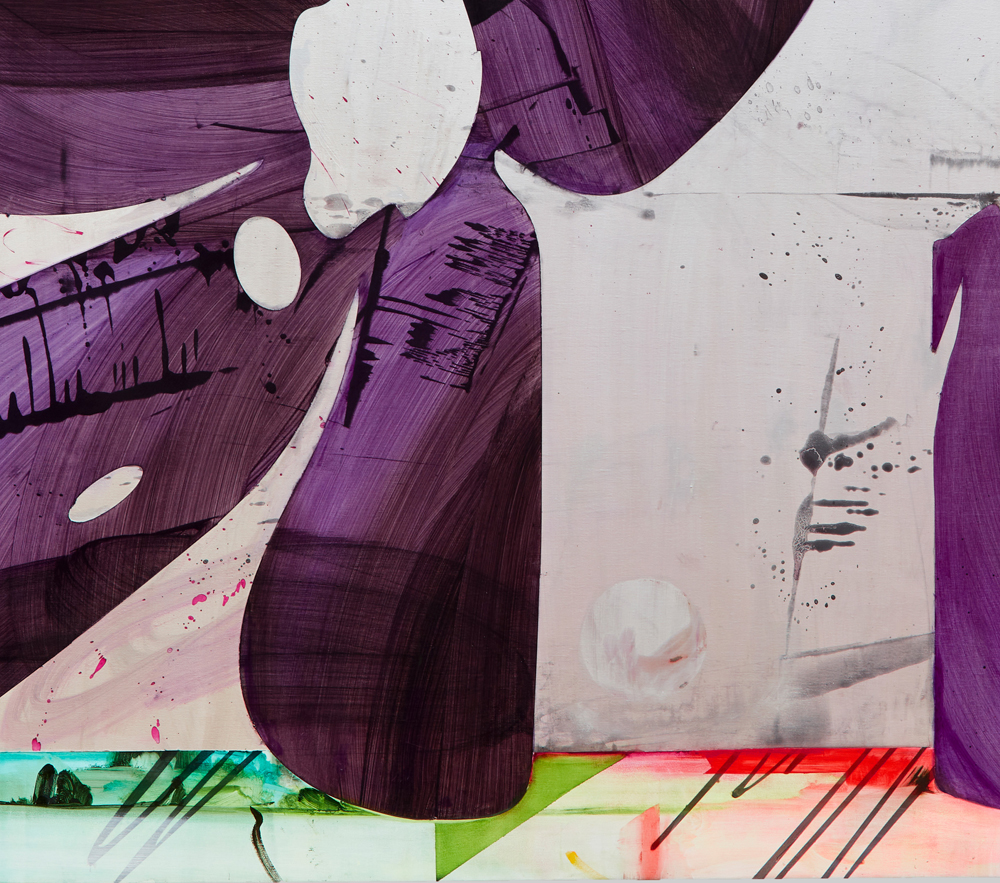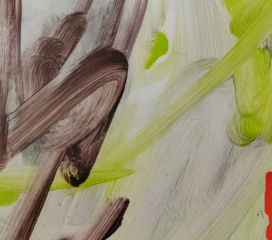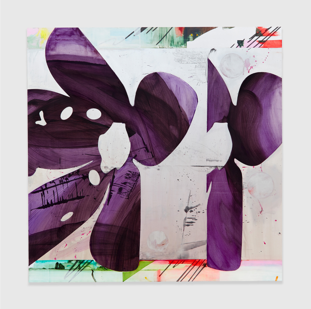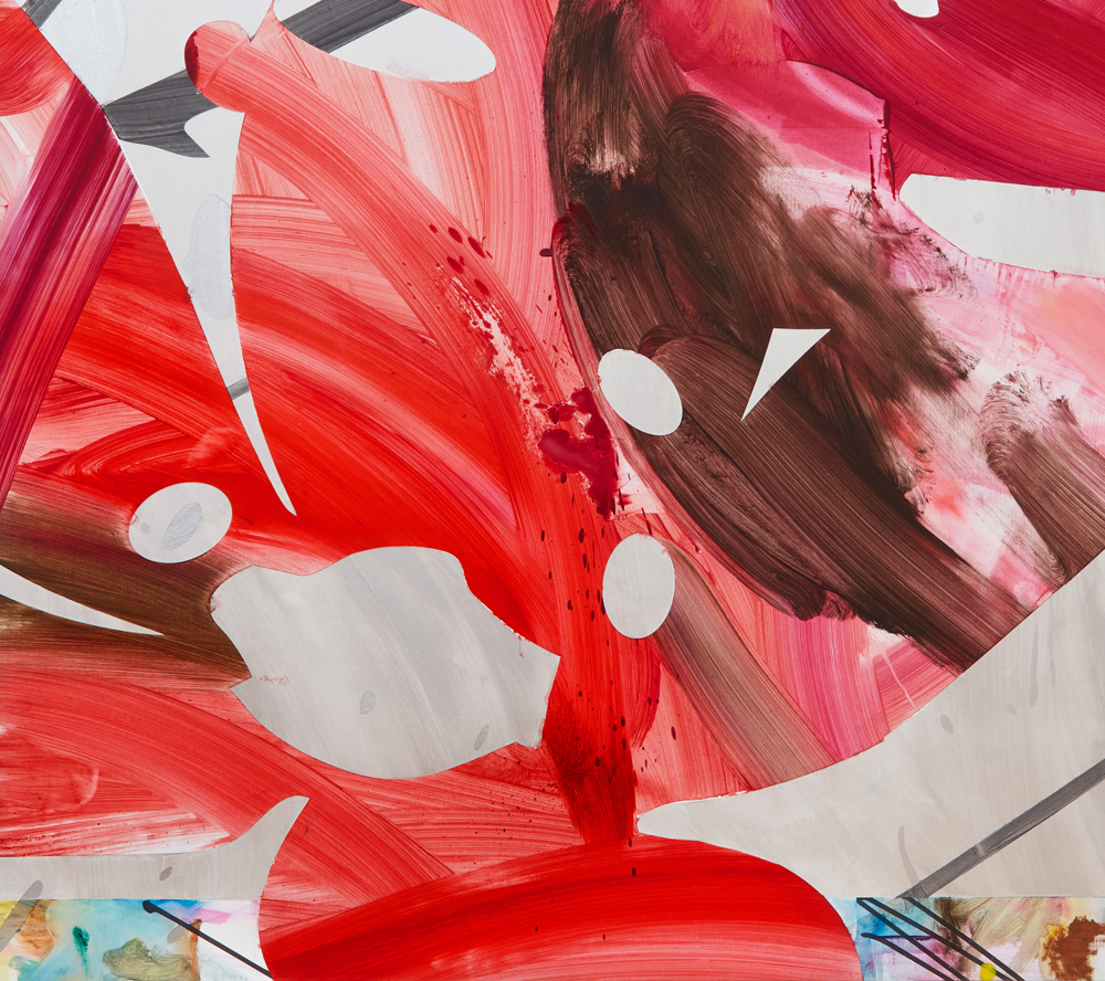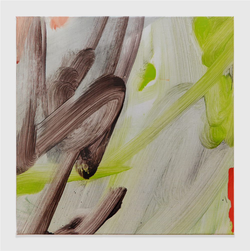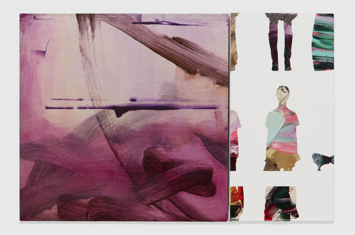 Albeit more muted in palette, Tilted Painting, and the abstraction, No one understands me and no one understand my art, further invoke the “fast image” as one equally related to the rate of its production, as well as how quickly it can be consumed by the eye. Also relevant is the speed at which said eye can (fail to) recognize the patterns, quotations, and excerpts alluded to in these works, putting forward the notion of painterly gestures as potential readymades.